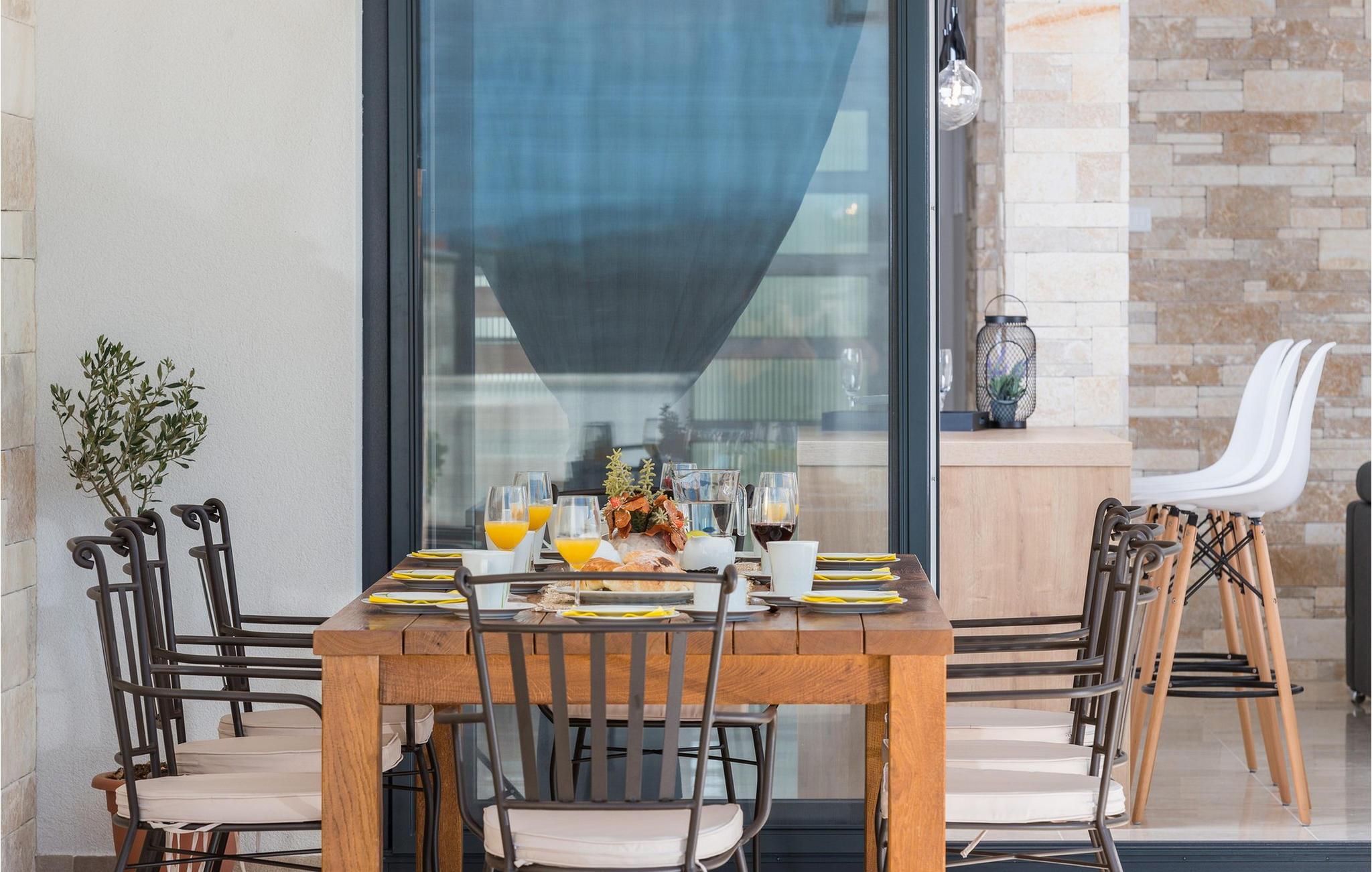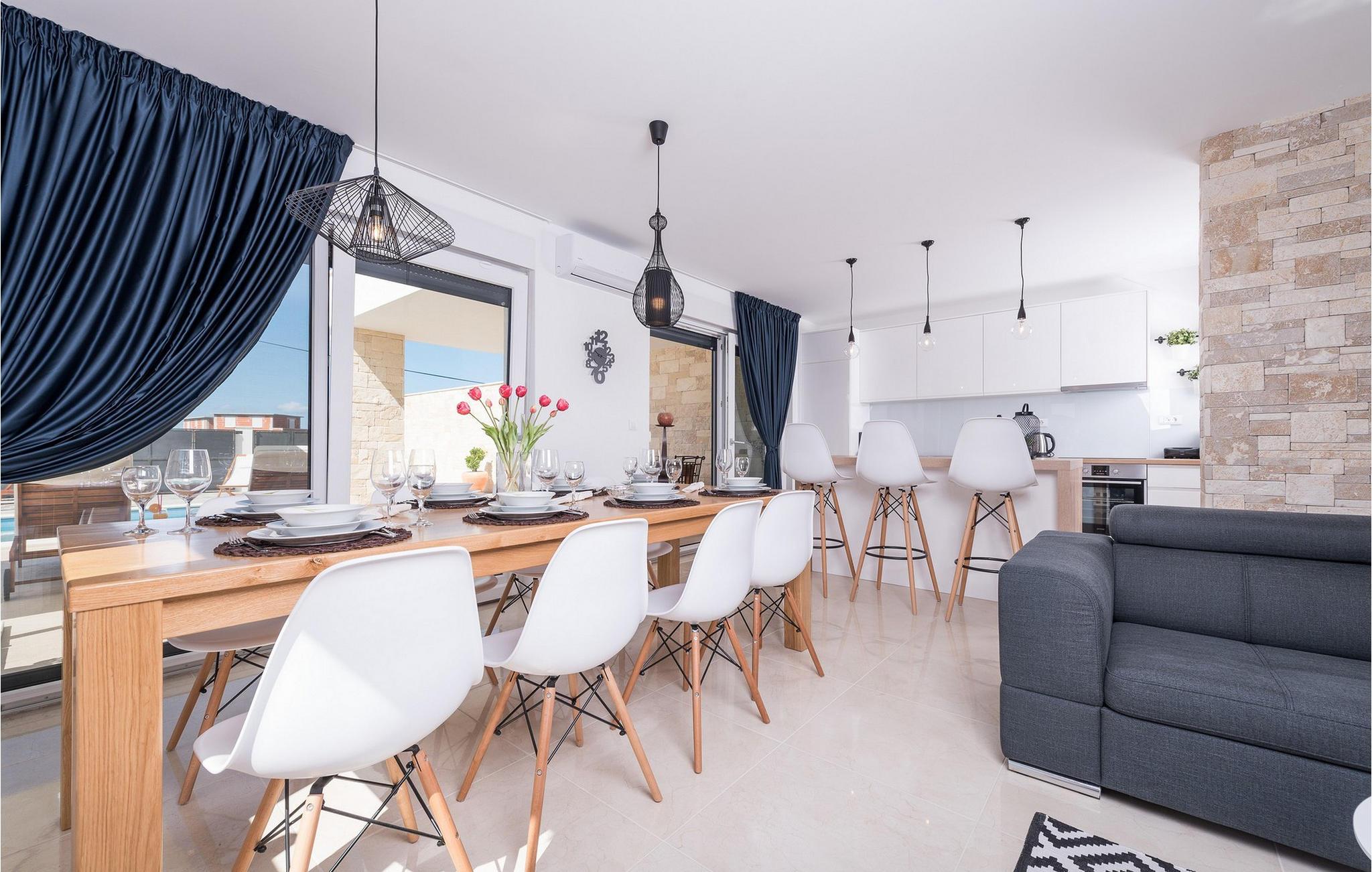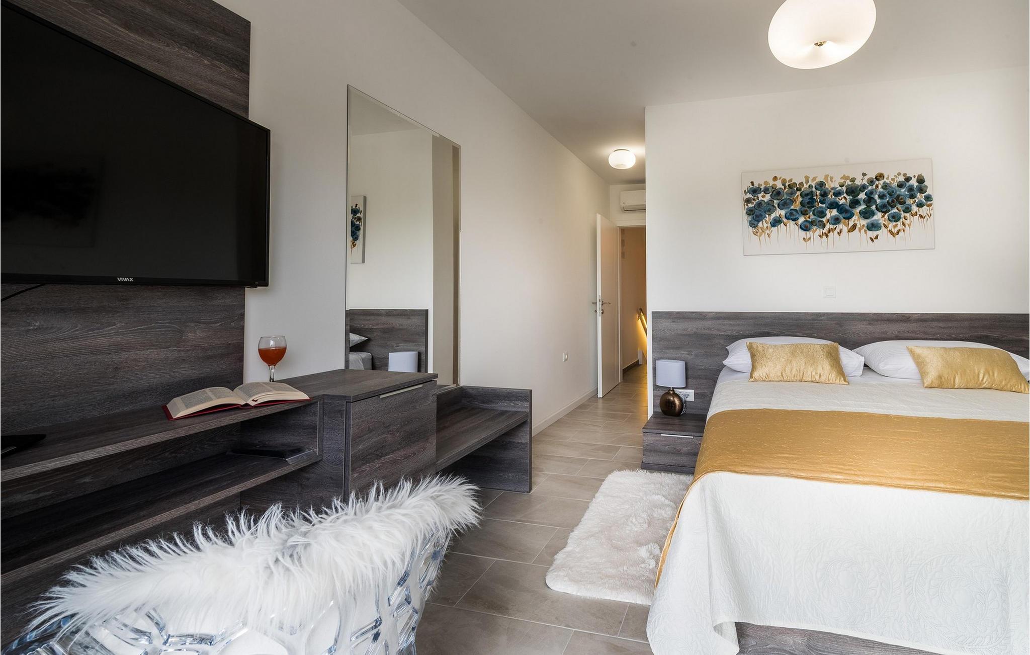 Diese exklusive Villa Oasis bietet Ihnen mit ihrer modernen Architektur und stilvollen Einrichtung den perfekten Rückzugsort für einen entspannten Urlaub. Die großzügigen Schlafzimmer sind auf ultimativen Komfort ausgelegt, während das helle Wohnzimmer und die voll ausgestattete Küche mit Panoramafenstern den Blick auf die Adria freigeben. Der Fitnessraum mit Billard und Tischtennis sorgt für Abwechslung, und auf der Dachterrasse können Sie die Sonne genießen oder den Tag mit einem Glas Wein ausklingen lassen. Der beheizte Pool und der liebevoll gestaltete Garten runden das luxuriöse Ambiente für Sie ab.