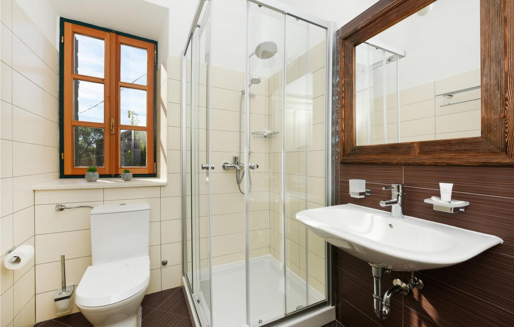 - WC mit warmem und kaltem Wasser, Dusche