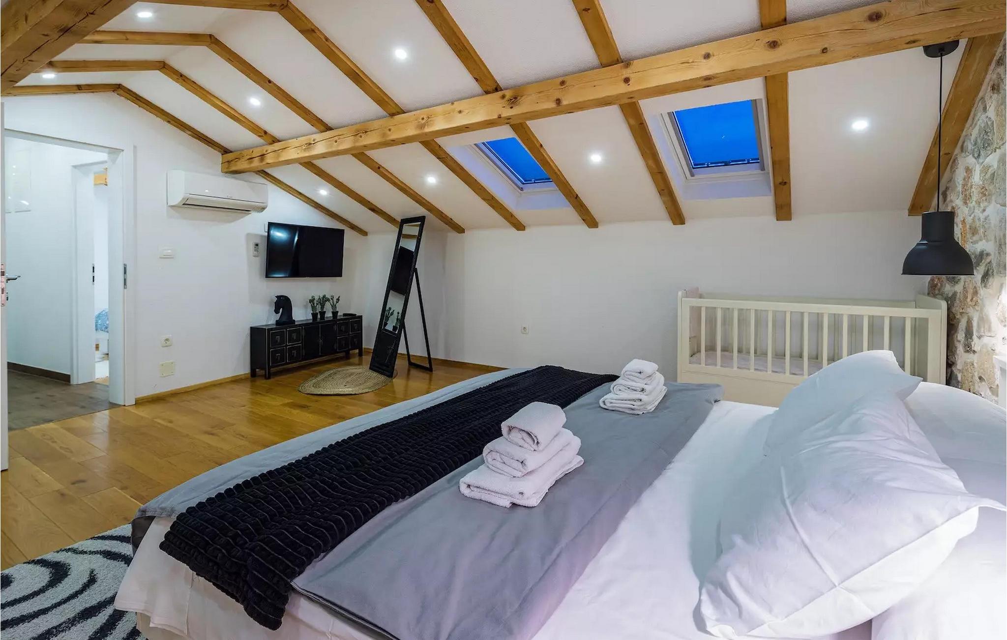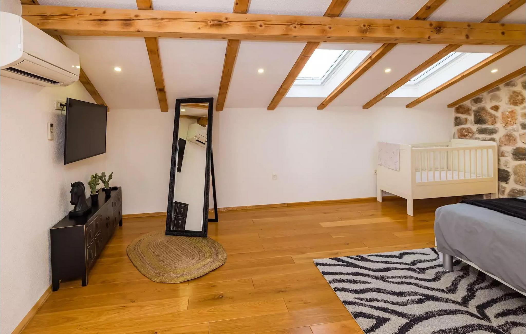 Im ersten Stock befinden sich 4 schöne und geräumige Schlafzimmer. Alle Schlafzimmer sind klimatisiert und verfügen über Doppelbetten und einen Fernseher für absoluten Komfort. Im ersten Stock gibt es auch 2 separate Badezimmer.