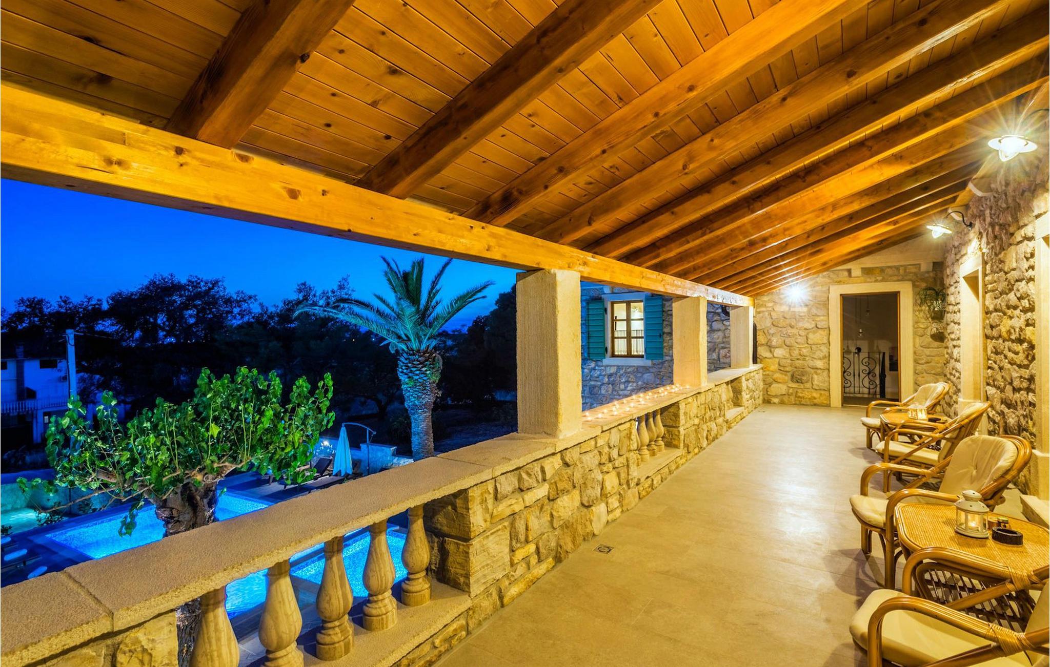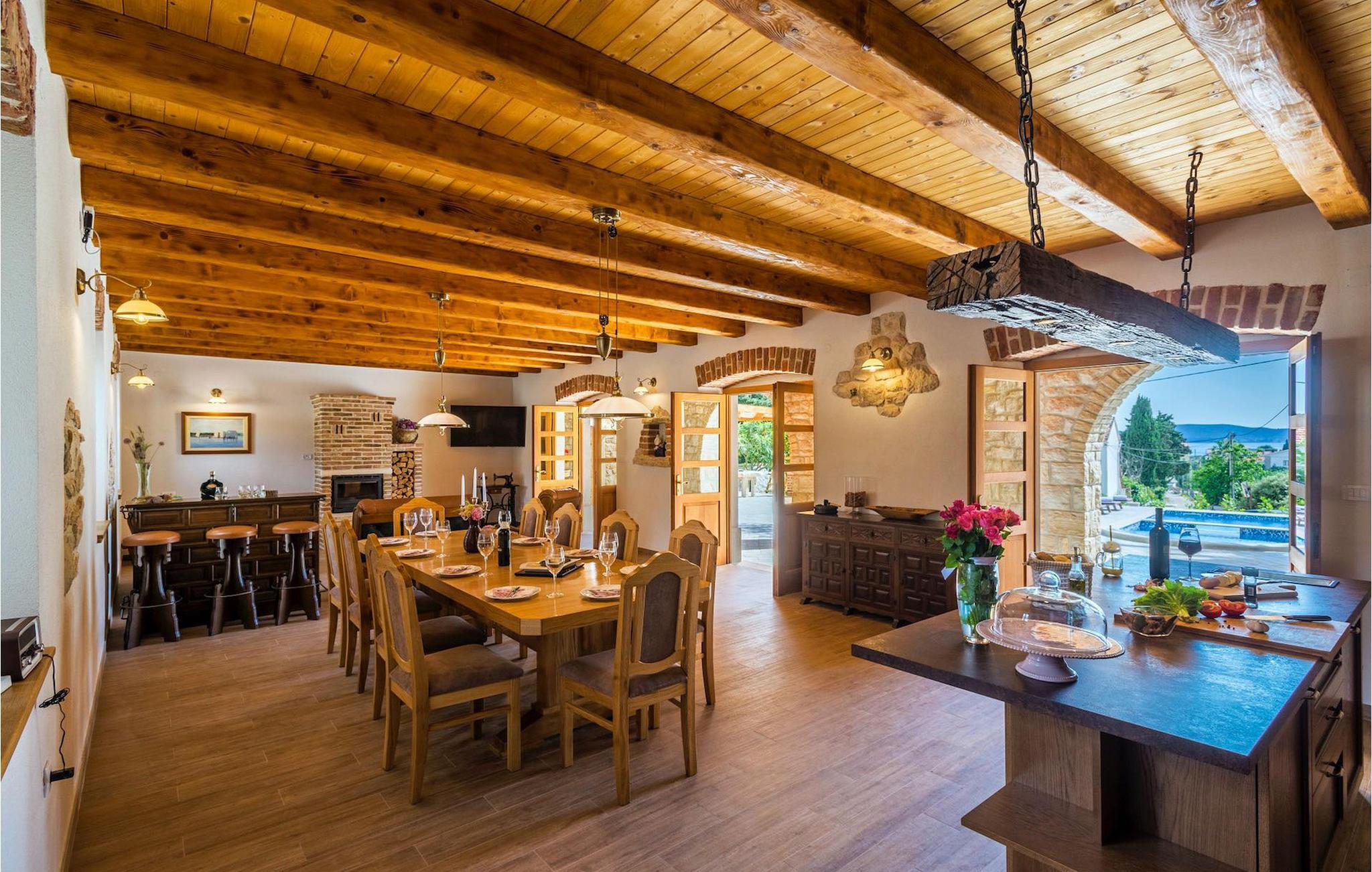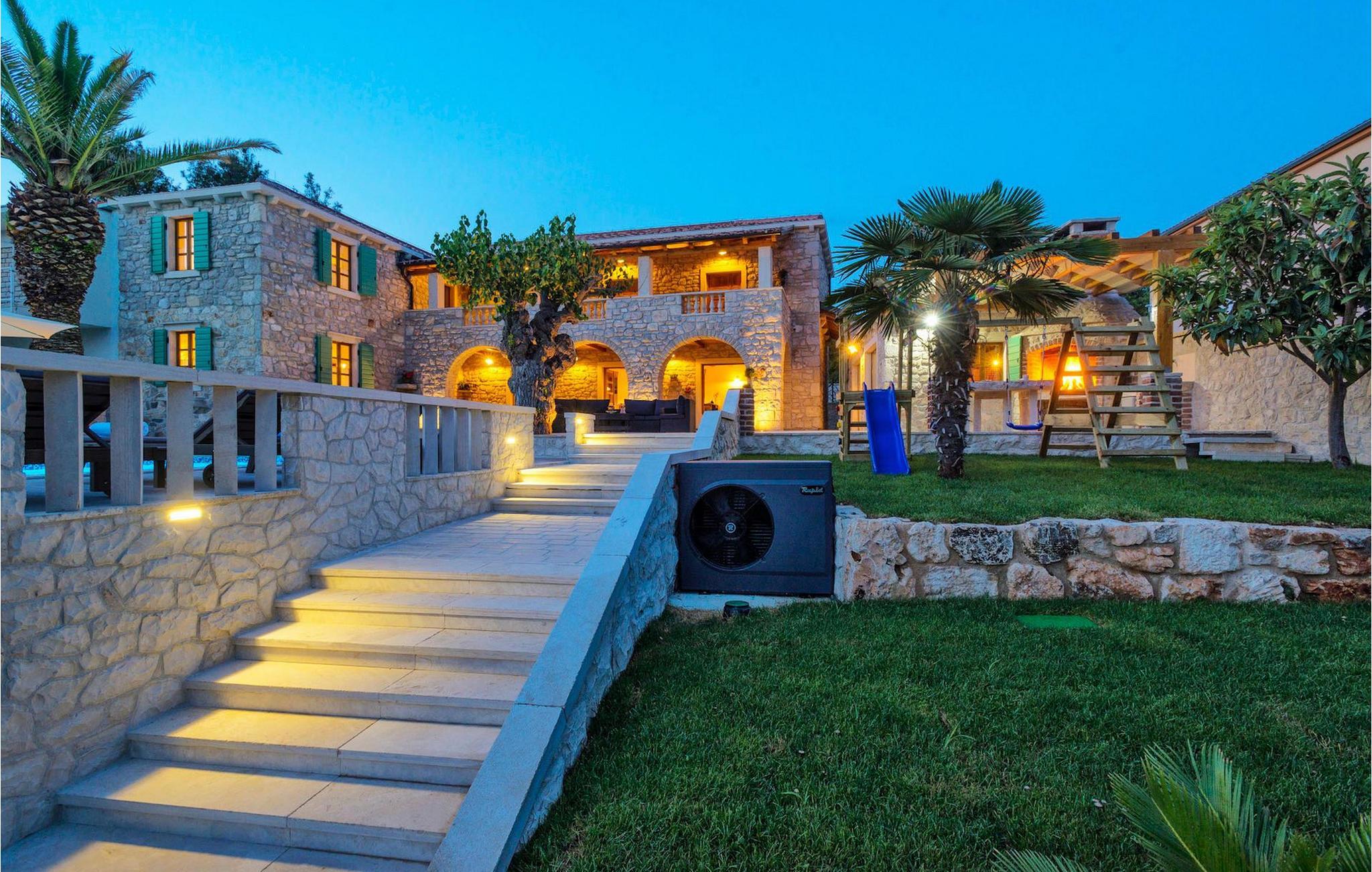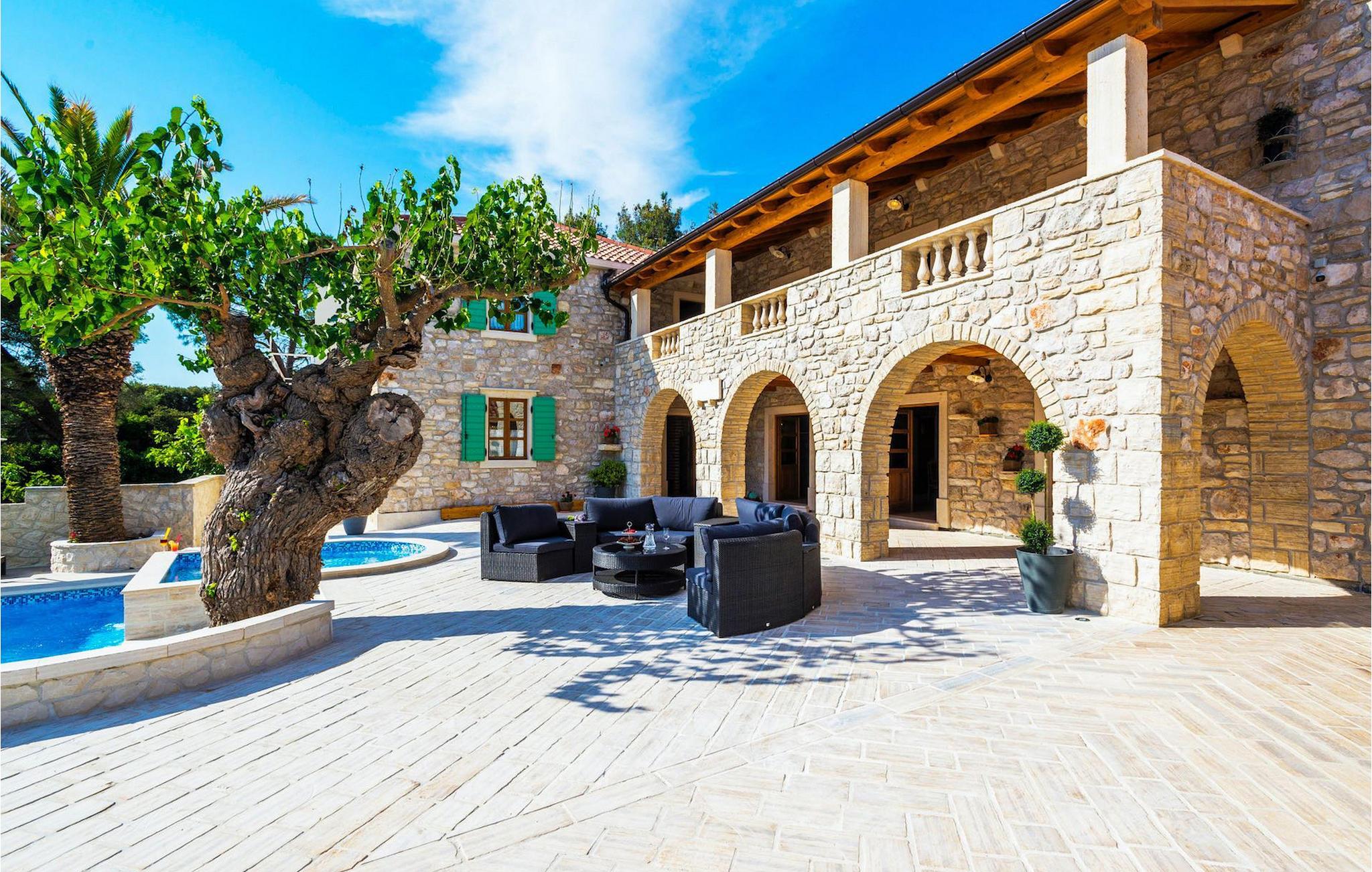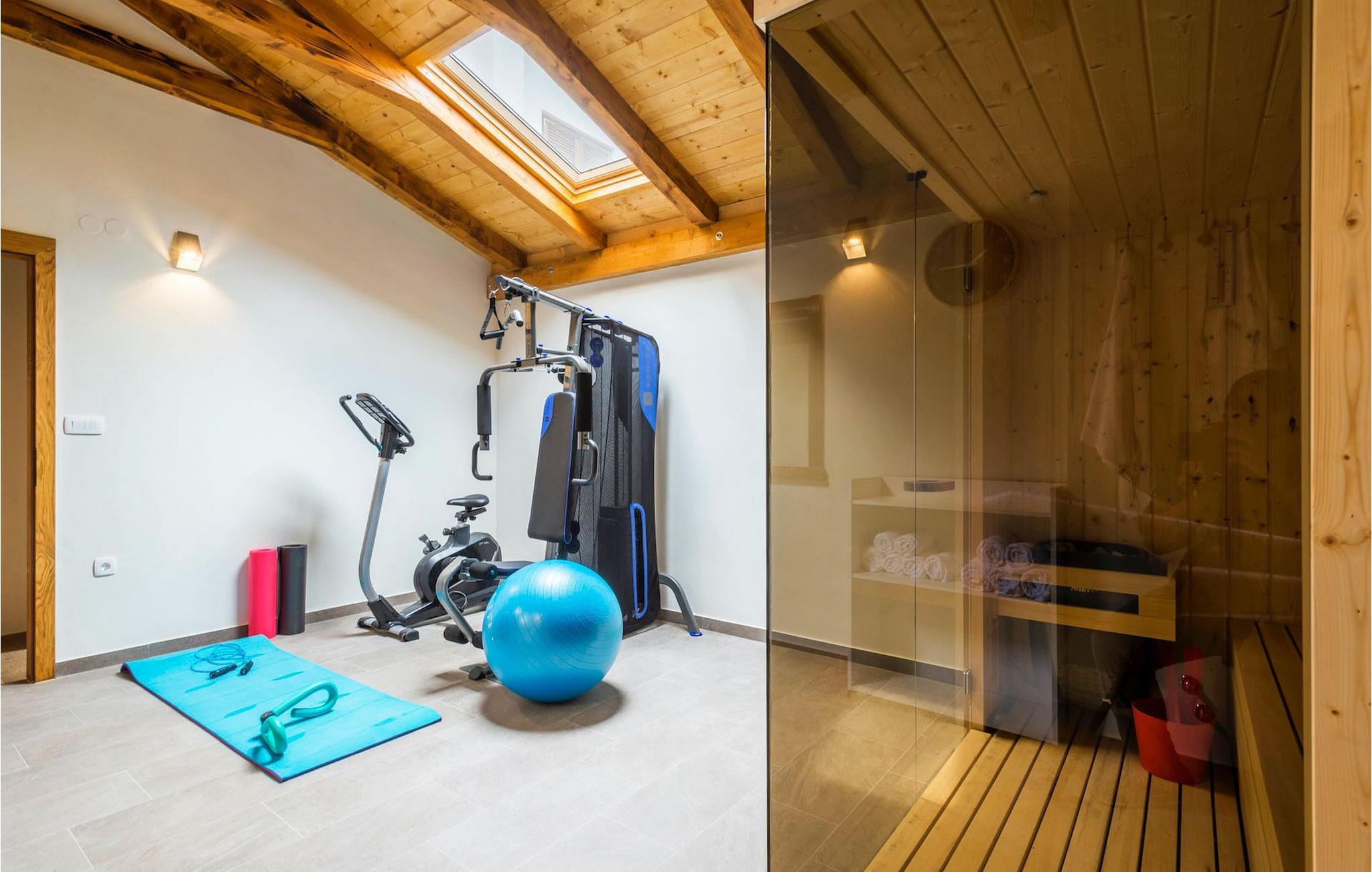 Das Erdgeschoss verfügt über eine schöne offene Lounge, Ess-und Küchenbereich, mit Holzbalken, rustikalen Möbeln und Kamin, der für eine warme, einladende Atmosphäre sorgt. Große Türen öffnen direkt auf die Außenterrassen und den Poolbereich und schaffen ein nahtloses Outdoor-Erlebnis. Im Erdgeschoss befindet sich auch ein großes Doppelzimmer mit en-suite Badezimmer, aber auch ein privater Fitnessraum mit moderner Sauna und separater Dusche und WC. Es gibt vier Doppelzimmer mit eigenem Bad im Obergeschoss, mit eigenem Zugang zu einer sehr romantischen Panoramaterrasse mit Blick auf die Inseln und die kristallklare Adria.Villa Dumina liegt in der kleinen Ortschaft Sukosan, nur eine kurze Autofahrt von Zadar entfernt. Zadar ist eine alte sehenswerte Stadt reich an Kulturerbe und historischen Attraktionen. Der berühmte Alfred Hitchcock sagte, in Zadar sei der schönste Sonnenuntergang - verpassen Sie ihn nicht!