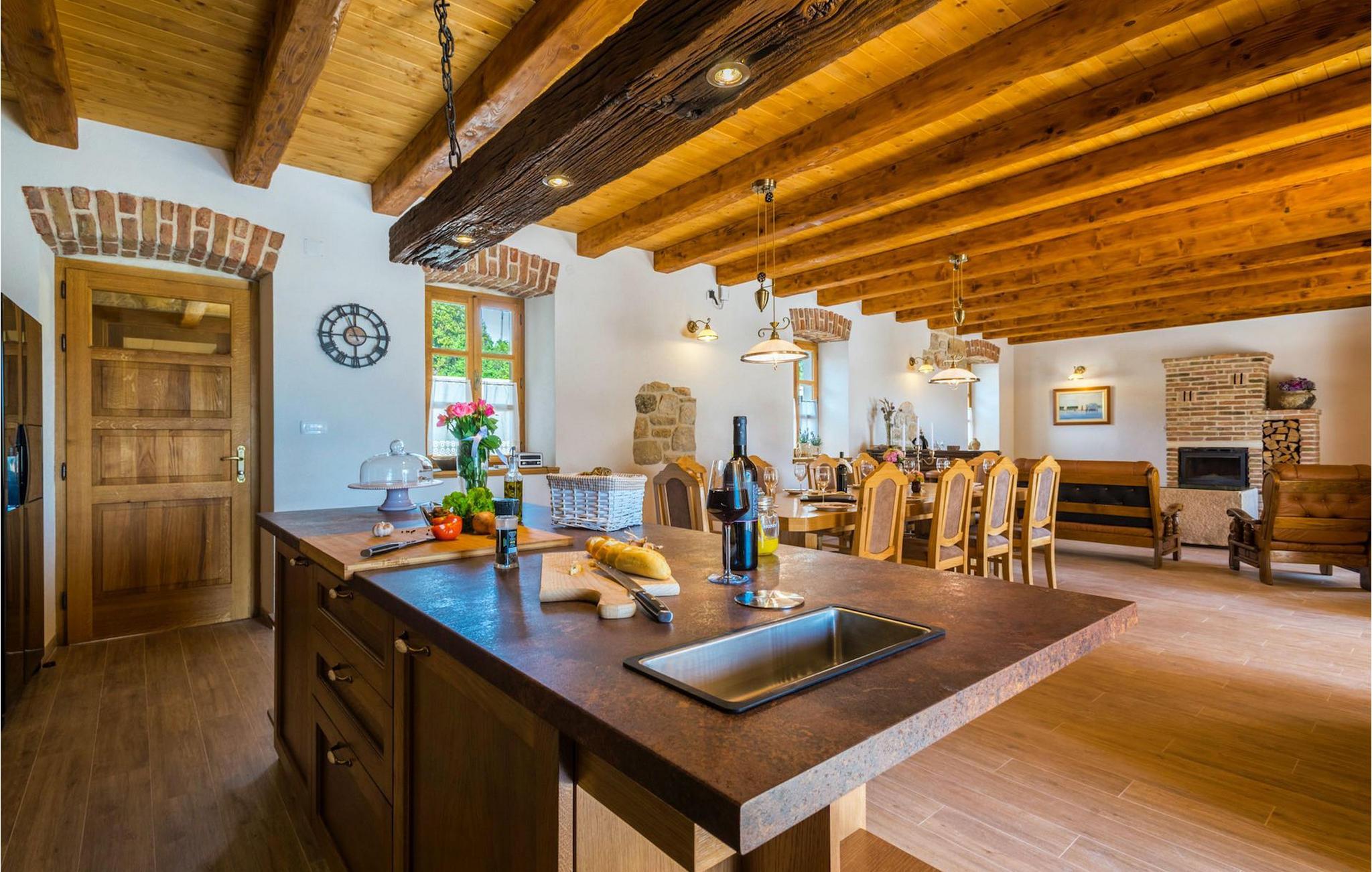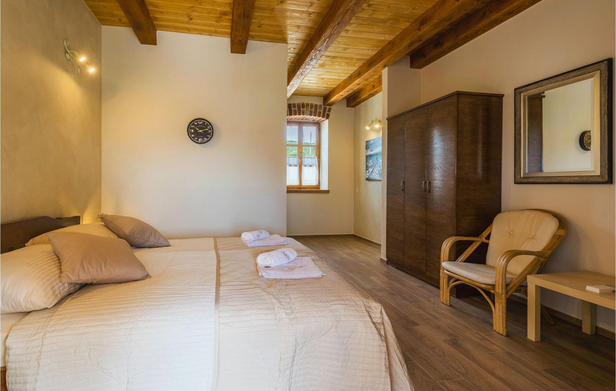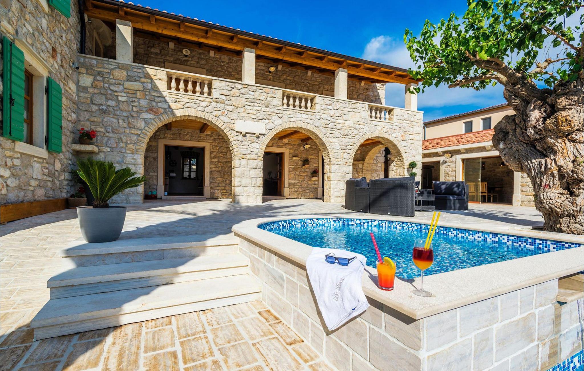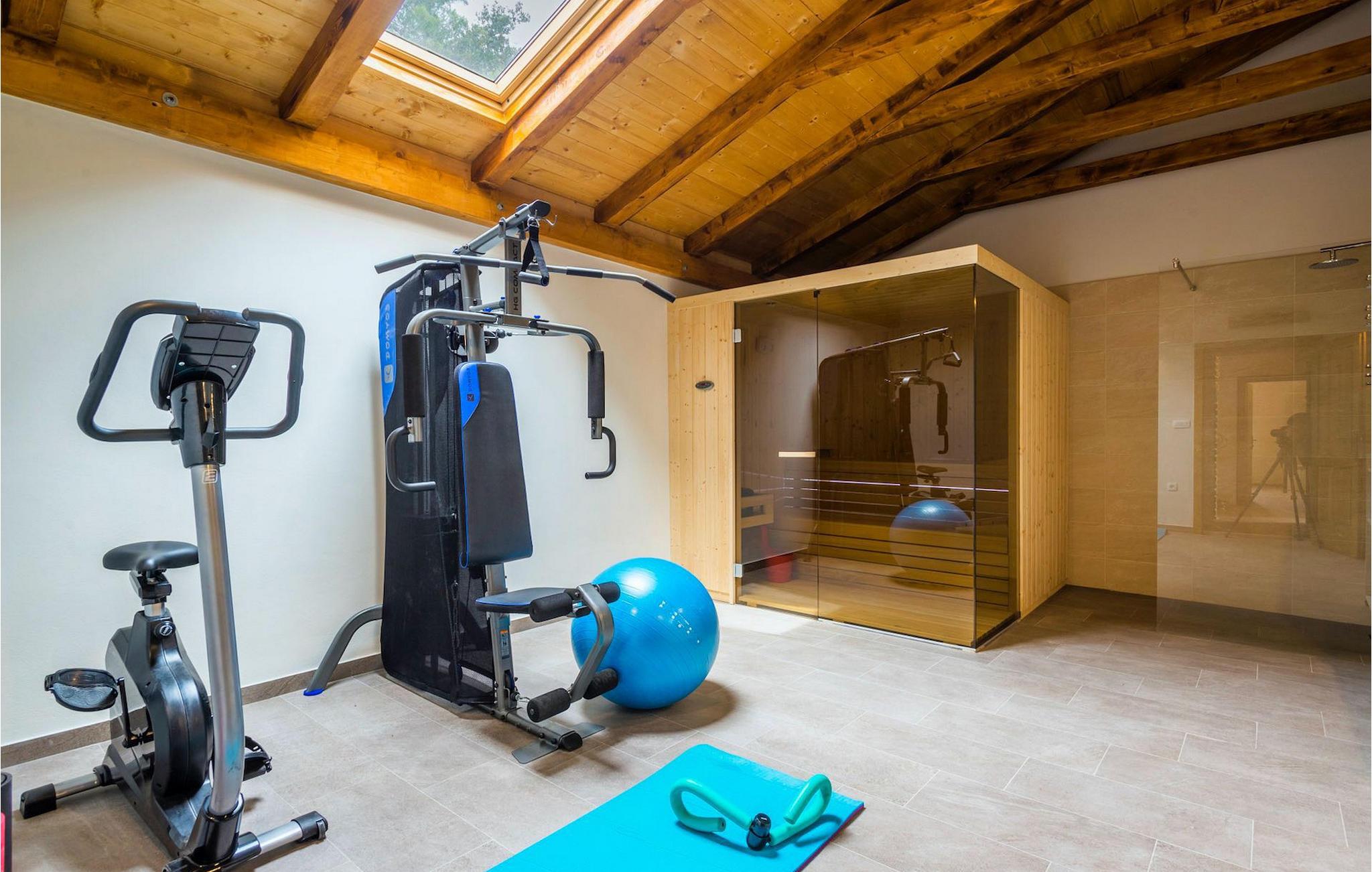 Das Erdgeschoss verfügt über eine schöne offene Lounge, Ess-und Küchenbereich, mit Holzbalken, rustikalen Möbeln und Kamin, der für eine warme, einladende Atmosphäre sorgt. Große Türen öffnen direkt auf die Außenterrassen und den Poolbereich und schaffen ein nahtloses Outdoor-Erlebnis. Im Erdgeschoss befindet sich auch ein großes Doppelzimmer mit en-suite Badezimmer, aber auch ein privater Fitnessraum mit moderner Sauna und separater Dusche und WC. Es gibt vier Doppelzimmer mit eigenem Bad im Obergeschoss, mit eigenem Zugang zu einer sehr romantischen Panoramaterrasse mit Blick auf die Inseln und die kristallklare Adria.Villa Dumina liegt in der kleinen Ortschaft Sukosan, nur eine kurze Autofahrt von Zadar entfernt. Zadar ist eine alte sehenswerte Stadt reich an Kulturerbe und historischen Attraktionen. Der berühmte Alfred Hitchcock sagte, in Zadar sei der schönste Sonnenuntergang - verpassen Sie ihn nicht!