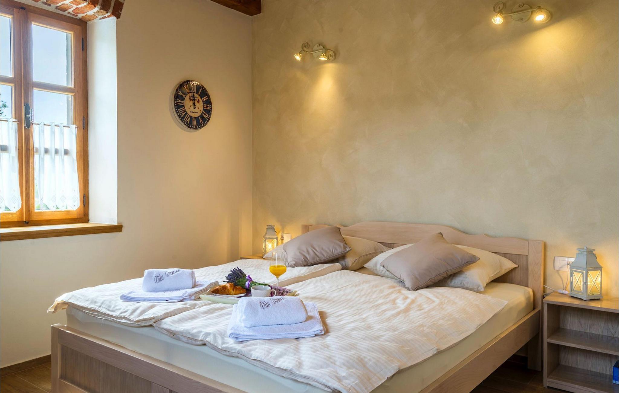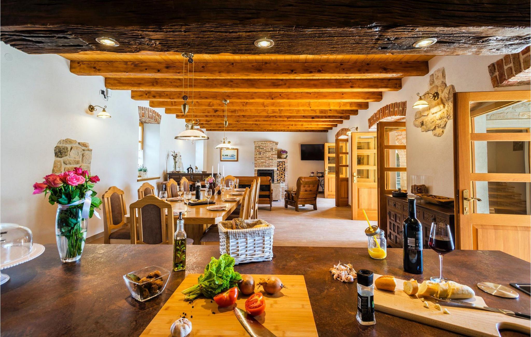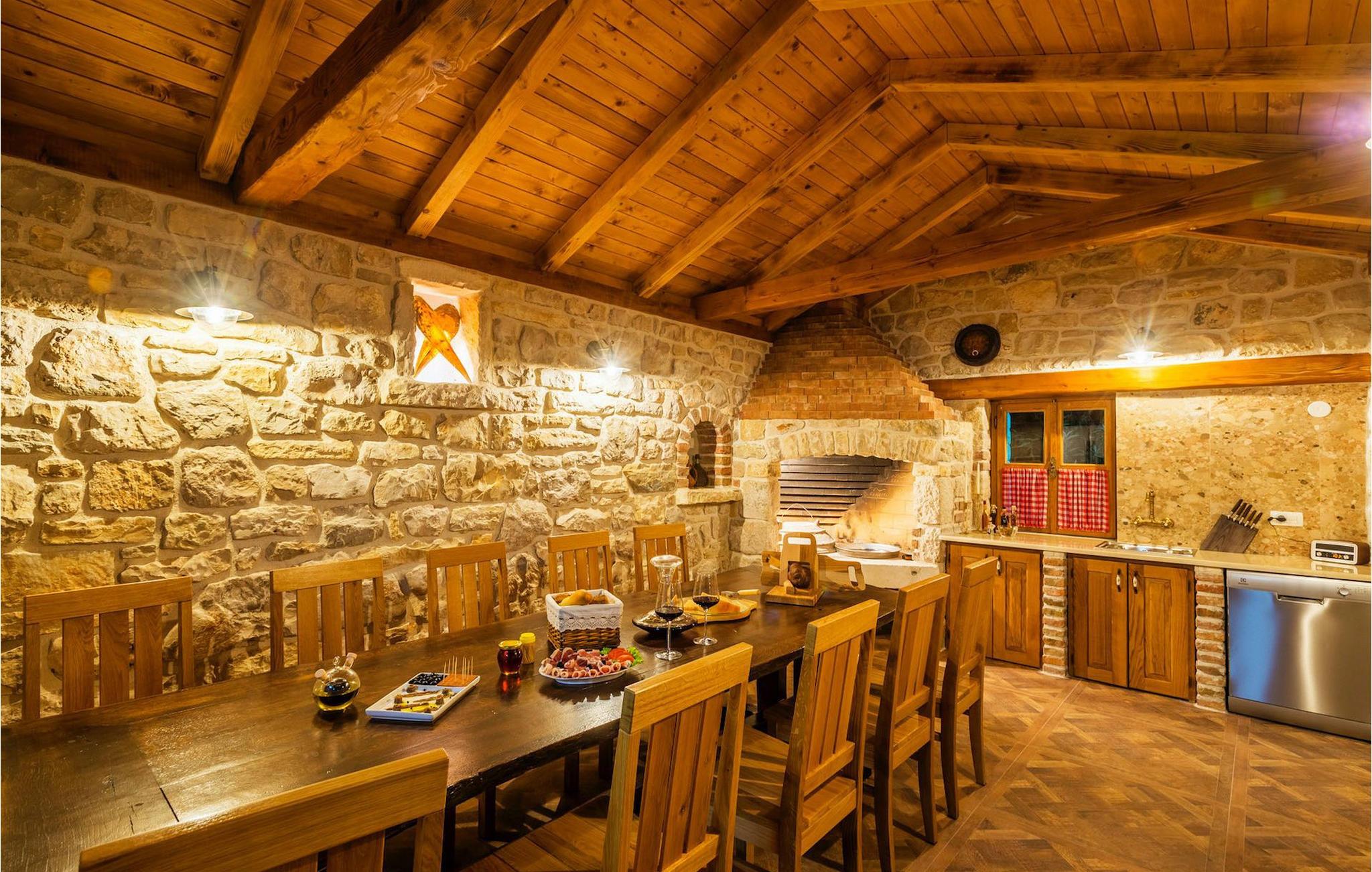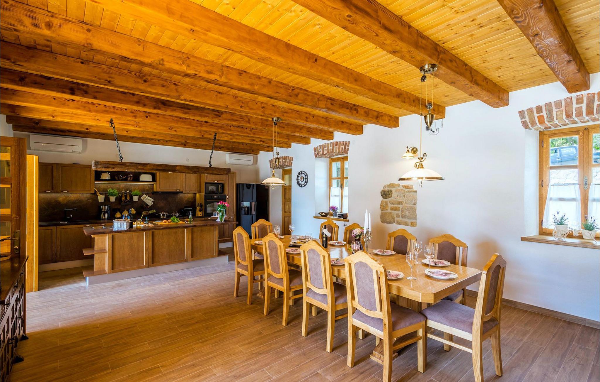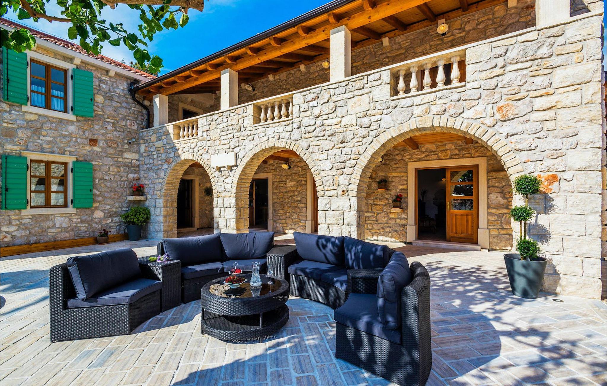 Das Erdgeschoss verfügt über eine schöne offene Lounge, Ess-und Küchenbereich, mit Holzbalken, rustikalen Möbeln und Kamin, der für eine warme, einladende Atmosphäre sorgt. Große Türen öffnen direkt auf die Außenterrassen und den Poolbereich und schaffen ein nahtloses Outdoor-Erlebnis. Im Erdgeschoss befindet sich auch ein großes Doppelzimmer mit en-suite Badezimmer, aber auch ein privater Fitnessraum mit moderner Sauna und separater Dusche und WC. Es gibt vier Doppelzimmer mit eigenem Bad im Obergeschoss, mit eigenem Zugang zu einer sehr romantischen Panoramaterrasse mit Blick auf die Inseln und die kristallklare Adria.Villa Dumina liegt in der kleinen Ortschaft Sukosan, nur eine kurze Autofahrt von Zadar entfernt. Zadar ist eine alte sehenswerte Stadt reich an Kulturerbe und historischen Attraktionen. Der berühmte Alfred Hitchcock sagte, in Zadar sei der schönste Sonnenuntergang - verpassen Sie ihn nicht!