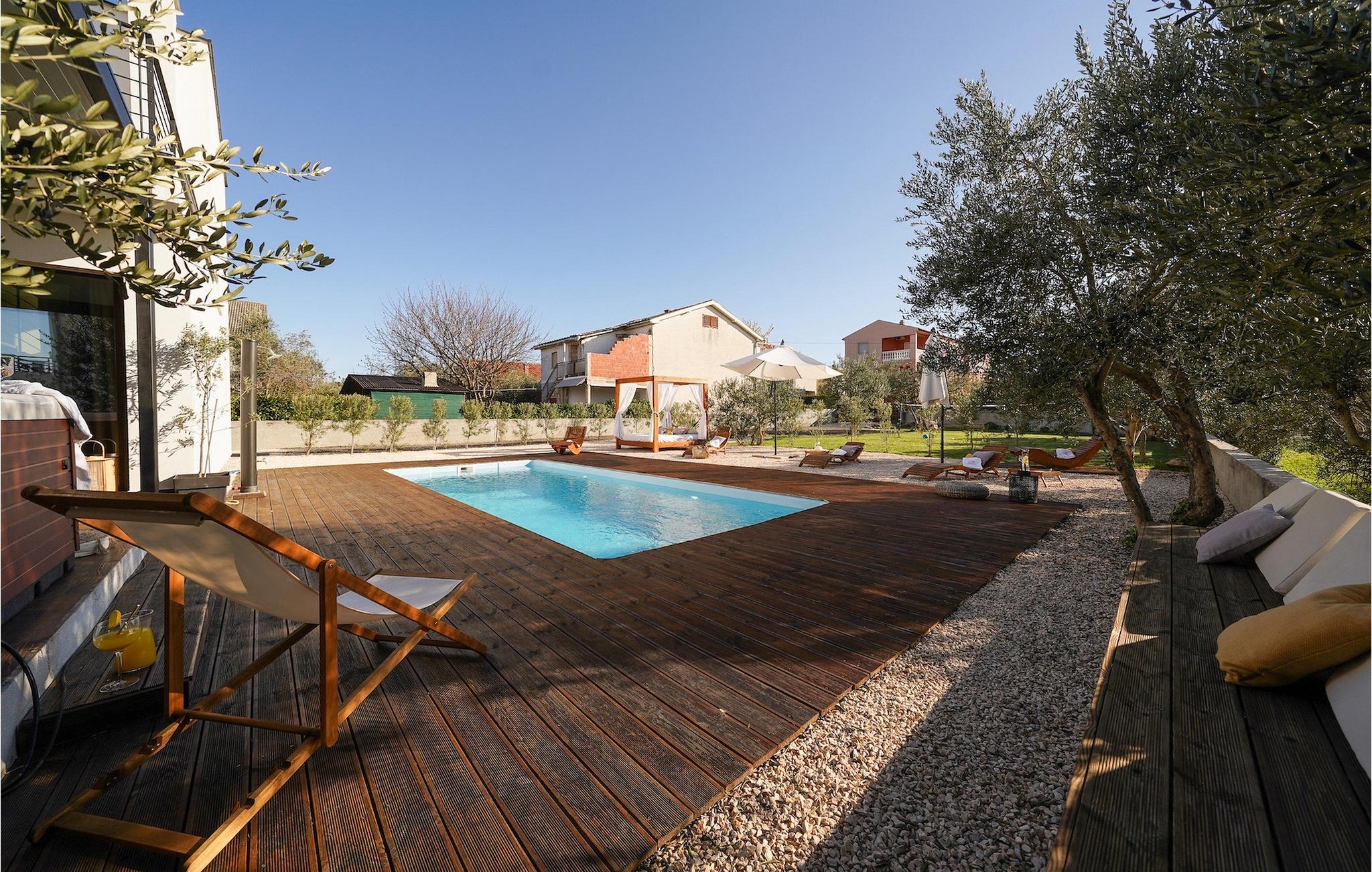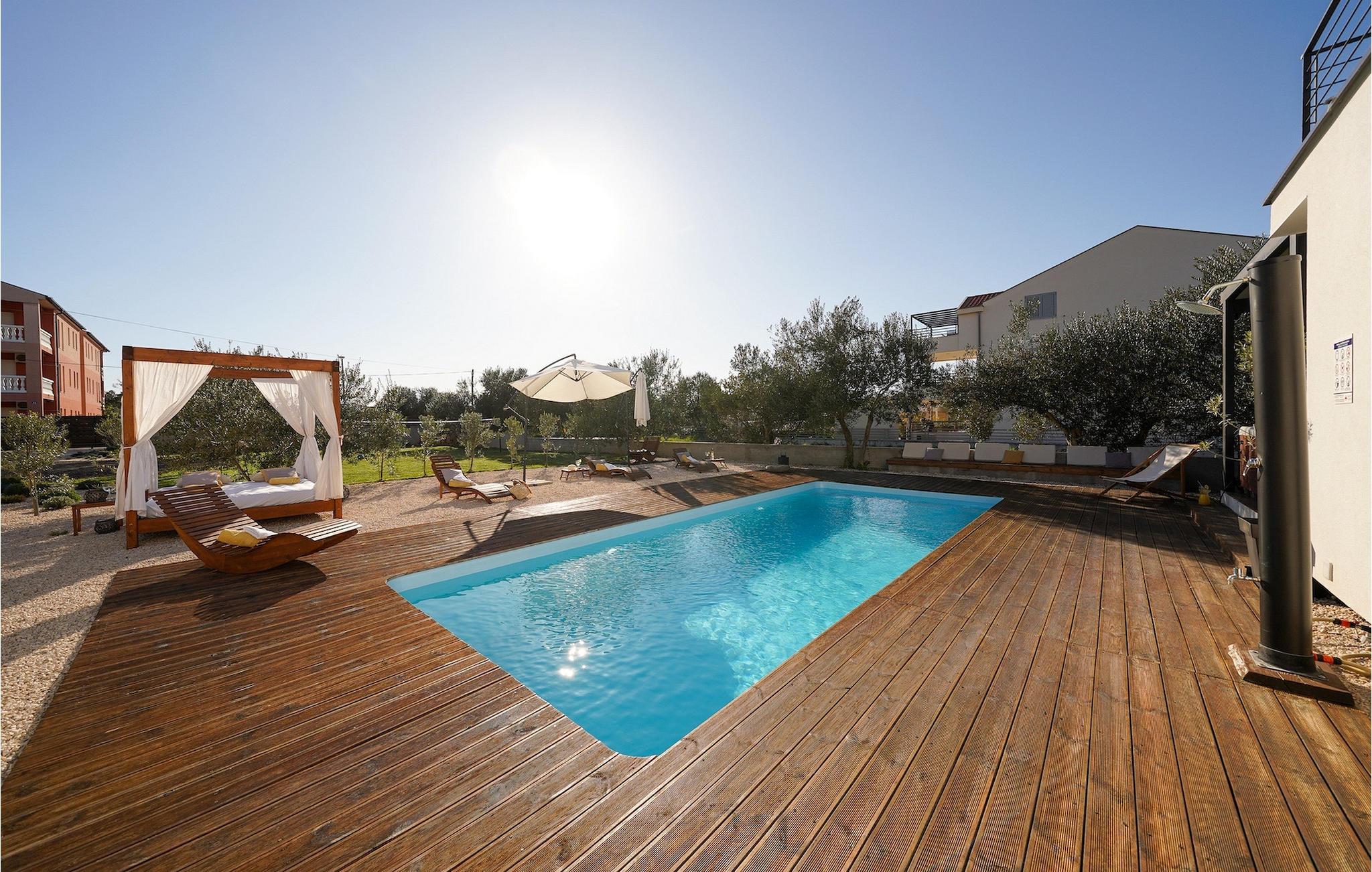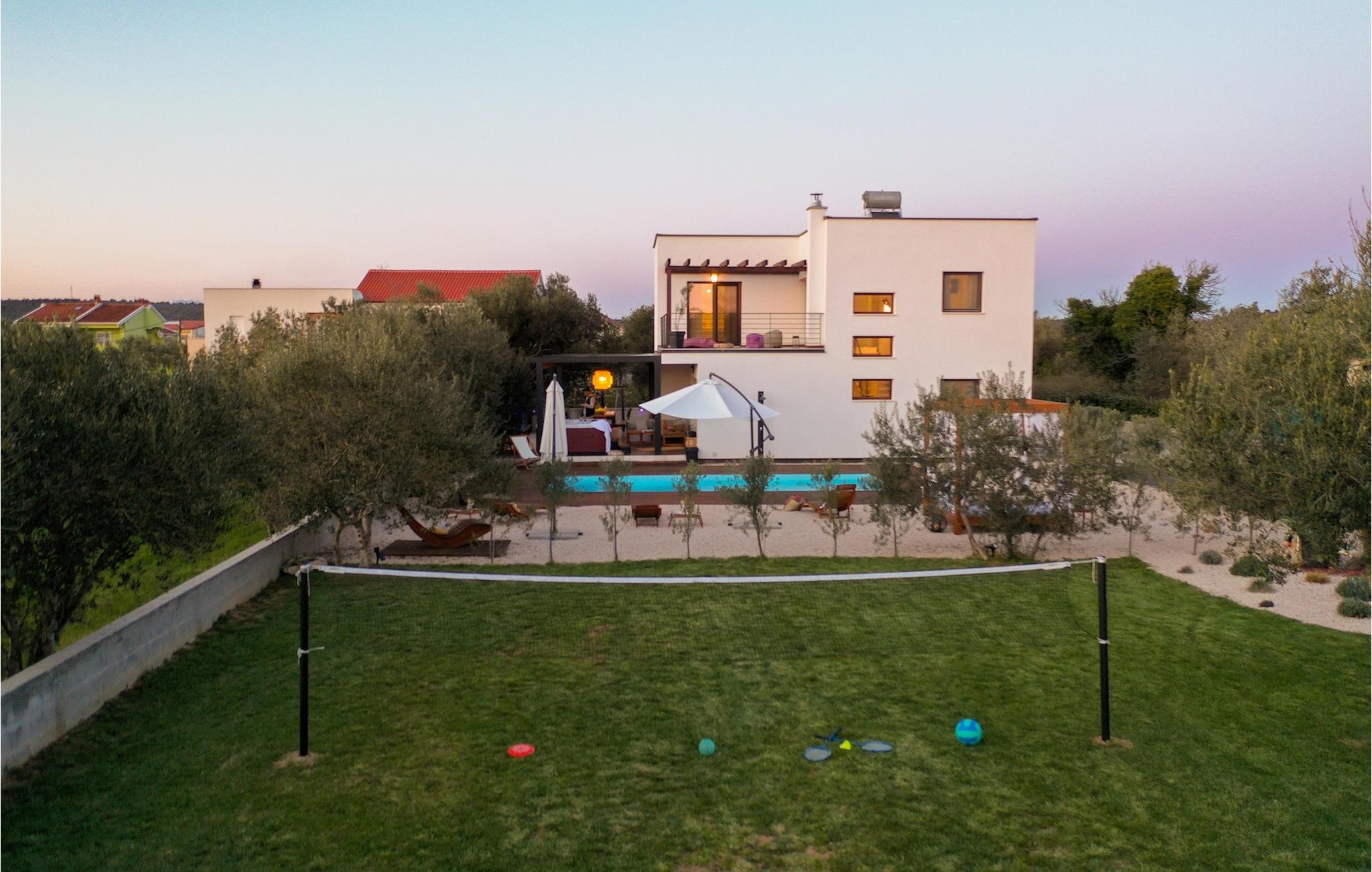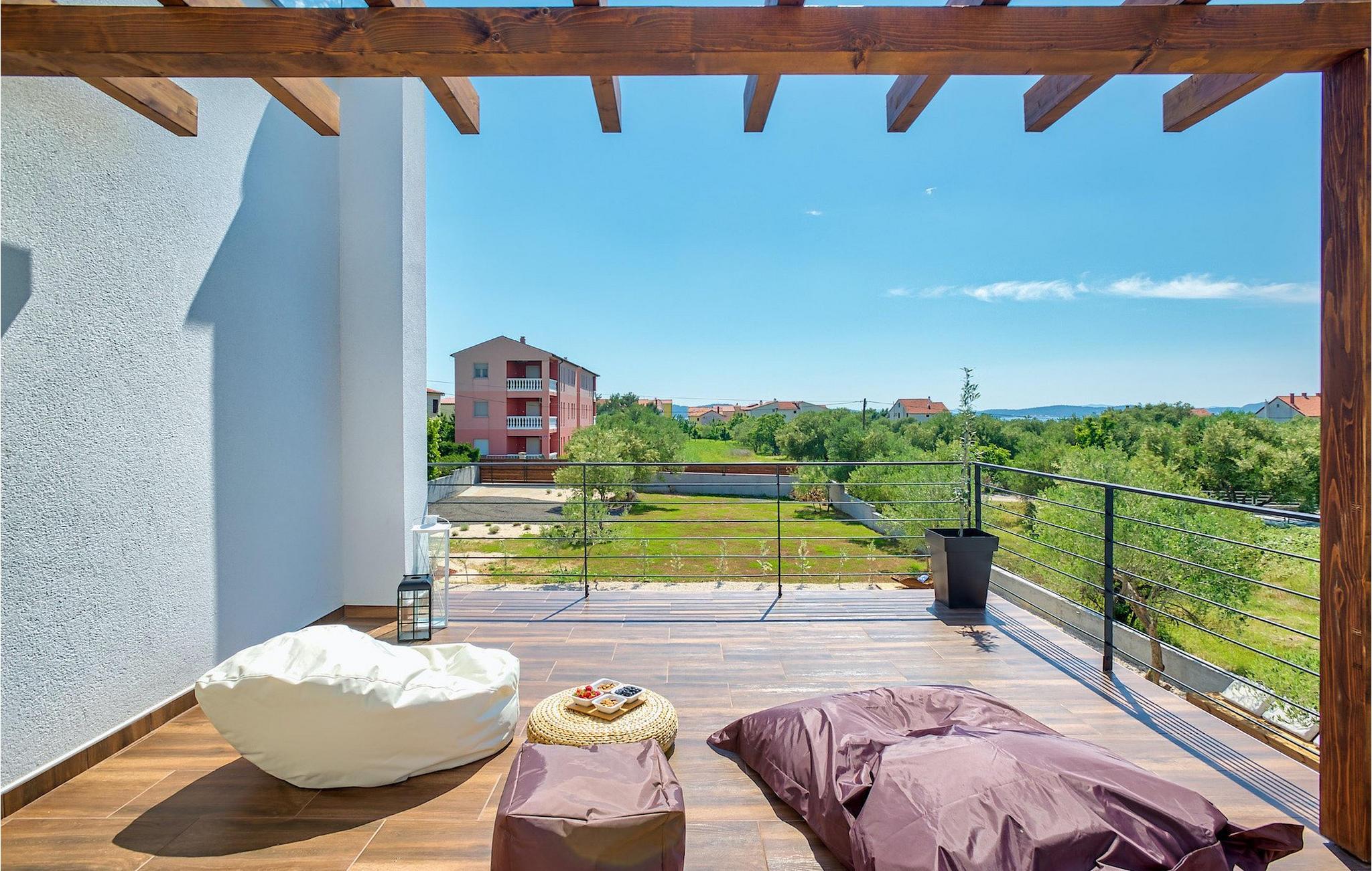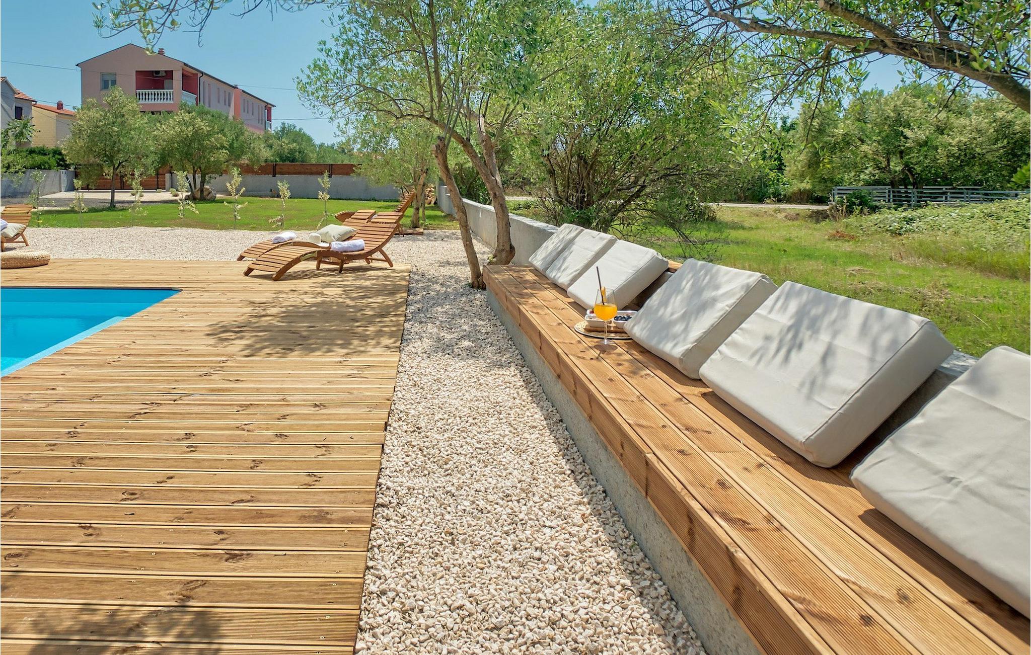 Diese Villa befindet sich auf einem mehr als 900 m2 großen Grundstück in Sukosan, einem malerischen kleinen Küstenort in der Nähe von Zadar. Nur ein kurzer Spaziergang von dieser schönen Villa trennt Sie vom nächsten Strand. Ein schöner privater Pool steht zu Ihrer Verfügung. Der Poolbereich ist mit Sicherheit der Ort, an dem Sie die meiste Zeit verbringen werden, da es gemütliche Liegestühle zum Entspannen am Pool und einen Essbereich im Freien mit einem Holzkohlegrill gibt, der sich ideal zum Zubereiten und Genießen von Mahlzeiten im Freien eignet. Die Villa verfügt über 4 Schlafzimmer und 3 Badezimmer und ist liebevoll eingerichtet, in einem einfachen Stil, aber mit viel Liebe zum Detail. Das Erdgeschoss besteht aus einem geräumigen Wohn- und Essbereich mit einer völlig ausgestatteten Küche. Das farbenfrohe Kinderzimmer mit zwei getrennten Einzelbetten befindet sich ebenfalls im Erdgeschoss, zusammen mit einem Badezimmer und einer separaten Toilette. Die restlichen 2 Badezimmer und 3 Schlafzimmer, jeweils mit Doppelbett, TV und Klimaanlage, befinden sich im Obergeschoss. Auf dem großen Balkon mit Meerblick können Sie Sonnenuntergänge genießen. Die Villa ist komplett eingezäunt, bietet zwei private Parkplätze und viele Möglichkeiten zum Entspannen und einen unvergesslichen Urlaub in der Nähe von Zadar zu erleben.Diese Villa liegt in der kleinen Ortschaft Sukosan, nur eine kurze Autofahrt von Zadar entfernt. Zadar ist eine alte sehenswerte Stadt reich an Kulturerbe und historischen Attraktionen. Der berühmte Alfred Hitchcock sagte, in Zadar sei der schönste Sonnenuntergang - verpassen Sie ihn nicht! Die Altstadt bietet Denkmäler aus der Antike, dem Mittelalter und der Renaissance: das Römische Forum (1. Jhd.), die Kirche St. Donat (9. Jahrhundert), die Kirche St. Marija (11. Jhd., im 16. Jhd. wieder aufgebaut), die Kathedrale St. Anastasia (12. bis 13. Jhd.), die Teile der Verteidigungsmauern ... Heutzutage ist Zadar für die Meeresorgel und die Lichtinstallation "Pozdrav suncu" (Gruß an die Sonne) bekannt. Die Region bietet herrliche Strände, gute Restaurants mit mediterraner Küche, aber auch atemberaubende National- und Naturparks (Krka Wasserfälle, Kornati, Plitvicer Seen, Telašcica, Paklenica …). Wenn Sie mehr Spaß haben möchten, stehen Ihnen in Zadar vom Sonnenuntergang bis zum -aufgang Strandbars und Cafés, sowie Nachtclubs und Diskos zur Verfügung. Während Ihres Aufenthaltes in Zadar vergessen Sie nicht, den süßen Maraschino Kirschlikör zu kosten!