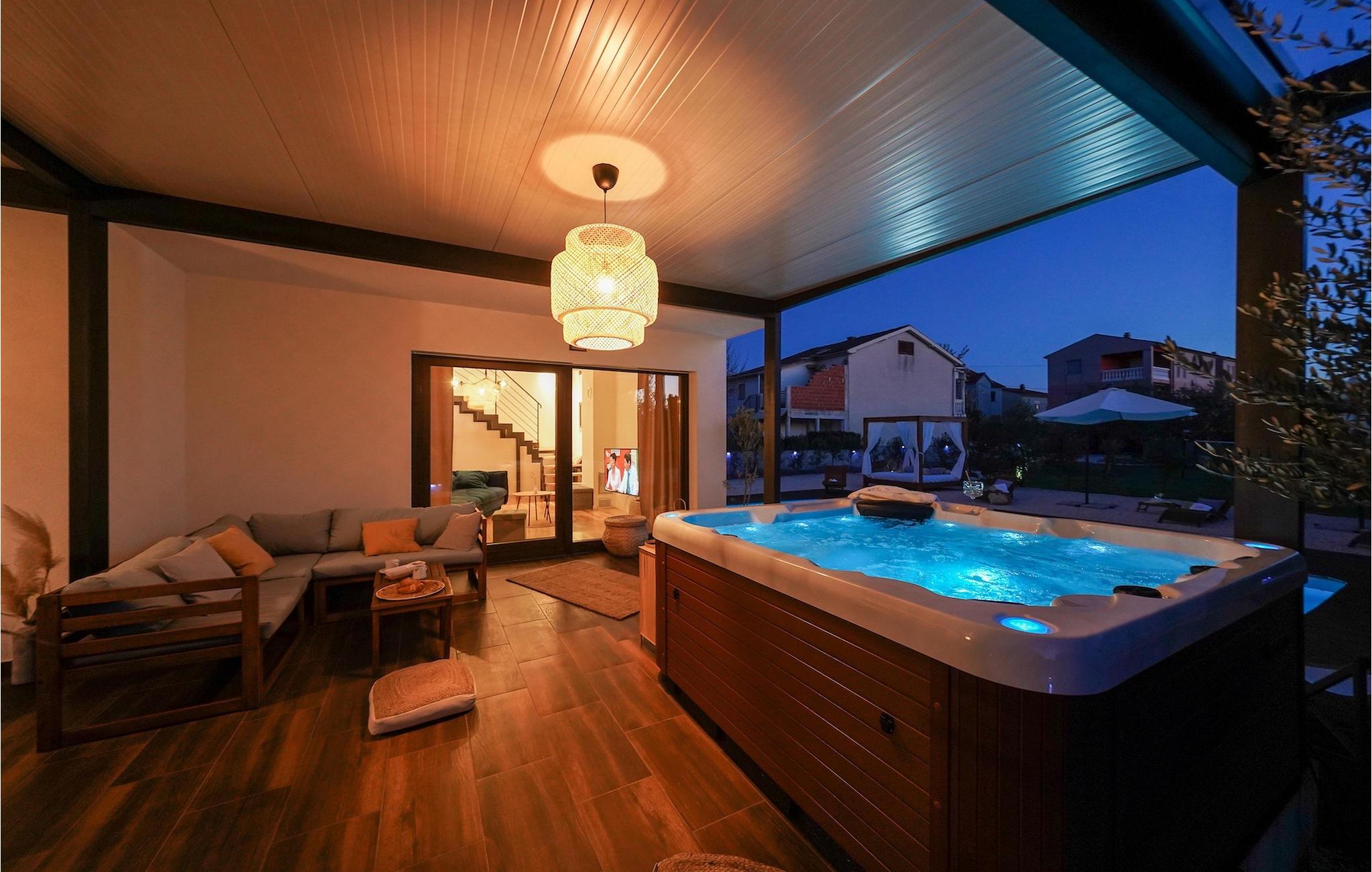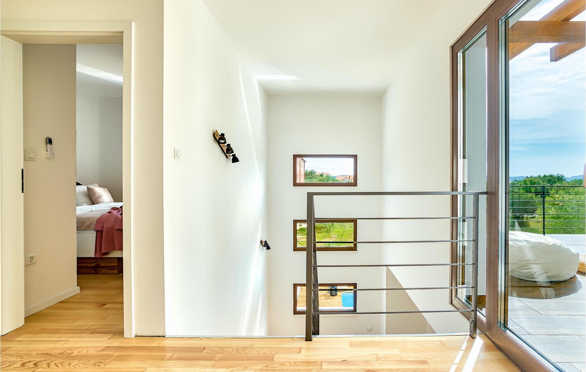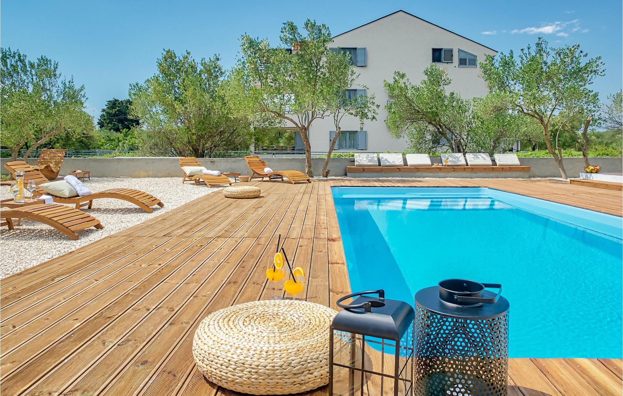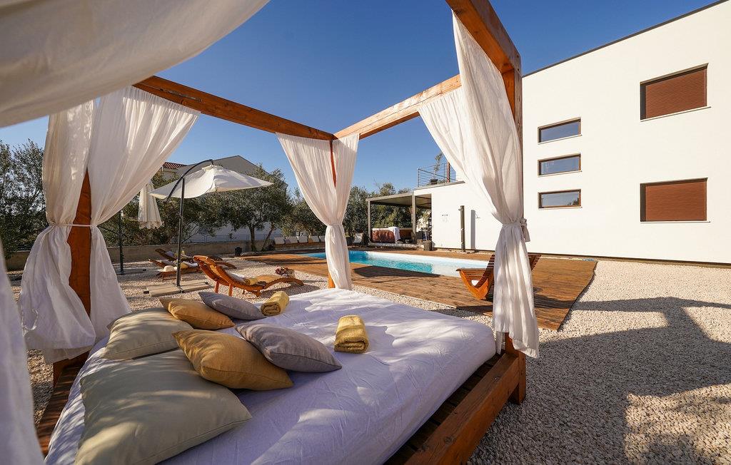 Diese Villa befindet sich auf einem mehr als 900 m2 großen Grundstück in Sukosan, einem malerischen kleinen Küstenort in der Nähe von Zadar. Nur ein kurzer Spaziergang von dieser schönen Villa trennt Sie vom nächsten Strand. Ein schöner privater Pool steht zu Ihrer Verfügung. Der Poolbereich ist mit Sicherheit der Ort, an dem Sie die meiste Zeit verbringen werden, da es gemütliche Liegestühle zum Entspannen am Pool und einen Essbereich im Freien mit einem Holzkohlegrill gibt, der sich ideal zum Zubereiten und Genießen von Mahlzeiten im Freien eignet. Die Villa verfügt über 4 Schlafzimmer und 3 Badezimmer und ist liebevoll eingerichtet, in einem einfachen Stil, aber mit viel Liebe zum Detail. Das Erdgeschoss besteht aus einem geräumigen Wohn- und Essbereich mit einer völlig ausgestatteten Küche. Das farbenfrohe Kinderzimmer mit zwei getrennten Einzelbetten befindet sich ebenfalls im Erdgeschoss, zusammen mit einem Badezimmer und einer separaten Toilette. Die restlichen 2 Badezimmer und 3 Schlafzimmer, jeweils mit Doppelbett, TV und Klimaanlage, befinden sich im Obergeschoss. Auf dem großen Balkon mit Meerblick können Sie Sonnenuntergänge genießen. Die Villa ist komplett eingezäunt, bietet zwei private Parkplätze und viele Möglichkeiten zum Entspannen und einen unvergesslichen Urlaub in der Nähe von Zadar zu erleben.Diese Villa liegt in der kleinen Ortschaft Sukosan, nur eine kurze Autofahrt von Zadar entfernt. Zadar ist eine alte sehenswerte Stadt reich an Kulturerbe und historischen Attraktionen. Der berühmte Alfred Hitchcock sagte, in Zadar sei der schönste Sonnenuntergang - verpassen Sie ihn nicht! Die Altstadt bietet Denkmäler aus der Antike, dem Mittelalter und der Renaissance: das Römische Forum (1. Jhd.), die Kirche St. Donat (9. Jahrhundert), die Kirche St. Marija (11. Jhd., im 16. Jhd. wieder aufgebaut), die Kathedrale St. Anastasia (12. bis 13. Jhd.), die Teile der Verteidigungsmauern ... Heutzutage ist Zadar für die Meeresorgel und die Lichtinstallation "Pozdrav suncu" (Gruß an die Sonne) bekannt. Die Region bietet herrliche Strände, gute Restaurants mit mediterraner Küche, aber auch atemberaubende National- und Naturparks (Krka Wasserfälle, Kornati, Plitvicer Seen, Telašcica, Paklenica …). Wenn Sie mehr Spaß haben möchten, stehen Ihnen in Zadar vom Sonnenuntergang bis zum -aufgang Strandbars und Cafés, sowie Nachtclubs und Diskos zur Verfügung. Während Ihres Aufenthaltes in Zadar vergessen Sie nicht, den süßen Maraschino Kirschlikör zu kosten!