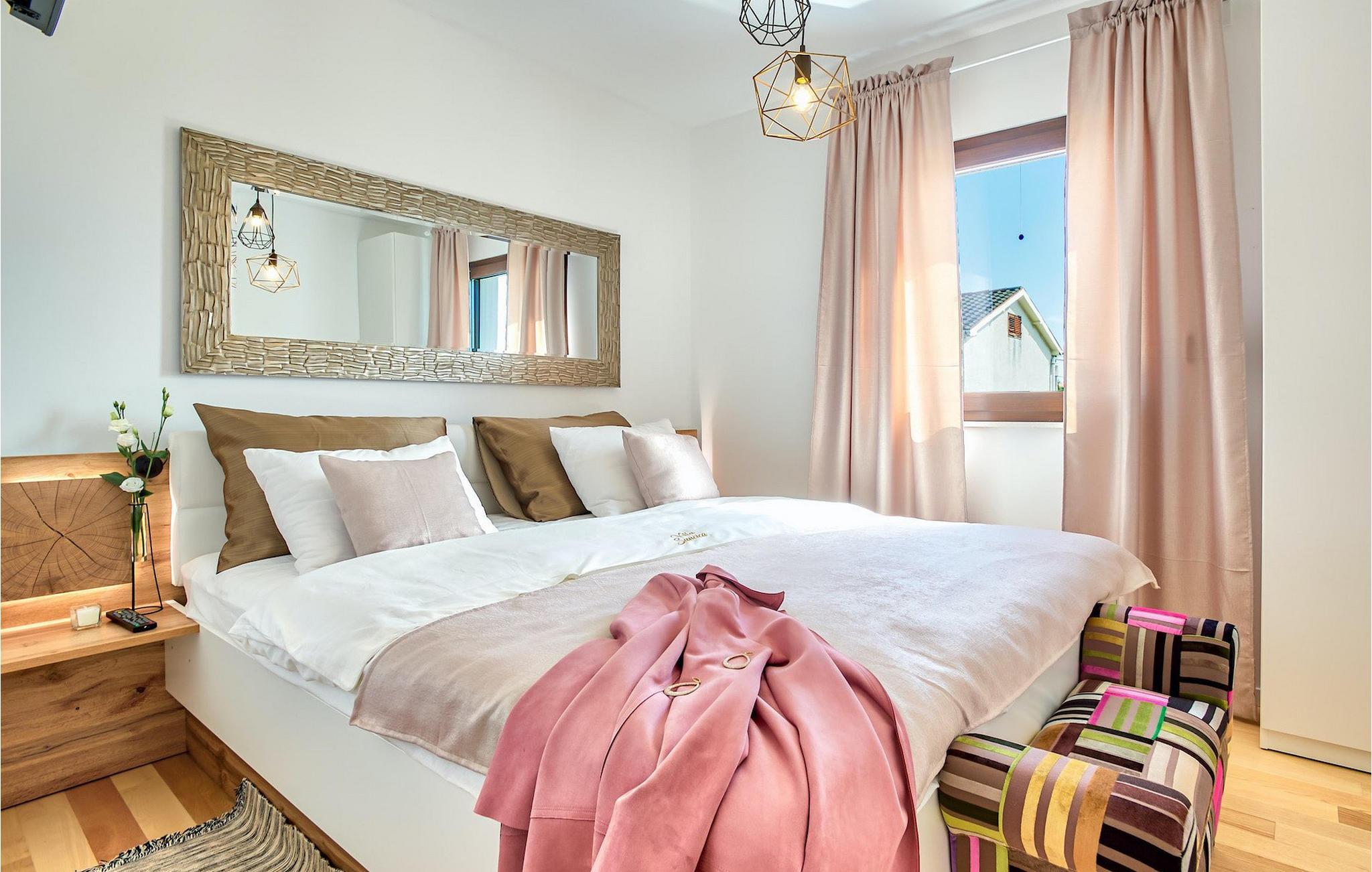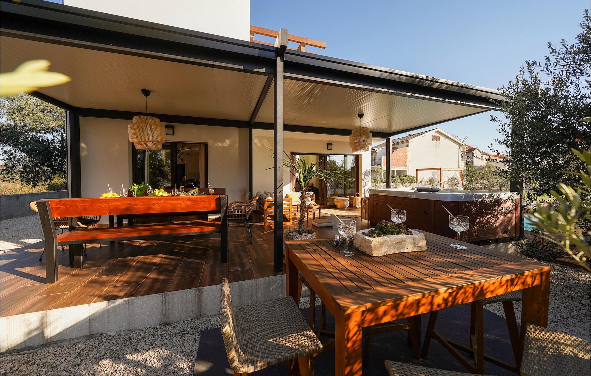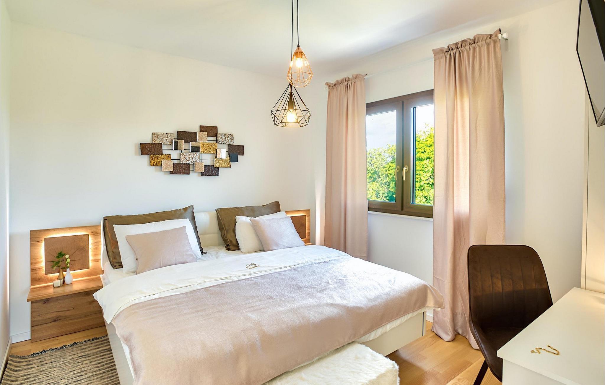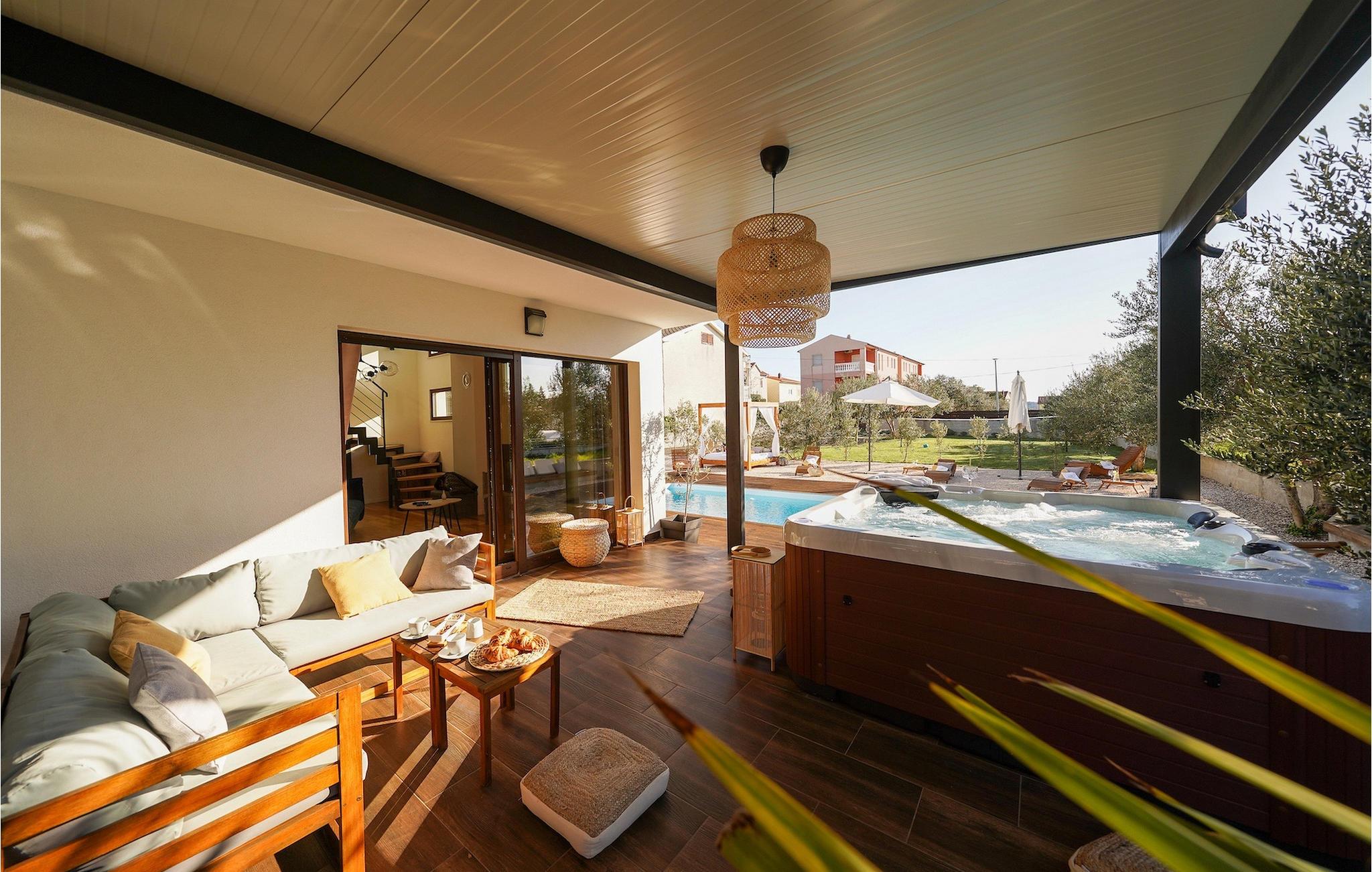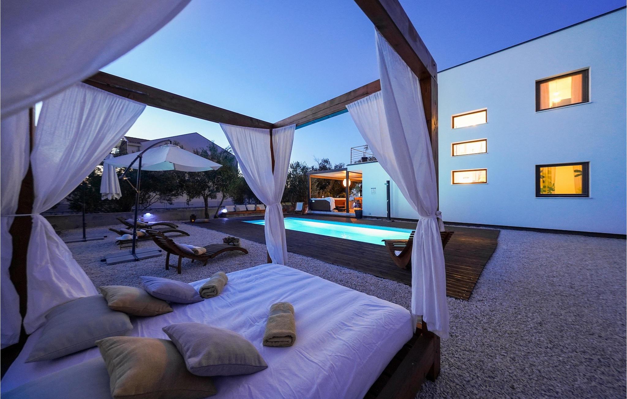 Diese Villa befindet sich auf einem mehr als 900 m2 großen Grundstück in Sukosan, einem malerischen kleinen Küstenort in der Nähe von Zadar. Nur ein kurzer Spaziergang von dieser schönen Villa trennt Sie vom nächsten Strand. Ein schöner privater Pool steht zu Ihrer Verfügung. Der Poolbereich ist mit Sicherheit der Ort, an dem Sie die meiste Zeit verbringen werden, da es gemütliche Liegestühle zum Entspannen am Pool und einen Essbereich im Freien mit einem Holzkohlegrill gibt, der sich ideal zum Zubereiten und Genießen von Mahlzeiten im Freien eignet. Die Villa verfügt über 4 Schlafzimmer und 3 Badezimmer und ist liebevoll eingerichtet, in einem einfachen Stil, aber mit viel Liebe zum Detail. Das Erdgeschoss besteht aus einem geräumigen Wohn- und Essbereich mit einer völlig ausgestatteten Küche. Das farbenfrohe Kinderzimmer mit zwei getrennten Einzelbetten befindet sich ebenfalls im Erdgeschoss, zusammen mit einem Badezimmer und einer separaten Toilette. Die restlichen 2 Badezimmer und 3 Schlafzimmer, jeweils mit Doppelbett, TV und Klimaanlage, befinden sich im Obergeschoss. Auf dem großen Balkon mit Meerblick können Sie Sonnenuntergänge genießen. Die Villa ist komplett eingezäunt, bietet zwei private Parkplätze und viele Möglichkeiten zum Entspannen und einen unvergesslichen Urlaub in der Nähe von Zadar zu erleben.Diese Villa liegt in der kleinen Ortschaft Sukosan, nur eine kurze Autofahrt von Zadar entfernt. Zadar ist eine alte sehenswerte Stadt reich an Kulturerbe und historischen Attraktionen. Der berühmte Alfred Hitchcock sagte, in Zadar sei der schönste Sonnenuntergang - verpassen Sie ihn nicht! Die Altstadt bietet Denkmäler aus der Antike, dem Mittelalter und der Renaissance: das Römische Forum (1. Jhd.), die Kirche St. Donat (9. Jahrhundert), die Kirche St. Marija (11. Jhd., im 16. Jhd. wieder aufgebaut), die Kathedrale St. Anastasia (12. bis 13. Jhd.), die Teile der Verteidigungsmauern ... Heutzutage ist Zadar für die Meeresorgel und die Lichtinstallation "Pozdrav suncu" (Gruß an die Sonne) bekannt. Die Region bietet herrliche Strände, gute Restaurants mit mediterraner Küche, aber auch atemberaubende National- und Naturparks (Krka Wasserfälle, Kornati, Plitvicer Seen, Telašcica, Paklenica …). Wenn Sie mehr Spaß haben möchten, stehen Ihnen in Zadar vom Sonnenuntergang bis zum -aufgang Strandbars und Cafés, sowie Nachtclubs und Diskos zur Verfügung. Während Ihres Aufenthaltes in Zadar vergessen Sie nicht, den süßen Maraschino Kirschlikör zu kosten!