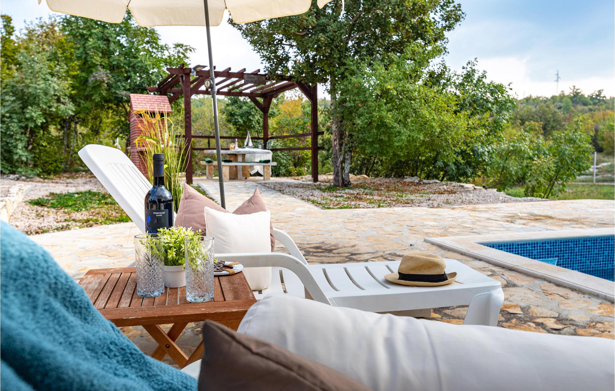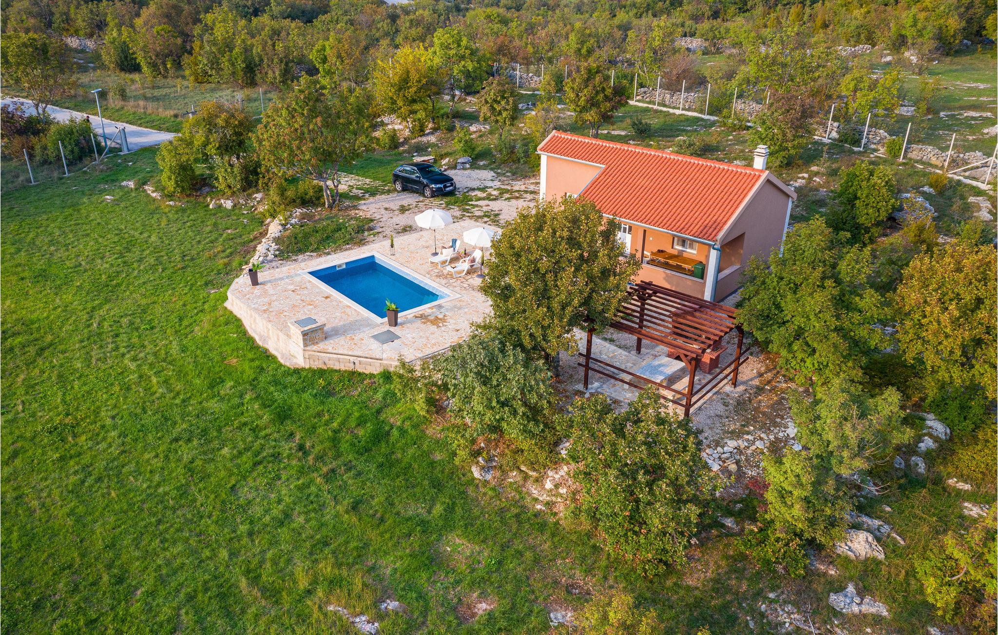 Willkommen in diesem kompakten und schönen Ferienhaus, dass Ihnen das Erlebnis der Abgeschiedenheit und Ruhe im Hinterland von Zadar bietet. Genießen Sie mit Ihren Liebsten eine entspannte Zeit in dem schönen Haus, das voll ausgestattet ist. Die Besonderheit ist der schöne Garten, der eingezäunt ist, sich dennoch inmitten der Landschaft einfügt. Sonnen Sie sich am Swimmingpool und verbringen Sie viele spaßige Stunden im Wasser. Ihre Kinder und Ihr geliebter Vierbeiner können auf dem Grundstück toben und spielen, während Sie das Abendessen auf dem Grill zubereiten, dass Sie auf der Terrasse mit Pergola einnehmen können.