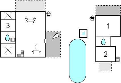 Badezimmer (nr. 2) - WC. Warmes und kaltes Wasser. Dusche