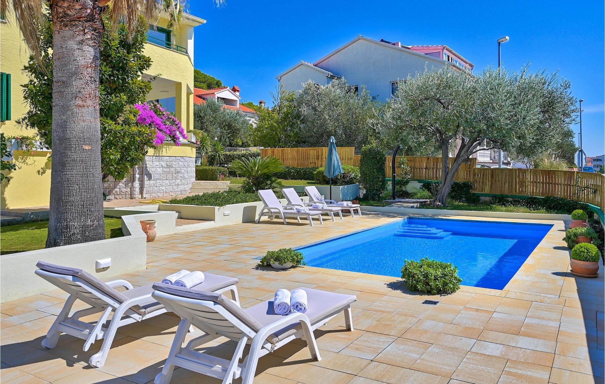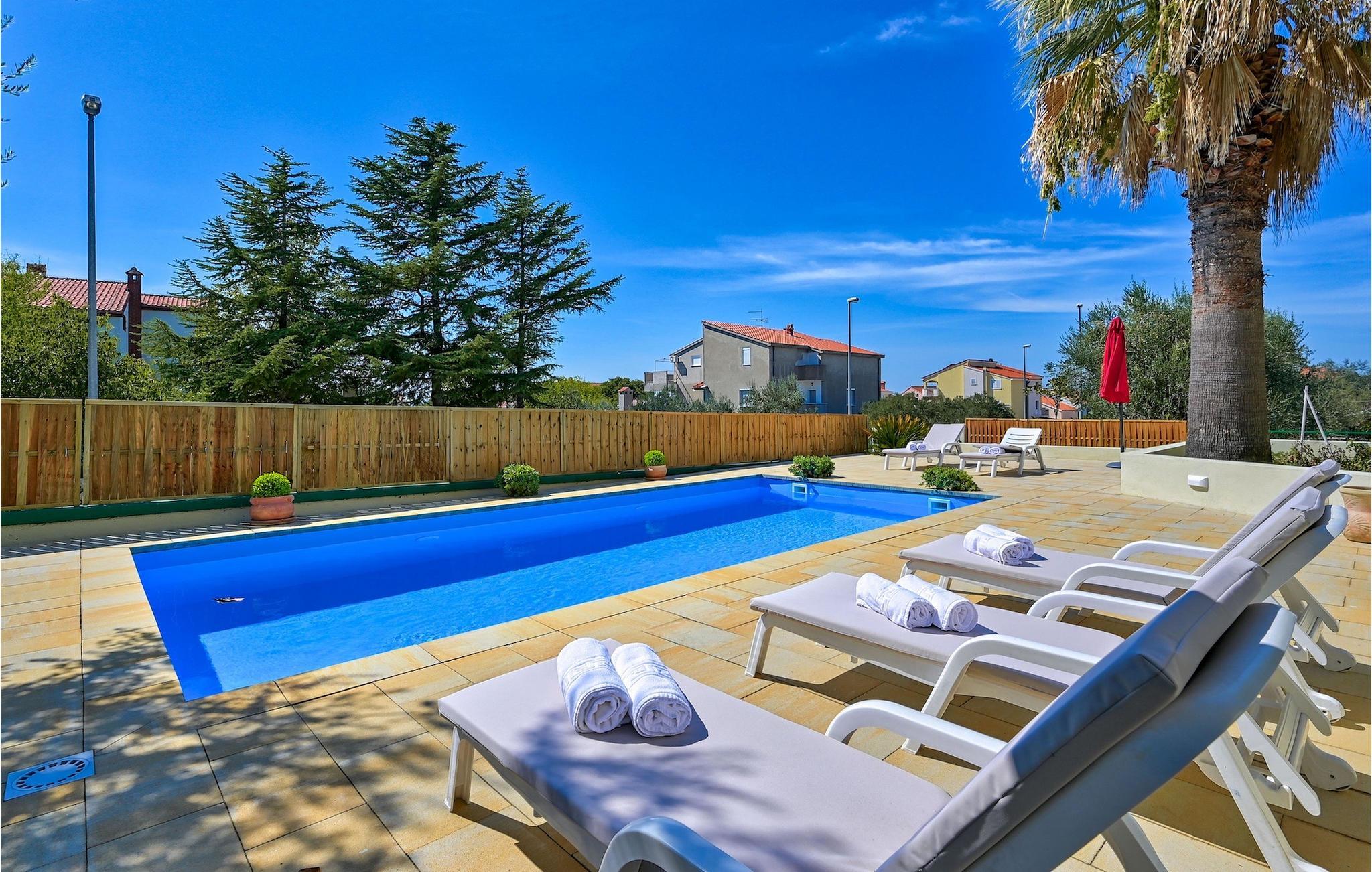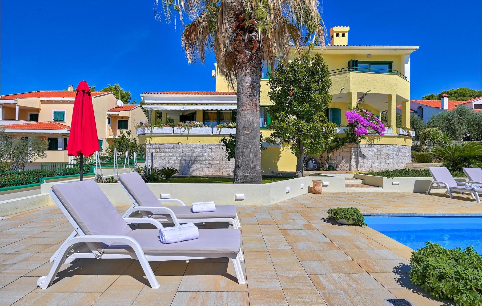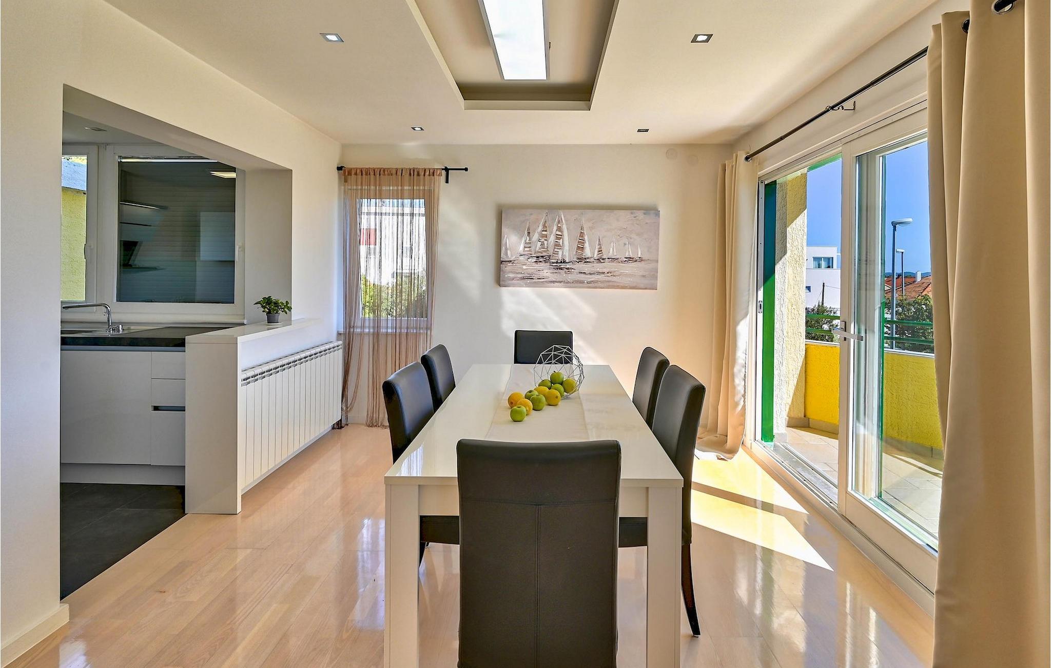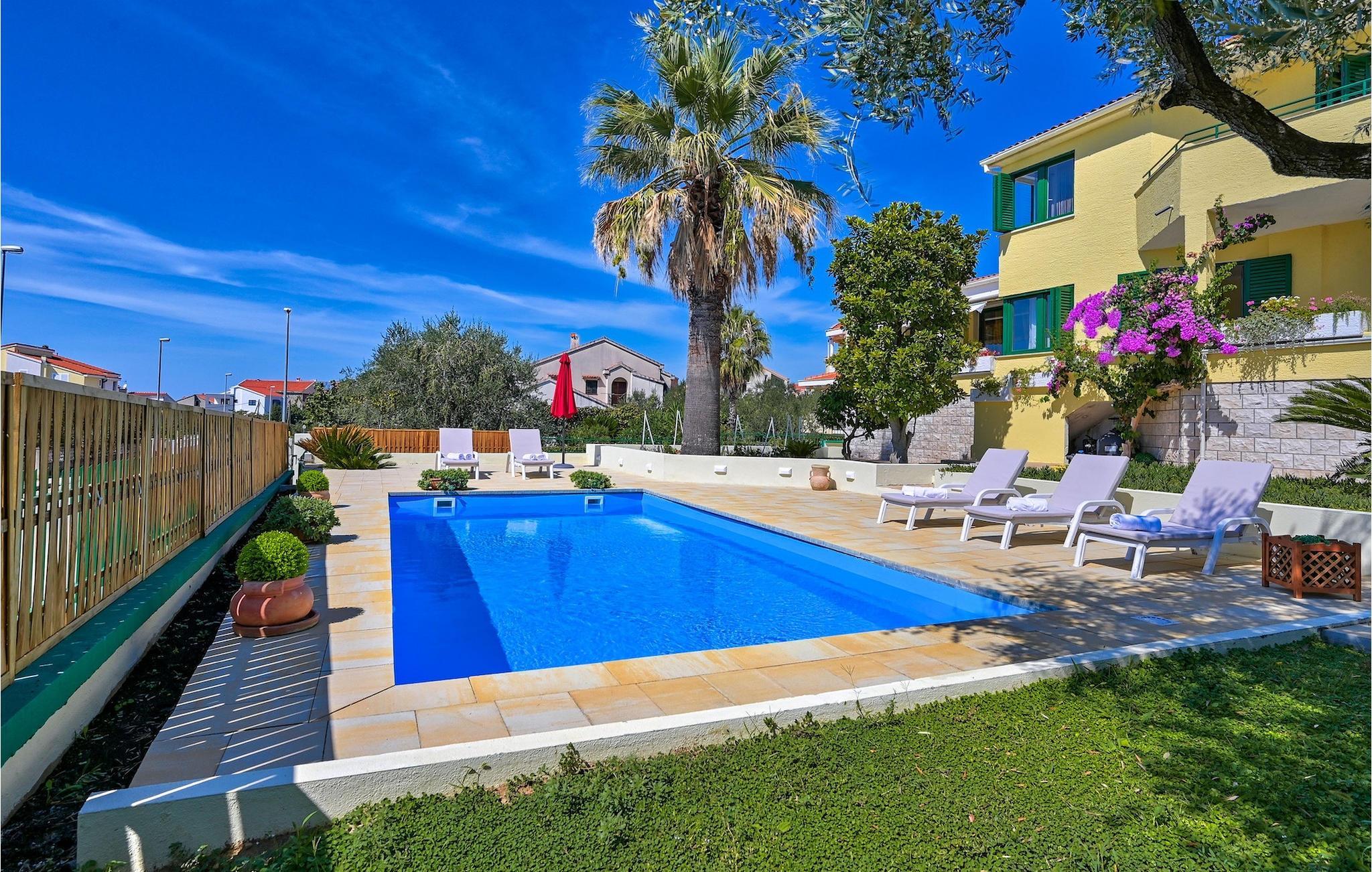 Wenn Sie Ihren Urlaub in einer wunderschönen Villa in der Stadt Zadar verbringen möchten, buchen Sie unbedingt die Villa Oscar. Die charmante Villa Oscar bietet Platz für insgesamt 9 Personen in einer komfortablen Umgebung. Sie ist in Erdgeschoss, ersten Stock und Dachboden mit Terrasse unterteilt. Das Erdgeschoss der Villa verfügt über eine voll ausgestattete Küche mit Essbereich, ein Wohnzimmer mit Terrasse, drei Schlafzimmer eigener Terrasse, zwei Badezimmer und einen Massageraum. Im ersten Stock gibt es ein Wohnzimmer, eine voll ausgestattete Küche mit Essbereich, eine Terrasse, 3 Schlafzimmer mit Terrasse und ein Badezimmer. Auf dem Dachboden der Villa befindet sich eine große Terrasse mit herrlichem Panoramablick. Im wunderschön gestalteten Innenhof befinden sich ein privater Pool sowie Liegestühle, auf denen Sie sich entspannen können. Im Innenhof der Villa gibt es einen Bereich für Mini-Fußball für Kinder. Außerdem stehen Schläger für Badminton und Squash und einen Boxsack zu Verfügung. In einem Raum befinden sich eine Tischtennisplatte, Tischfußball und Darts. Erkunden Sie unbedingt die Stadt Zadar und die sie umgebende Natur. Buchen Sie die Villa Oskar und genießen Sie ihren wohlverdienten Urlaub.Die Villa Oscar befindet sich nur 5 Autominuten vom Zentrum von Zadar entfernt. Die ausgezeichnete Lage der Villa bietet ihren Gästen die Möglichkeit, die berühmten Sehenswürdigkeiten von Zadar zu Fuß zu besuchen, da sie nur wenige Minuten von der Villa entfernt sind. Besuchen Sie die Altstadt von Zadar und spazieren Sie durch die engen Gassen bis hin zur Küste, wo Sie den Klang der Meeresorgel hören werden. Spazieren Sie entlang der Küste und genießen Sie ein Eis und gleichzeitig den schönsten Sonnenuntergang am Mittelmeer. Wenn Sie echte dalmatinische Spezialitäten probieren wollen, sollten Sie unbedingt die Restaurants im Stadtzentrum besuchen. Berühmte Strände wie die Strände Borik und Uskok sind nur 1 km von der Villa entfernt. Besuchen Sie die nahe gelegenen Inseln des Zadarer Archipels, die wegen ihrer unberührten Natur, den schönen Kieselstränden und dem kristallklaren Meer besonders sind. Alle Liebhaber von Naturschönheiten sollten den Nationalpark Kornati,, eine Inselgruppe mit zahlreichen versteckten Buchten und Stränden, oder den Nationalpark Krka im Landesinneren besuchen, der für seine zahlreichen Wasserfälle und Kaskaden bekannt ist.