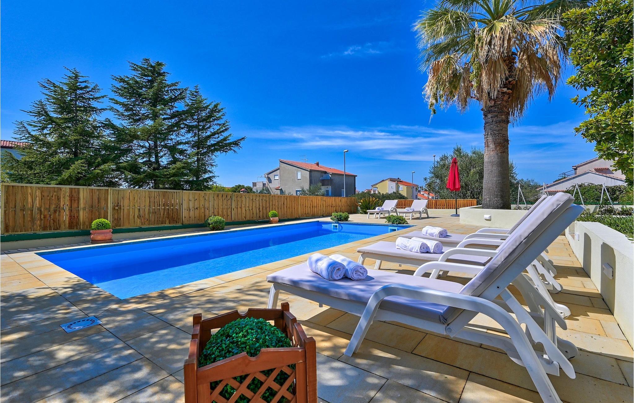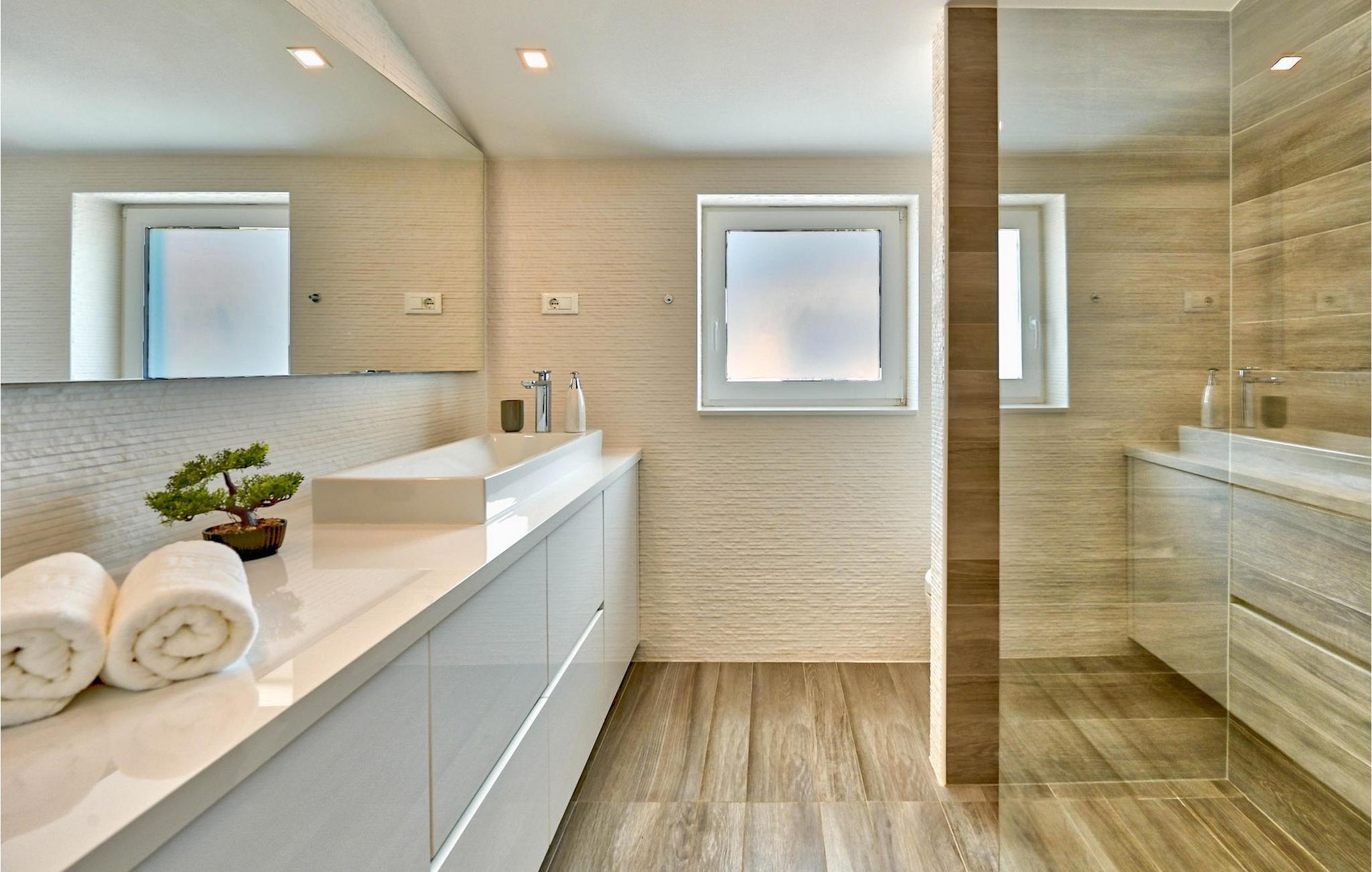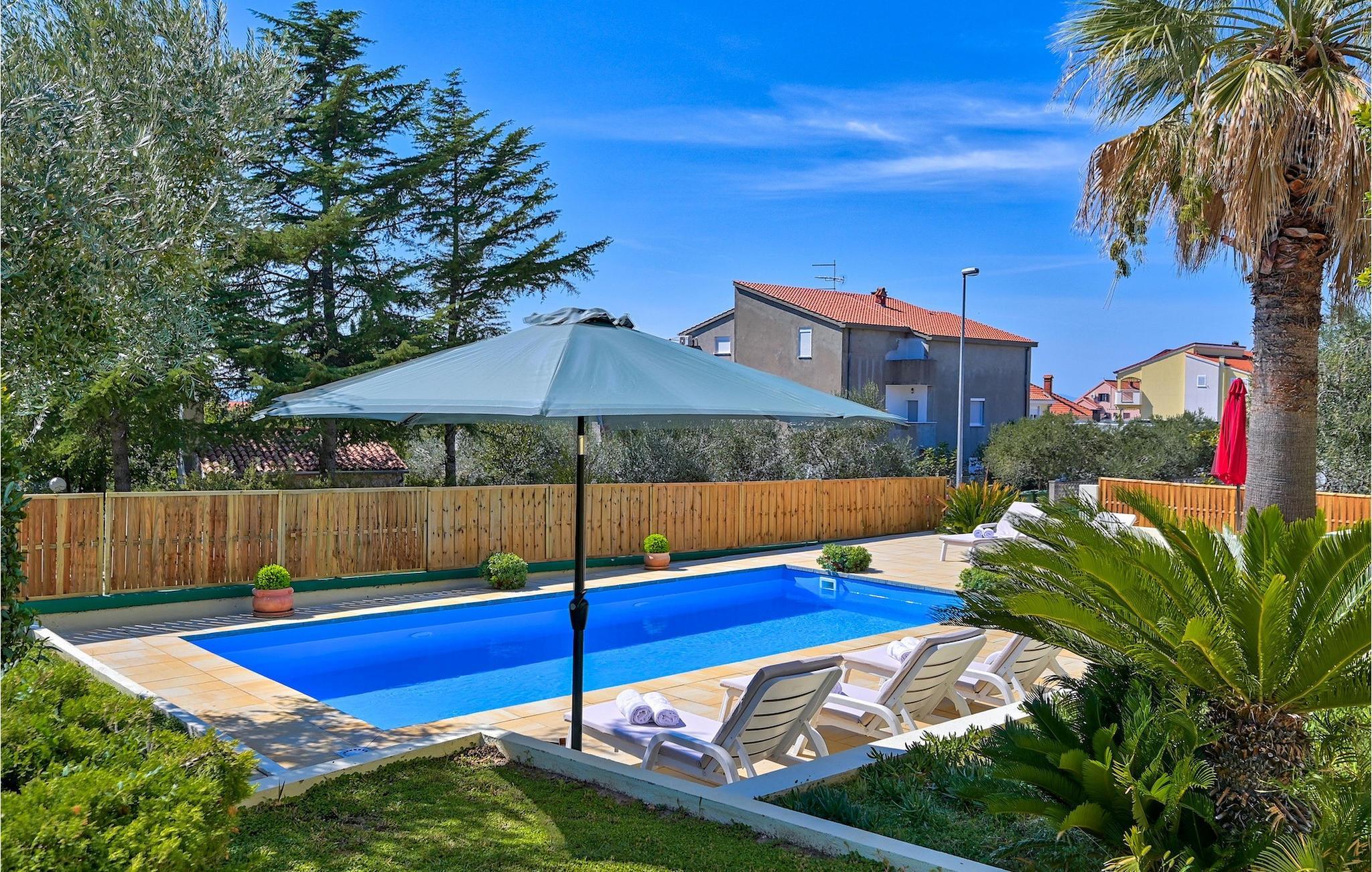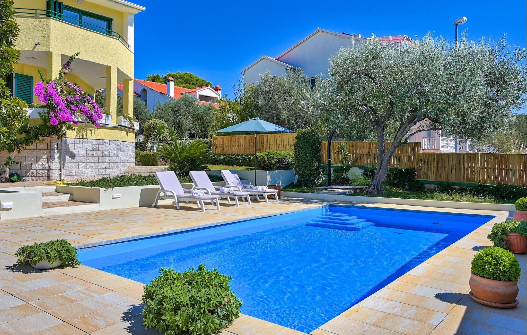Wenn Sie Ihren Urlaub in einer wunderschönen Villa in der Stadt Zadar verbringen möchten, buchen Sie unbedingt die Villa Oscar. Die charmante Villa Oscar bietet Platz für insgesamt 9 Personen in einer komfortablen Umgebung. Sie ist in Erdgeschoss, ersten Stock und Dachboden mit Terrasse unterteilt. Das Erdgeschoss der Villa verfügt über eine voll ausgestattete Küche mit Essbereich, ein Wohnzimmer mit Terrasse, drei Schlafzimmer eigener Terrasse, zwei Badezimmer und einen Massageraum. Im ersten Stock gibt es ein Wohnzimmer, eine voll ausgestattete Küche mit Essbereich, eine Terrasse, 3 Schlafzimmer mit Terrasse und ein Badezimmer. Auf dem Dachboden der Villa befindet sich eine große Terrasse mit herrlichem Panoramablick. Im wunderschön gestalteten Innenhof befinden sich ein privater Pool sowie Liegestühle, auf denen Sie sich entspannen können. Im Innenhof der Villa gibt es einen Bereich für Mini-Fußball für Kinder. Außerdem stehen Schläger für Badminton und Squash und einen Boxsack zu Verfügung. In einem Raum befinden sich eine Tischtennisplatte, Tischfußball und Darts. Erkunden Sie unbedingt die Stadt Zadar und die sie umgebende Natur. Buchen Sie die Villa Oskar und genießen Sie ihren wohlverdienten Urlaub.Die Villa Oscar befindet sich nur 5 Autominuten vom Zentrum von Zadar entfernt. Die ausgezeichnete Lage der Villa bietet ihren Gästen die Möglichkeit, die berühmten Sehenswürdigkeiten von Zadar zu Fuß zu besuchen, da sie nur wenige Minuten von der Villa entfernt sind. Besuchen Sie die Altstadt von Zadar und spazieren Sie durch die engen Gassen bis hin zur Küste, wo Sie den Klang der Meeresorgel hören werden. Spazieren Sie entlang der Küste und genießen Sie ein Eis und gleichzeitig den schönsten Sonnenuntergang am Mittelmeer. Wenn Sie echte dalmatinische Spezialitäten probieren wollen, sollten Sie unbedingt die Restaurants im Stadtzentrum besuchen. Berühmte Strände wie die Strände Borik und Uskok sind nur 1 km von der Villa entfernt. Besuchen Sie die nahe gelegenen Inseln des Zadarer Archipels, die wegen ihrer unberührten Natur, den schönen Kieselstränden und dem kristallklaren Meer besonders sind. Alle Liebhaber von Naturschönheiten sollten den Nationalpark Kornati,, eine Inselgruppe mit zahlreichen versteckten Buchten und Stränden, oder den Nationalpark Krka im Landesinneren besuchen, der für seine zahlreichen Wasserfälle und Kaskaden bekannt ist.