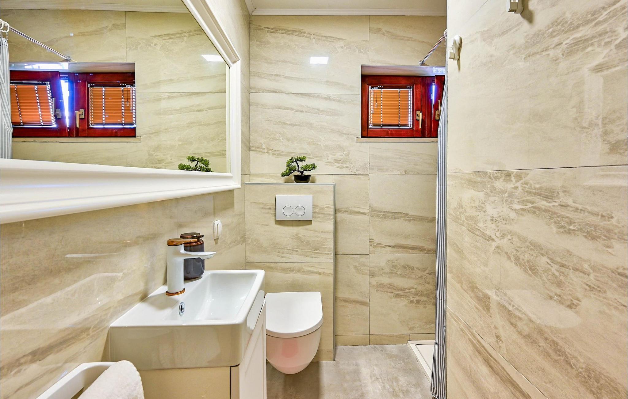 Badezimmer (nr. 2) - WC. Warmes und kaltes Wasser. Dusche