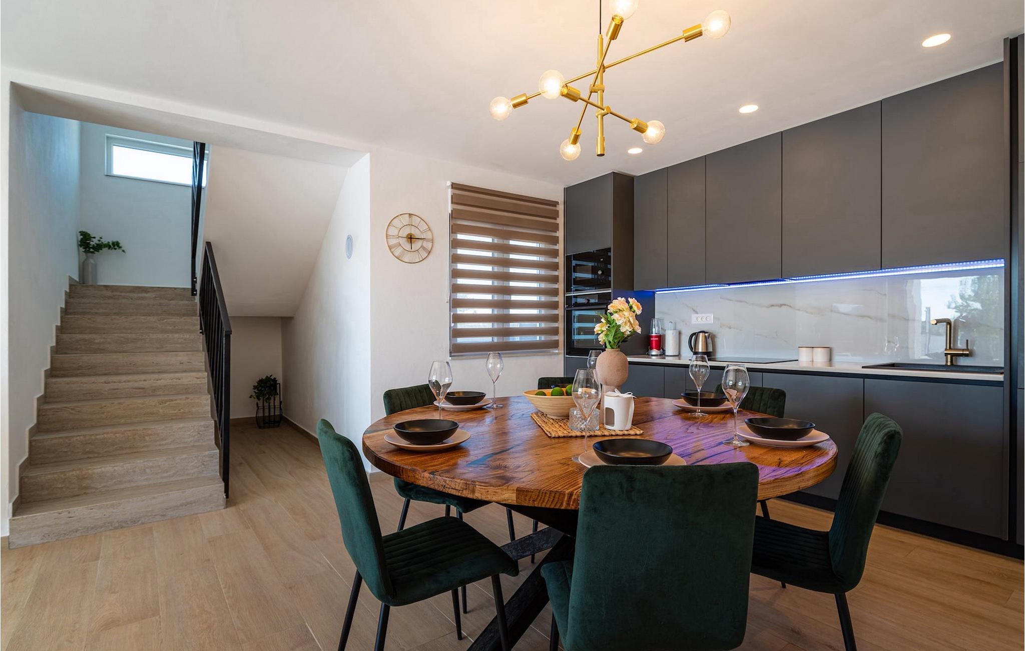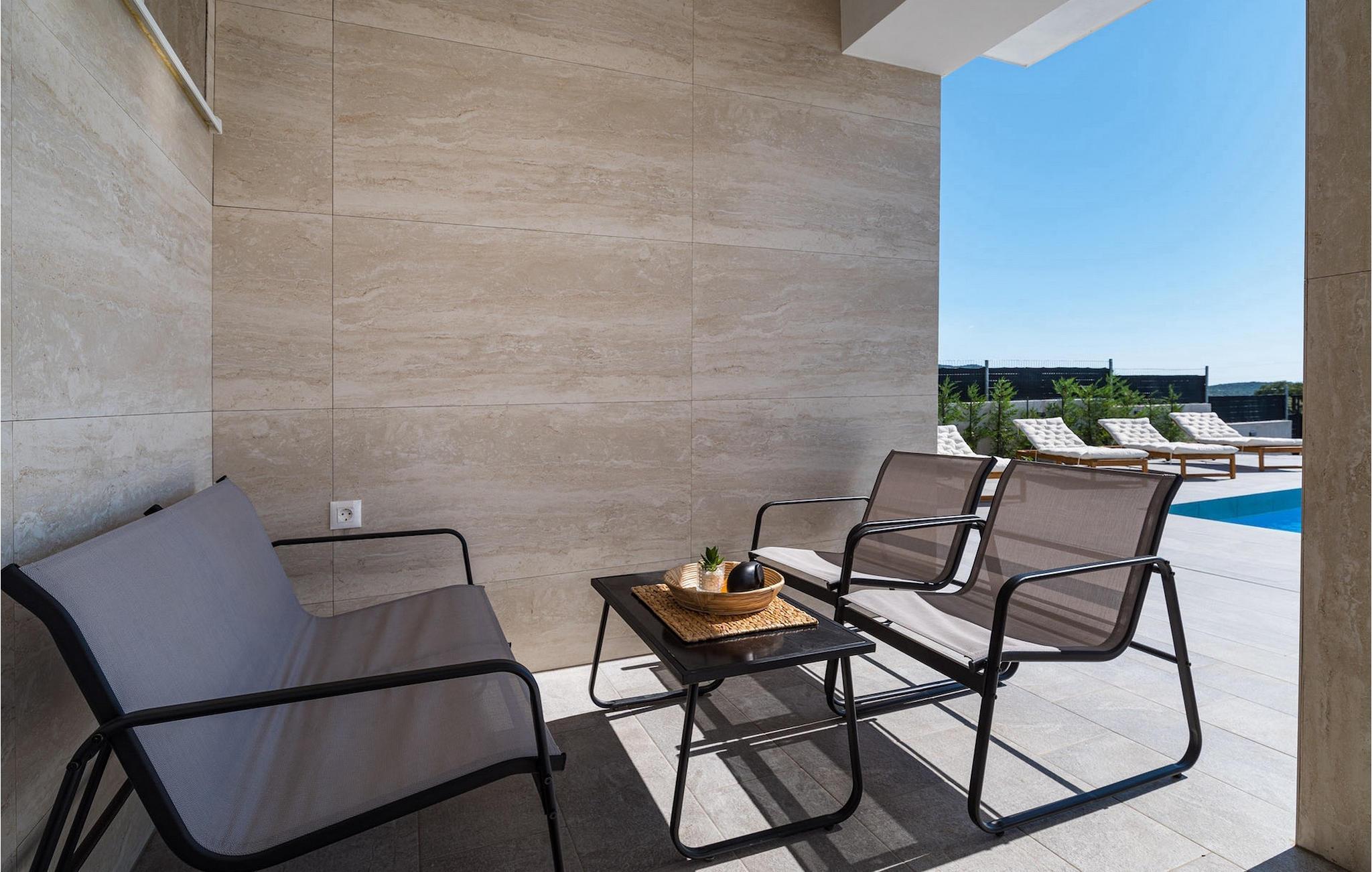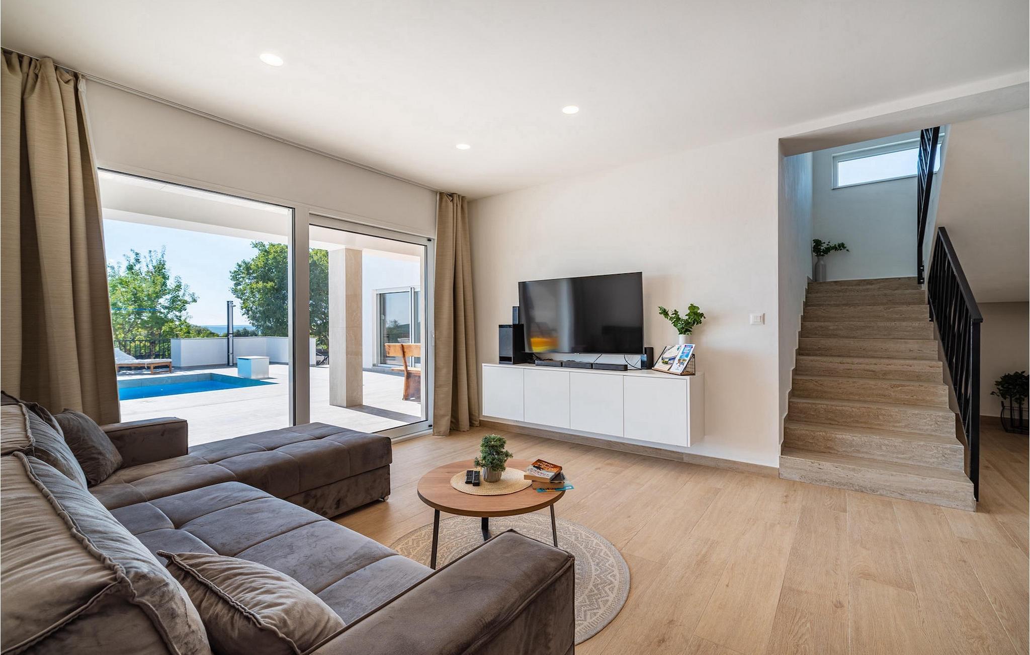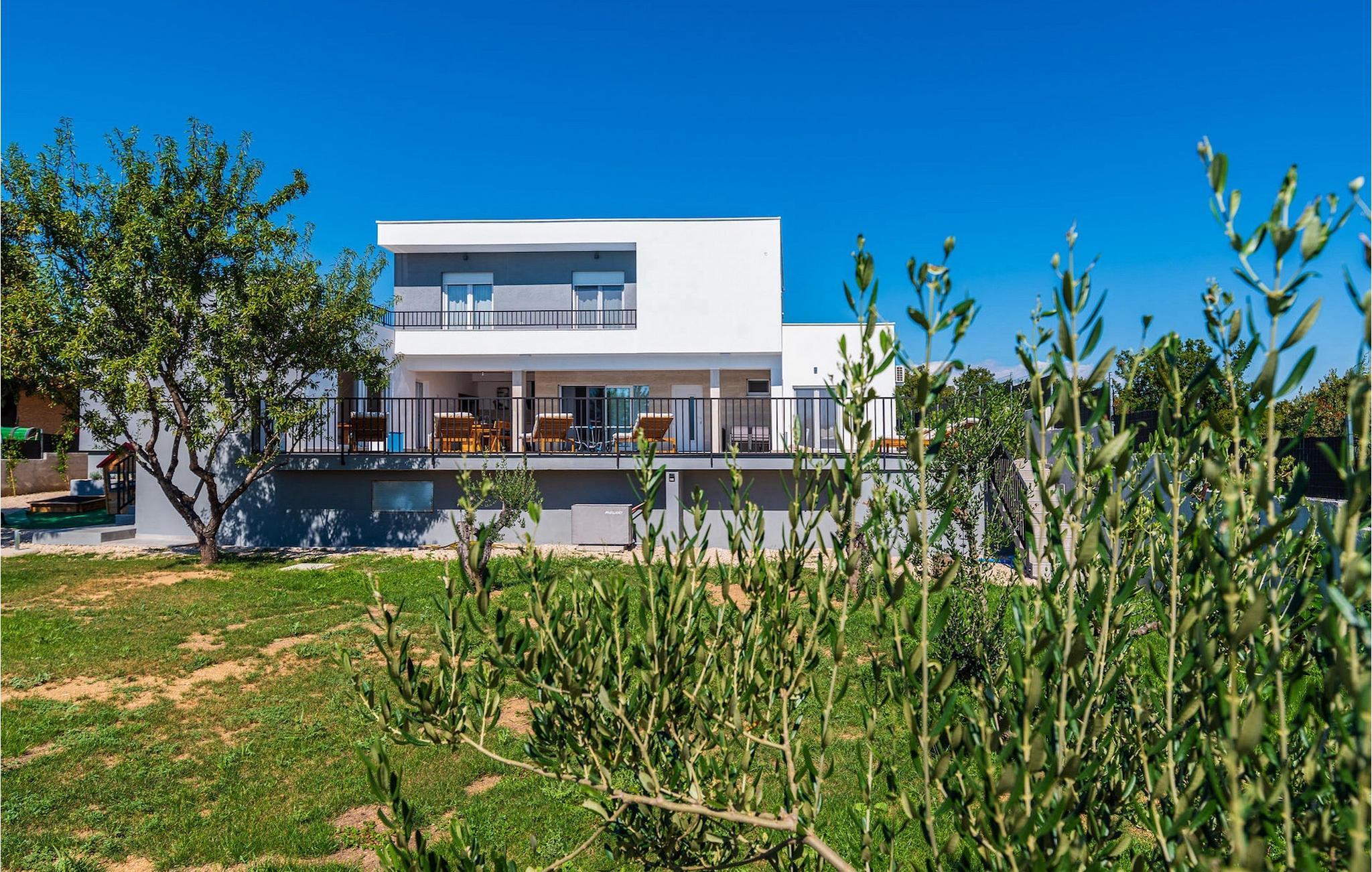 Sie wünschen sich einen erholsamen Urlaub, Ruhe und Komfort fernab des Alltags? Dann sind Sie in der Villa Tea Polaca nahe Zadar für bis zu 10 Gäste genau richtig! Dieses elegant und modern gestaltete Ferienhaus mit 5 Zimmern bietet Ihnen alles, was Sie für einen unvergesslichen Urlaub in Dalmatien mit Familie und Freunden benötigen. Das Herzstück der Villa Tea Polaca bildet der 40m2 große erfrischende Swimming-Pool, wo Sie sicherlich die meiste Zeit verbringen werden. Machen Sie es sich mit einem kühlen Getränk auf einer der Sonnenliegen bequem, während in der offenen Sommerküche das Familienessen am Holzkohlegrill zubereitet wird. Dabei haben Sie auch die Kinder im Blick, die im Garten toben, Tischtennis spielen oder ein Turnier am Kickertisch austragen. Verbringen Sie warme Sommerabende gemeinsam mit der ganzen Familie am großen Esstisch auf der überdachten Terrasse. Im Nebenobjekt sorgt der Orbitrek für Ihre Fitness und die Sauna für etwas Entspannung. Ein zusätzliches Badezimmer mit Dusche steht Ihnen hier zur Verfügung. Betreten Sie das voll klimatisierte Interieur der Villa Tea Polaca vom Außenbereich aus, so gelangen Sie in das helle Wohnzimmer mit TV. Daran schließen sich die voll ausgestattete Küche und der Essbereich, sowie eine Gästetoilette an. Auf der gleichen Ebene befinden sich außerdem 2 komfortable Doppelschlafzimmer, jeweils mit eigenem ensuite Badezimmer. Über die Treppe gelangen Sie zu weiteren 3 schönen Schlafzimmern, die jeweils über ein Doppelbett verfügen. Auch diese Schlafzimmer haben jeweils ein eigenes Badezimmer mit Dusche. Jedes Schlafzimmer hat einen TV und Klimaanlage. Hier gelangen Sie auch zum Balkon, der ein wenig Privatsphäre bietet und von dem aus Sie einen wunderbaren Ausblick auf die Umgebung oder den klaren Sternenhimmel am Abend genießen können. Gönnen Sie sich un Ihren Liebsten nur das Beste, buchen Sie gleich und verbringen Sie Ihren Traumurlaub in Dalmatien in der fantastischen Villa Tea Polaca! Die fantastische Villa Tea Polaca liegt im kleinen, ruhigen Dorf Polaca, nur 11km von Biograd na Moru und nicht allzu weit von der berühmten historischen Stadt Zadar entfernt. Die Umgebung der Villa Tea Polaca bietet neben dem nur 11km entfernten Meer eine große Auswahl an Naturschönheiten und kulturellen Sehenswürdigkeiten. Die Städte Zadar und Sibenik voller Kultur und Geschichte sind auf jeden Fall einen Besuch wert. Der berühmte Touristenort Biograd na Moru bietet unzählige Aktivitäten, Restaurants und Strände sowie den Fun Park Mirnovec, falls Sie Lust auf ein wenig Adrenalin haben. Mehrere Nationalparks stehen Ihnen in dieser Region zur Auswahl: Kornati, Krka, Paklenica, Naturpark Nordvelebit und der Vransko See. Naturliebhaber werden sich nur schwer entscheiden können. Picken Sie sich von allem etwas heraus und genießen Sie Ihren Urlaub in vollen Zügen. Die Temperatur des beheizten Schwimmbades hängt von äußeren Faktoren, einschließlich der Wetterbedingungen, ab und daher kann die Wassertemperatur nicht garantiert werden.