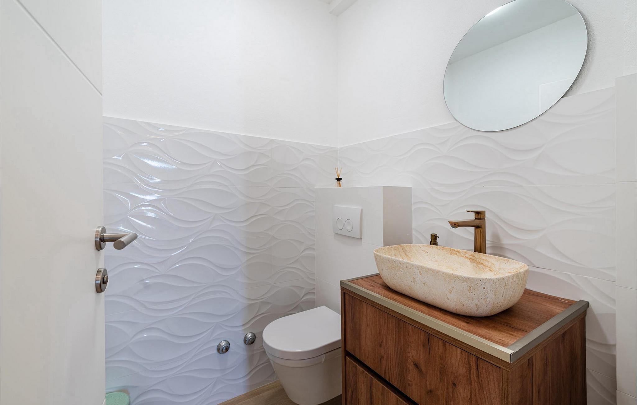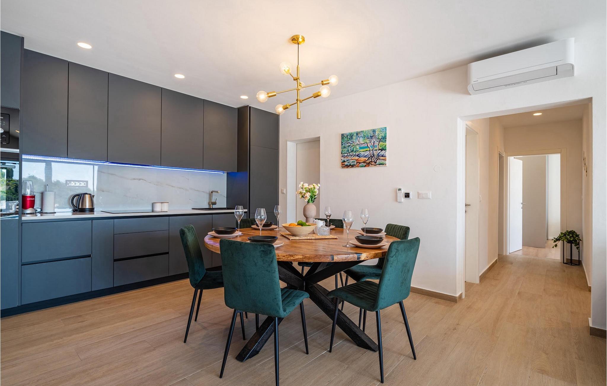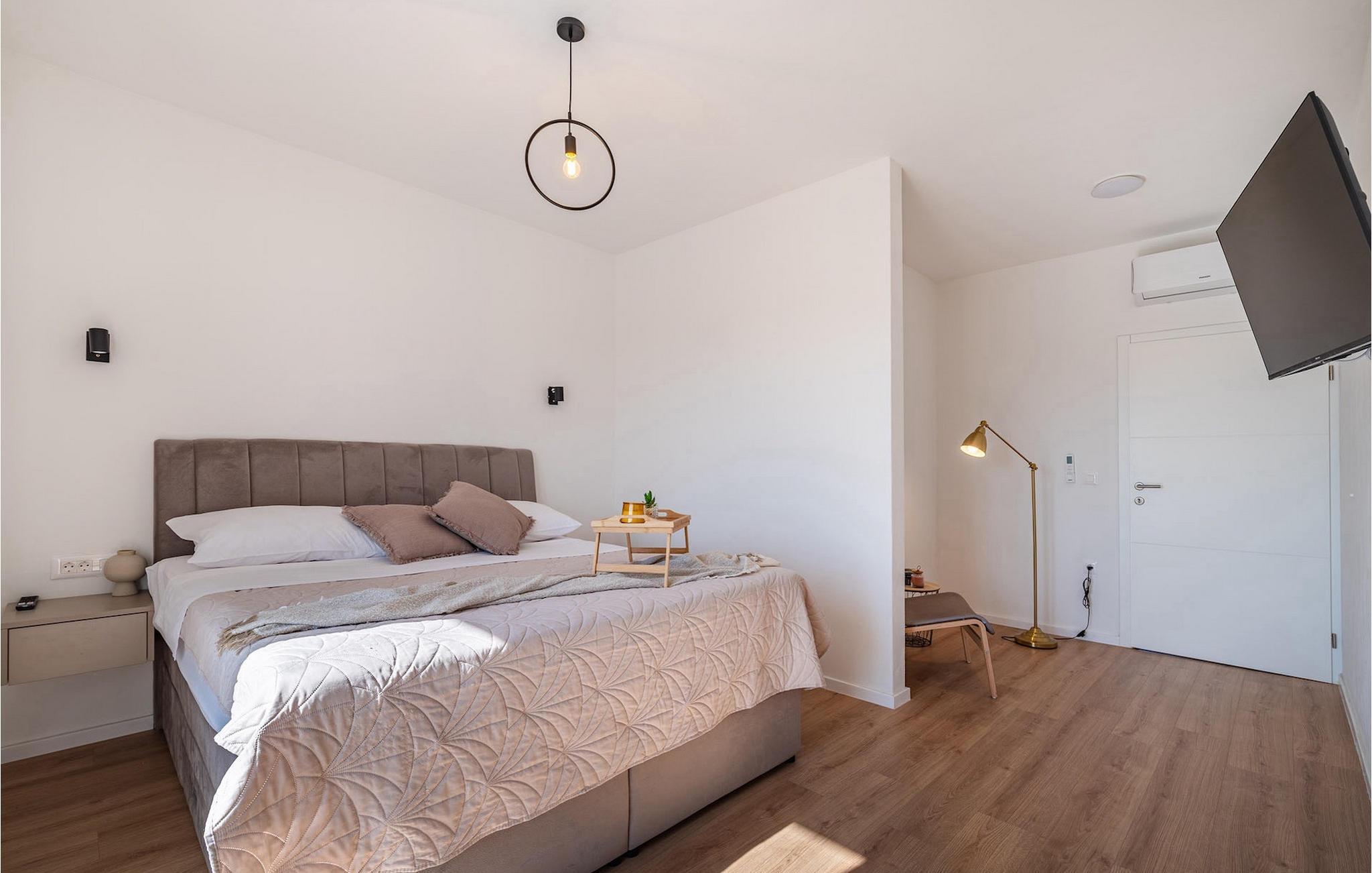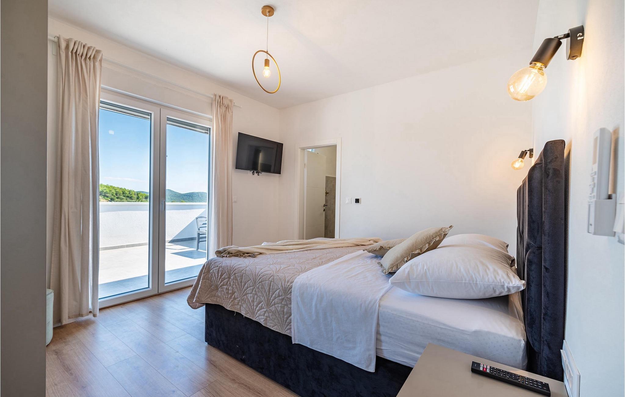 Sie wünschen sich einen erholsamen Urlaub, Ruhe und Komfort fernab des Alltags? Dann sind Sie in der Villa Tea Polaca nahe Zadar für bis zu 10 Gäste genau richtig! Dieses elegant und modern gestaltete Ferienhaus mit 5 Zimmern bietet Ihnen alles, was Sie für einen unvergesslichen Urlaub in Dalmatien mit Familie und Freunden benötigen. Das Herzstück der Villa Tea Polaca bildet der 40m2 große erfrischende Swimming-Pool, wo Sie sicherlich die meiste Zeit verbringen werden. Machen Sie es sich mit einem kühlen Getränk auf einer der Sonnenliegen bequem, während in der offenen Sommerküche das Familienessen am Holzkohlegrill zubereitet wird. Dabei haben Sie auch die Kinder im Blick, die im Garten toben, Tischtennis spielen oder ein Turnier am Kickertisch austragen. Verbringen Sie warme Sommerabende gemeinsam mit der ganzen Familie am großen Esstisch auf der überdachten Terrasse. Im Nebenobjekt sorgt der Orbitrek für Ihre Fitness und die Sauna für etwas Entspannung. Ein zusätzliches Badezimmer mit Dusche steht Ihnen hier zur Verfügung. Betreten Sie das voll klimatisierte Interieur der Villa Tea Polaca vom Außenbereich aus, so gelangen Sie in das helle Wohnzimmer mit TV. Daran schließen sich die voll ausgestattete Küche und der Essbereich, sowie eine Gästetoilette an. Auf der gleichen Ebene befinden sich außerdem 2 komfortable Doppelschlafzimmer, jeweils mit eigenem ensuite Badezimmer. Über die Treppe gelangen Sie zu weiteren 3 schönen Schlafzimmern, die jeweils über ein Doppelbett verfügen. Auch diese Schlafzimmer haben jeweils ein eigenes Badezimmer mit Dusche. Jedes Schlafzimmer hat einen TV und Klimaanlage. Hier gelangen Sie auch zum Balkon, der ein wenig Privatsphäre bietet und von dem aus Sie einen wunderbaren Ausblick auf die Umgebung oder den klaren Sternenhimmel am Abend genießen können. Gönnen Sie sich un Ihren Liebsten nur das Beste, buchen Sie gleich und verbringen Sie Ihren Traumurlaub in Dalmatien in der fantastischen Villa Tea Polaca! Die fantastische Villa Tea Polaca liegt im kleinen, ruhigen Dorf Polaca, nur 11km von Biograd na Moru und nicht allzu weit von der berühmten historischen Stadt Zadar entfernt. Die Umgebung der Villa Tea Polaca bietet neben dem nur 11km entfernten Meer eine große Auswahl an Naturschönheiten und kulturellen Sehenswürdigkeiten. Die Städte Zadar und Sibenik voller Kultur und Geschichte sind auf jeden Fall einen Besuch wert. Der berühmte Touristenort Biograd na Moru bietet unzählige Aktivitäten, Restaurants und Strände sowie den Fun Park Mirnovec, falls Sie Lust auf ein wenig Adrenalin haben. Mehrere Nationalparks stehen Ihnen in dieser Region zur Auswahl: Kornati, Krka, Paklenica, Naturpark Nordvelebit und der Vransko See. Naturliebhaber werden sich nur schwer entscheiden können. Picken Sie sich von allem etwas heraus und genießen Sie Ihren Urlaub in vollen Zügen. Die Temperatur des beheizten Schwimmbades hängt von äußeren Faktoren, einschließlich der Wetterbedingungen, ab und daher kann die Wassertemperatur nicht garantiert werden.