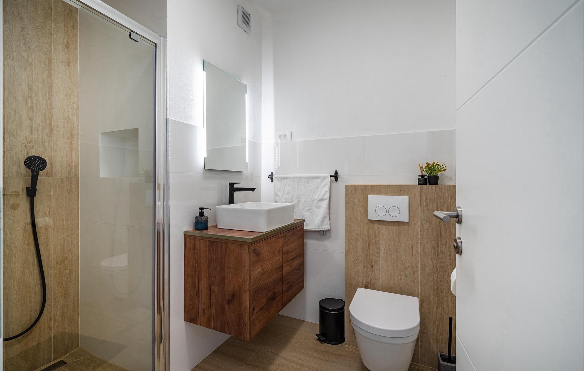 Badezimmer (nr. 2) - WC. Warmes und kaltes Wasser. Dusche