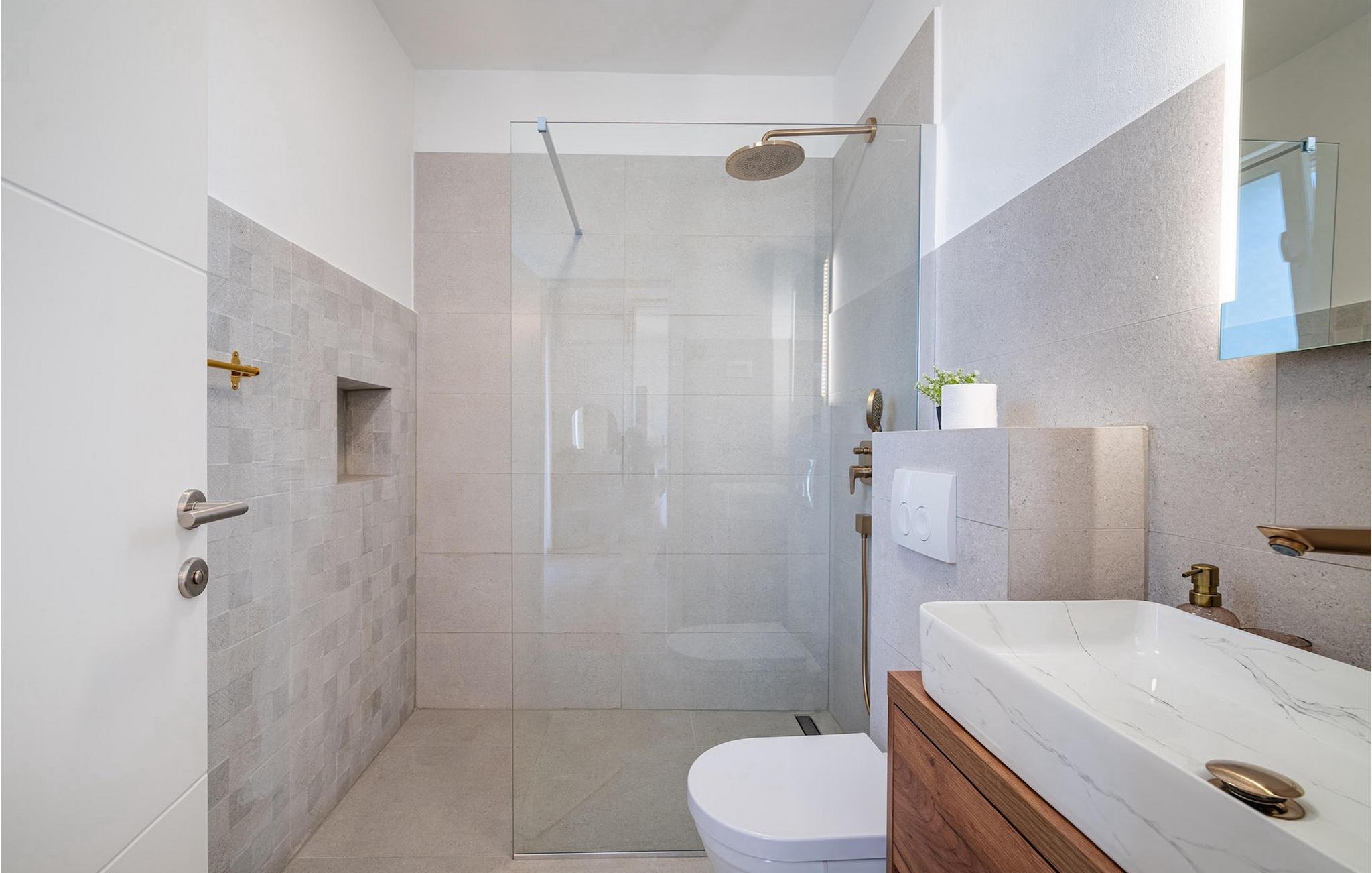 Badezimmer (nr. 5) - WC. Warmes und kaltes Wasser. Dusche