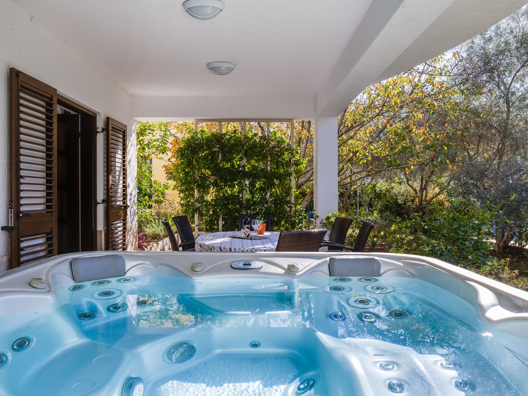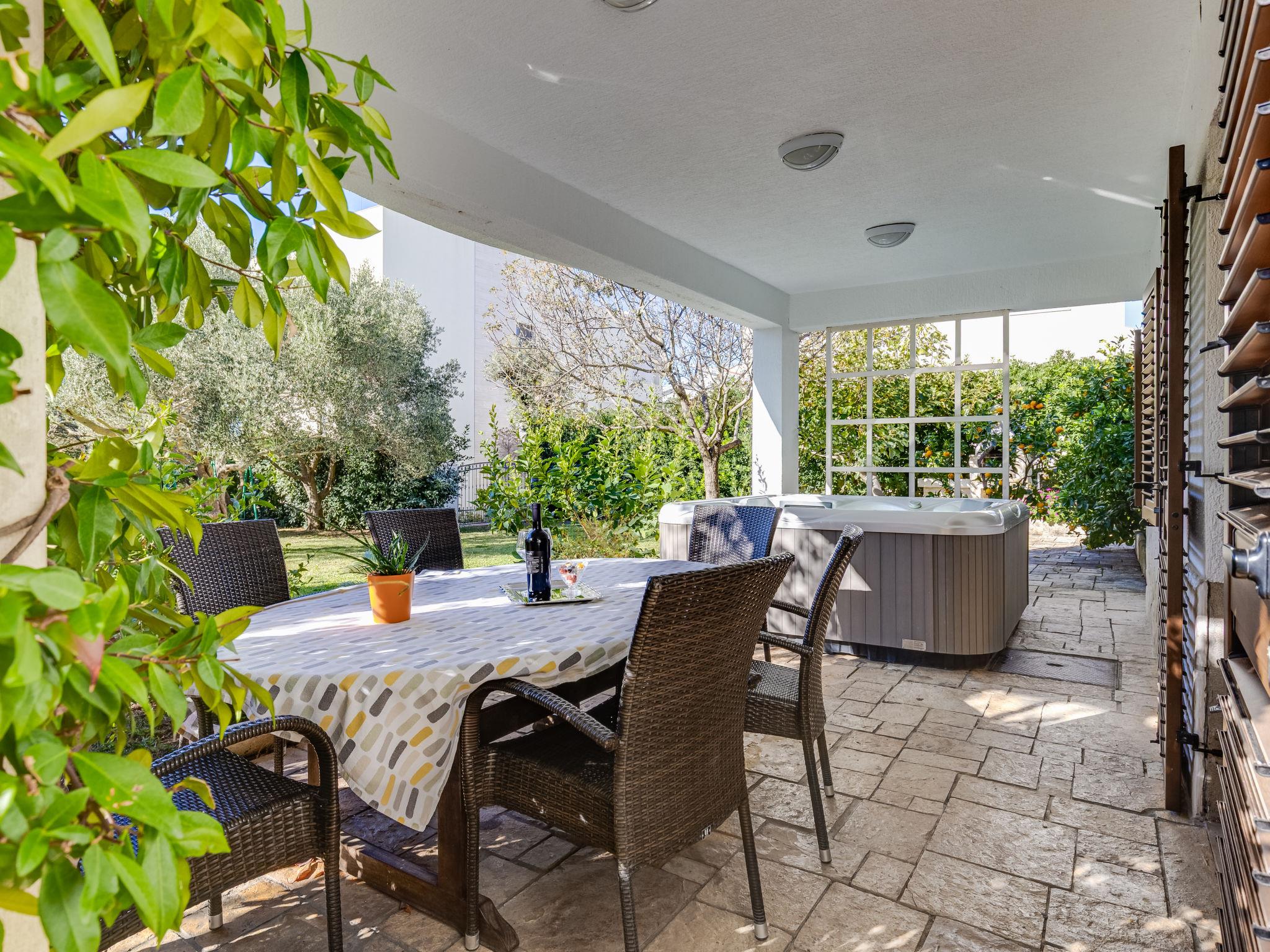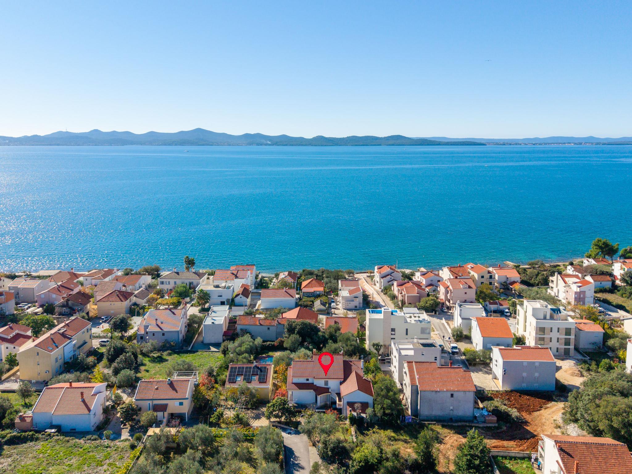 Beautiful, cosy 3-family house "Anica". In the district of Diklo, 6 km from the centre of Zadar, outside the resort, in a quiet, sunny, elevated position in the residential district, 150 m from the sea, 150 m from the beach, in the countryside, south facing position. For shared use: property 300 m2 (fenced), garden with lawn and trees. Private: hot tub, parking at the house on the premises. Shop 400 m, restaurant 450 m, bus stop 400 m, rocky beach 300 m, public bathing area 2.5 km, concrete beach 150 m. Tennis, sports centre 400 m.