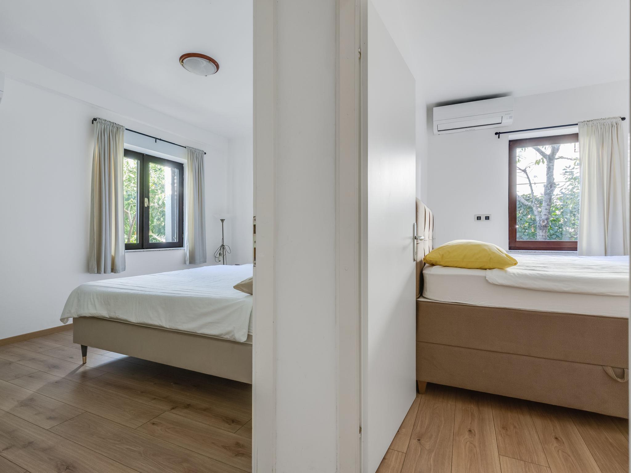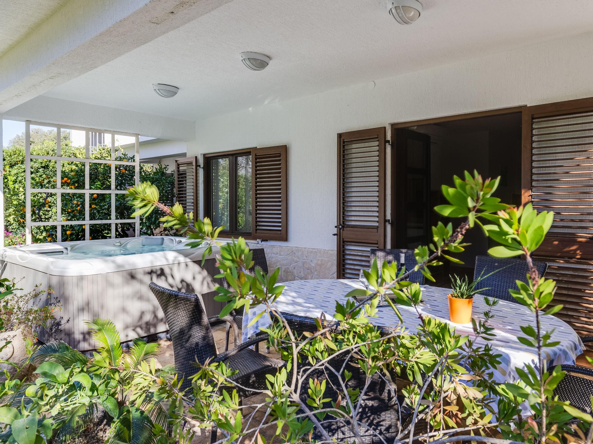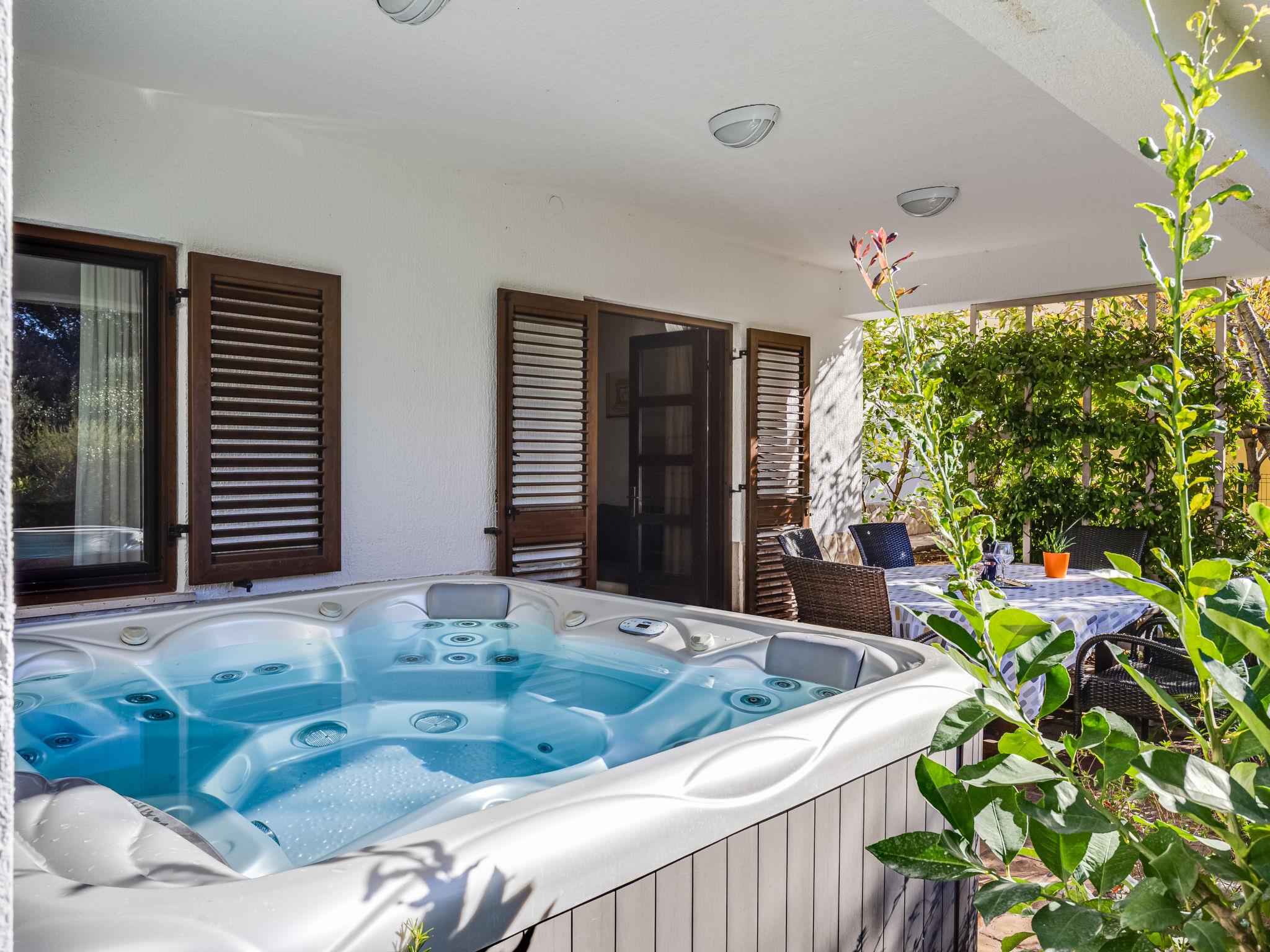 Beautiful, cosy 3-family house "Anica". In the district of Diklo, 6 km from the centre of Zadar, outside the resort, in a quiet, sunny, elevated position in the residential district, 150 m from the sea, 150 m from the beach, in the countryside, south facing position. For shared use: property 300 m2 (fenced), garden with lawn and trees. Private: hot tub, parking at the house on the premises. Shop 400 m, restaurant 450 m, bus stop 400 m, rocky beach 300 m, public bathing area 2.5 km, concrete beach 150 m. Tennis, sports centre 400 m.