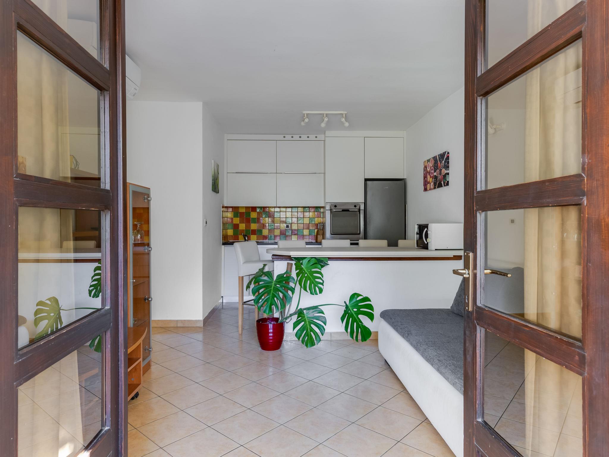 4-room apartment 60 m2, on the ground floor. Beautiful and tasteful furnishings: small living/dining room with satellite TV and air conditioning. Exit to the garden, to the terrace, to the swimming pool. 1 room with 1 bed and 1 french bed (180 cm, length 200 cm), air conditioning. 1 room with 1 french bed (160 cm, length 195 cm), air conditioning. 1 room with 1 bed (90 cm, length 200 cm), air conditioning. Open kitchen (dishwasher, 4 induction hot plates, microwave, freezer). 2 showers/WC. No heating option. Large terrace 20 m2, roofed, south facing position. Terrace furniture, deck chairs. View of the garden. Facilities: washing machine. Internet (WiFi, free). 2198-03-02-03-3