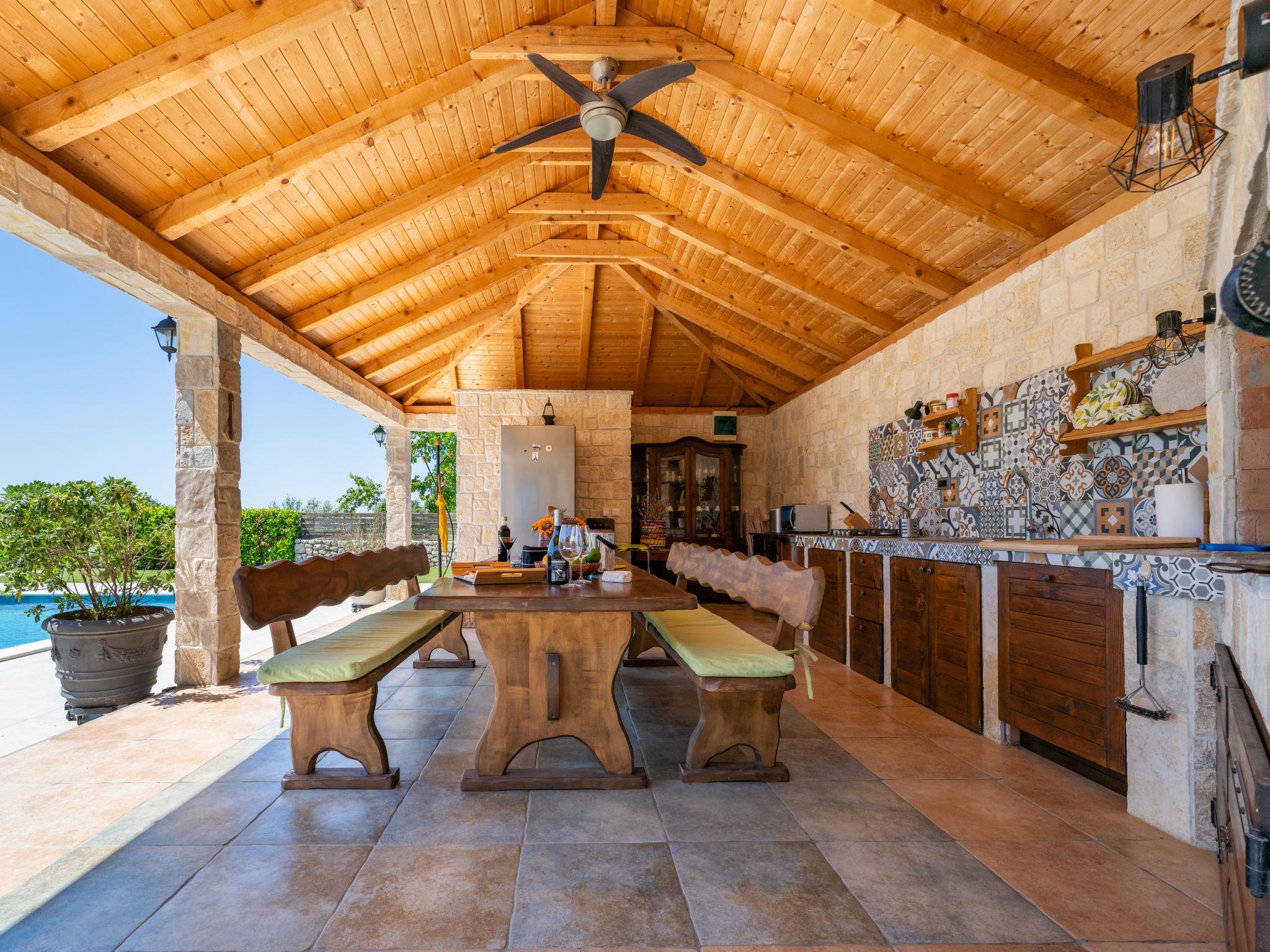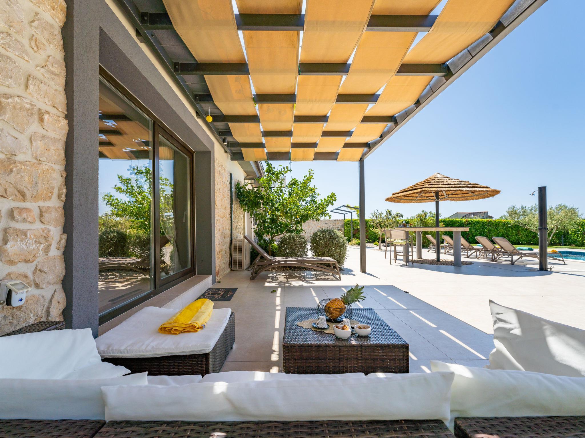 Zemunik Donji 22 km from Zadar: Beautiful single-family house "Villa Tanja". 17 km from the centre of Sukošan, in a sunny position, 17 km from the sea. Private: property 1'500 m2 (fenced), swimming pool (8 x 4 m, depth 140 cm, seasonal availability: 01.May. - 01.Oct.) with internal staircase. Outdoor shower. In the house: internet access, washing machine. Parking (for 2 cars) at the house on the premises. E-charging station. Shop 1 km, restaurant 17 km, bus stop 7.1 km, pebble beach 17 km. Nearby attractions: NP Krka 67 km, NP Paklenica 39 km, Fun park Biograd 32 km. Well-known lakes can easily be reached: Vrana See 33 km. Groups of teenagers on request only. Please note: airfield 12 km from the property.