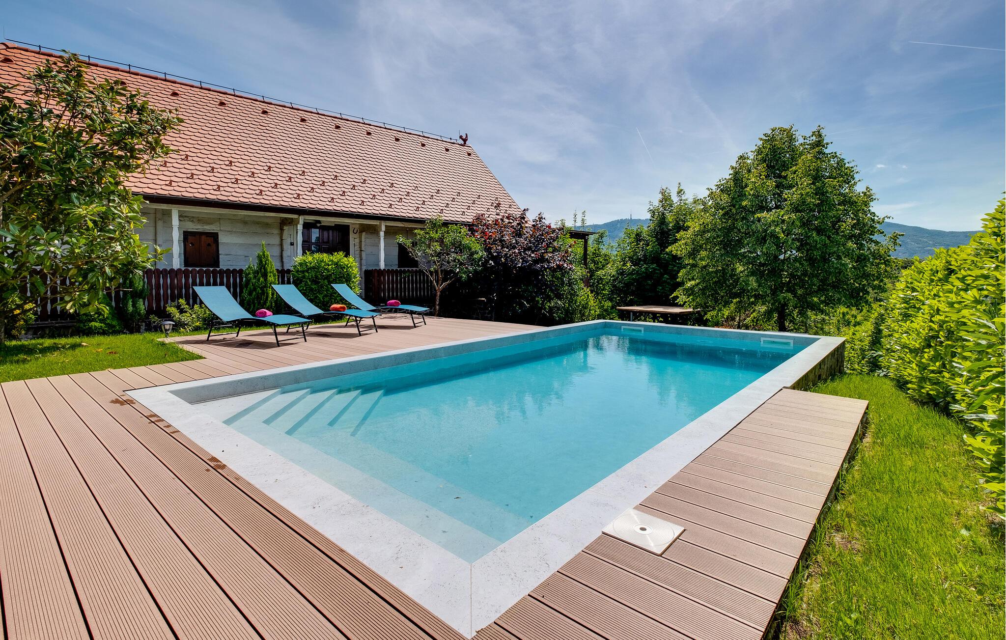 Entfliehen Sie der Großstadt und Ihrem hektischen Alltag und genießen Ihren Familienurlaub in diesem geräumigen Ferienhaus auf einem Hügel mit wunderschönem Panoramablick auf die Landschaft und Sljeme. Im Inneren erwartet Sie der Charme einer Berghütte, rustikale Holzmöbel und passende Gardinen. Freuen Sie sich auch über die Annehmlichkeiten wie eine Sauna oder den Whirlpool im idyllischen Garten. Verbringen Sie im Freien viel Zeit, schauen Ihren Kindern beim Spielen zu, entspannen in der Sonne oder grillen am Abend.