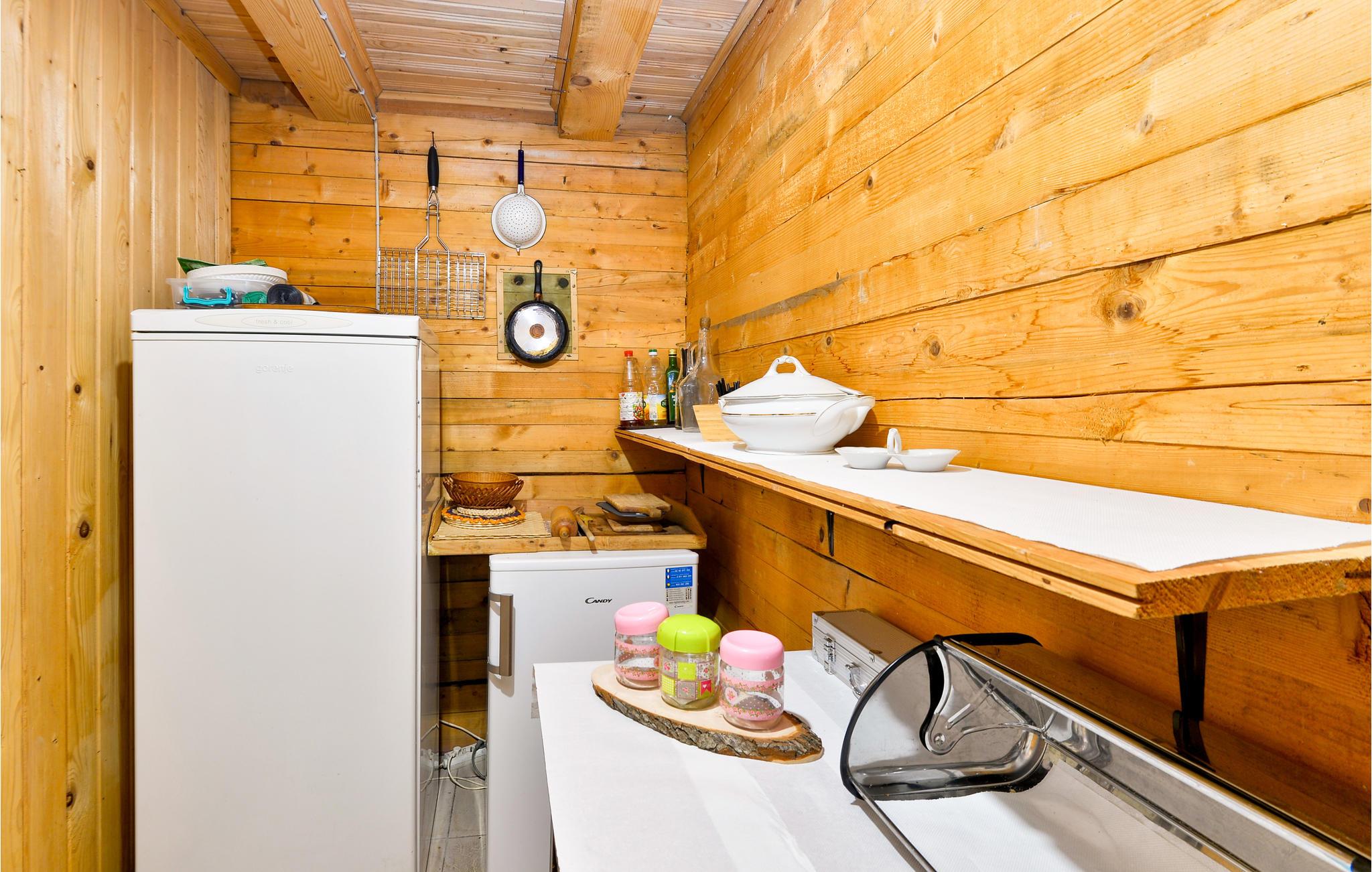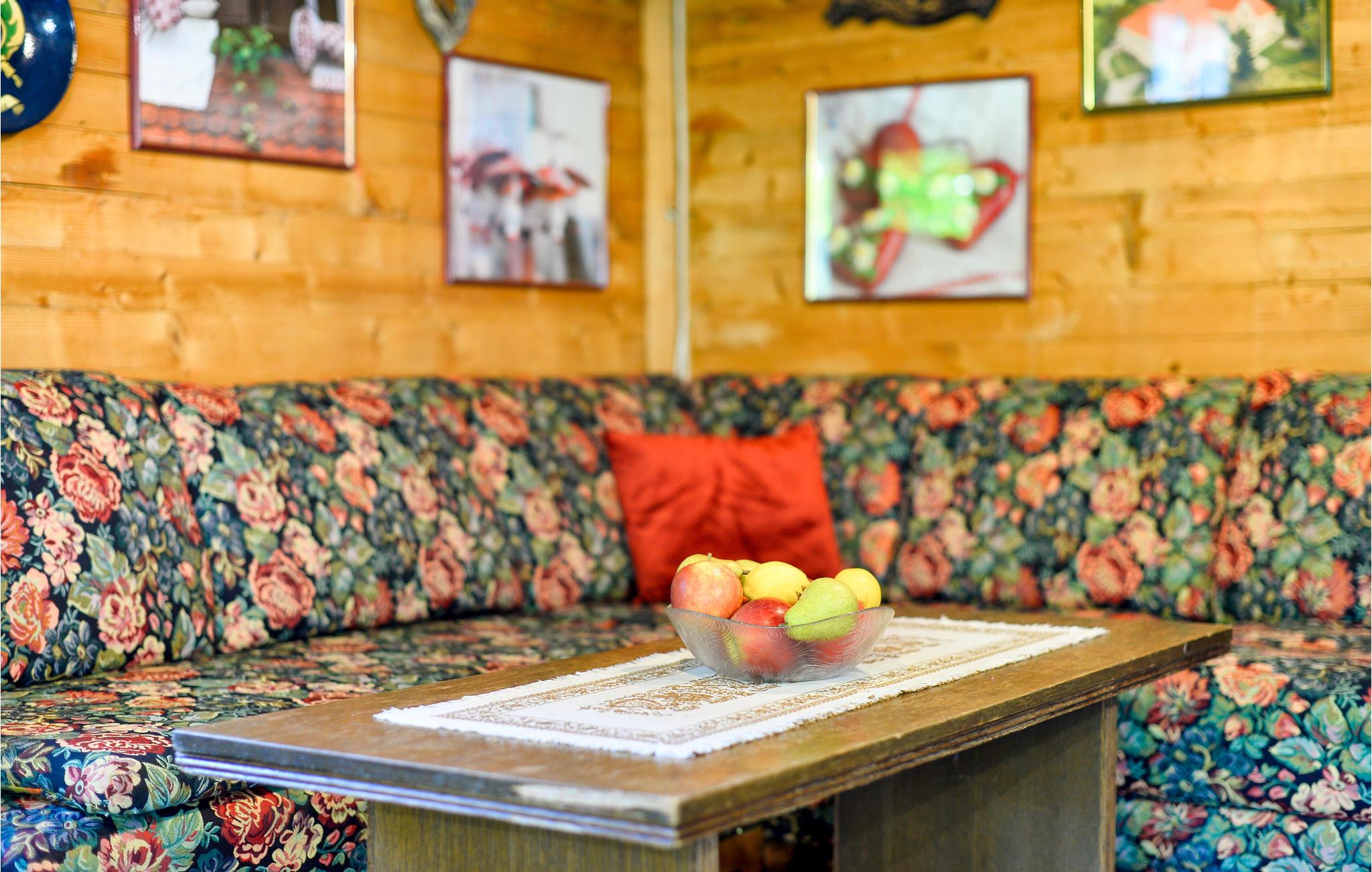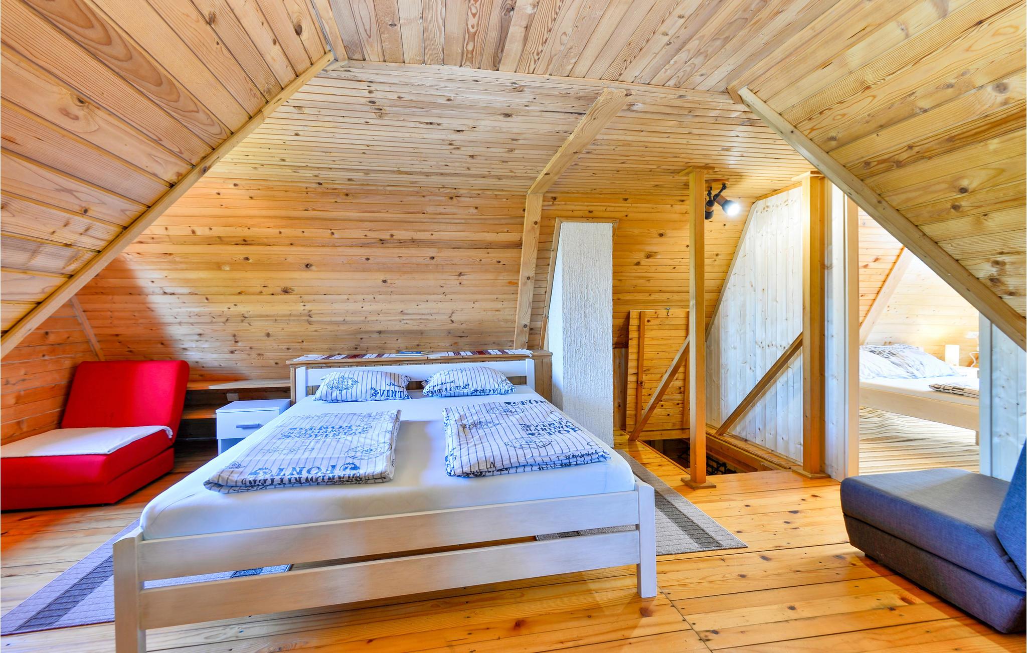 Im Haus sind alle Räume im Berghütten-Stil komplett in Holz gebaut, was eine besonders urige Urlaubsstimmung aufkommen lässt. Ziehen Sie sich in die Stube vor den Kamin zurück, freuen Sie während der Mahlzeiten über den Blick durch die große Fensterfront beim Essbereich.