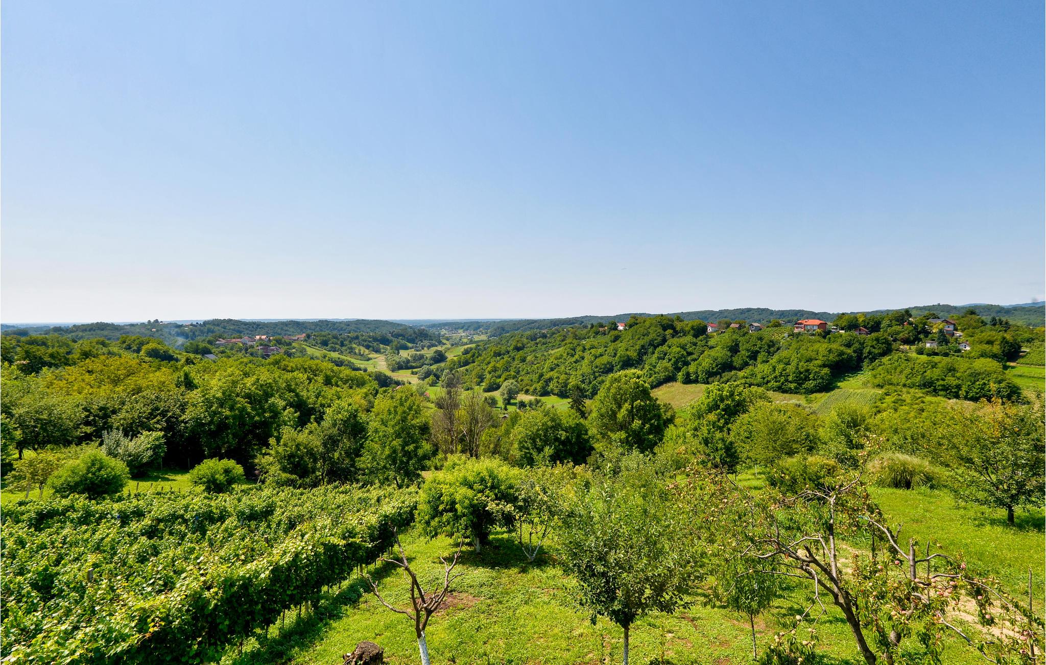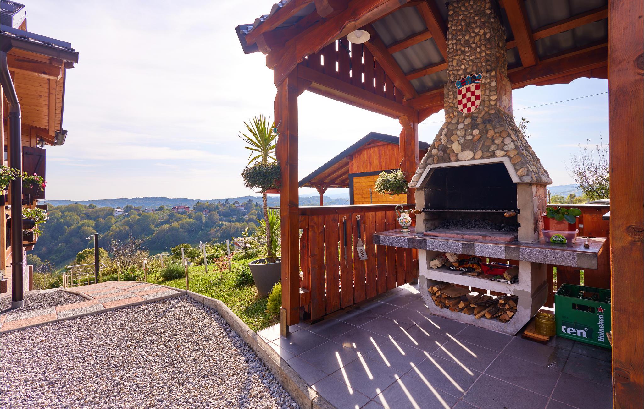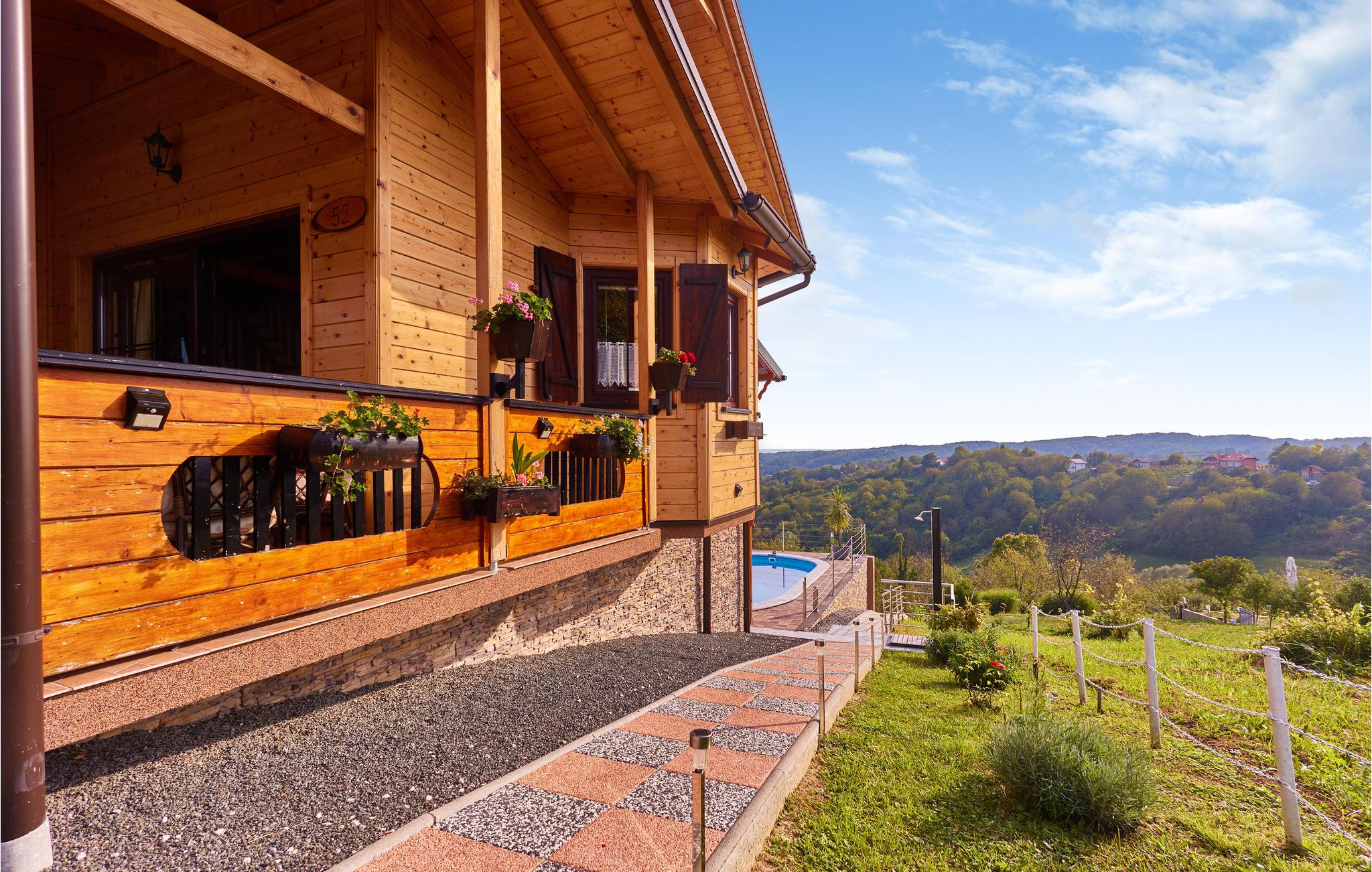In der Nähe von Zagreb, in erhöhter Lage auf einem Hügel, steht dieses einzigartige Ferienhaus aus Holz. Sie wohnen hier umgeben von viel Grün und einer hügeligen Landschaft mit Weinbergen. Diese Umgebung bietet Ihnen eine entspannte Abwechslung vom hektischen Alltag.
