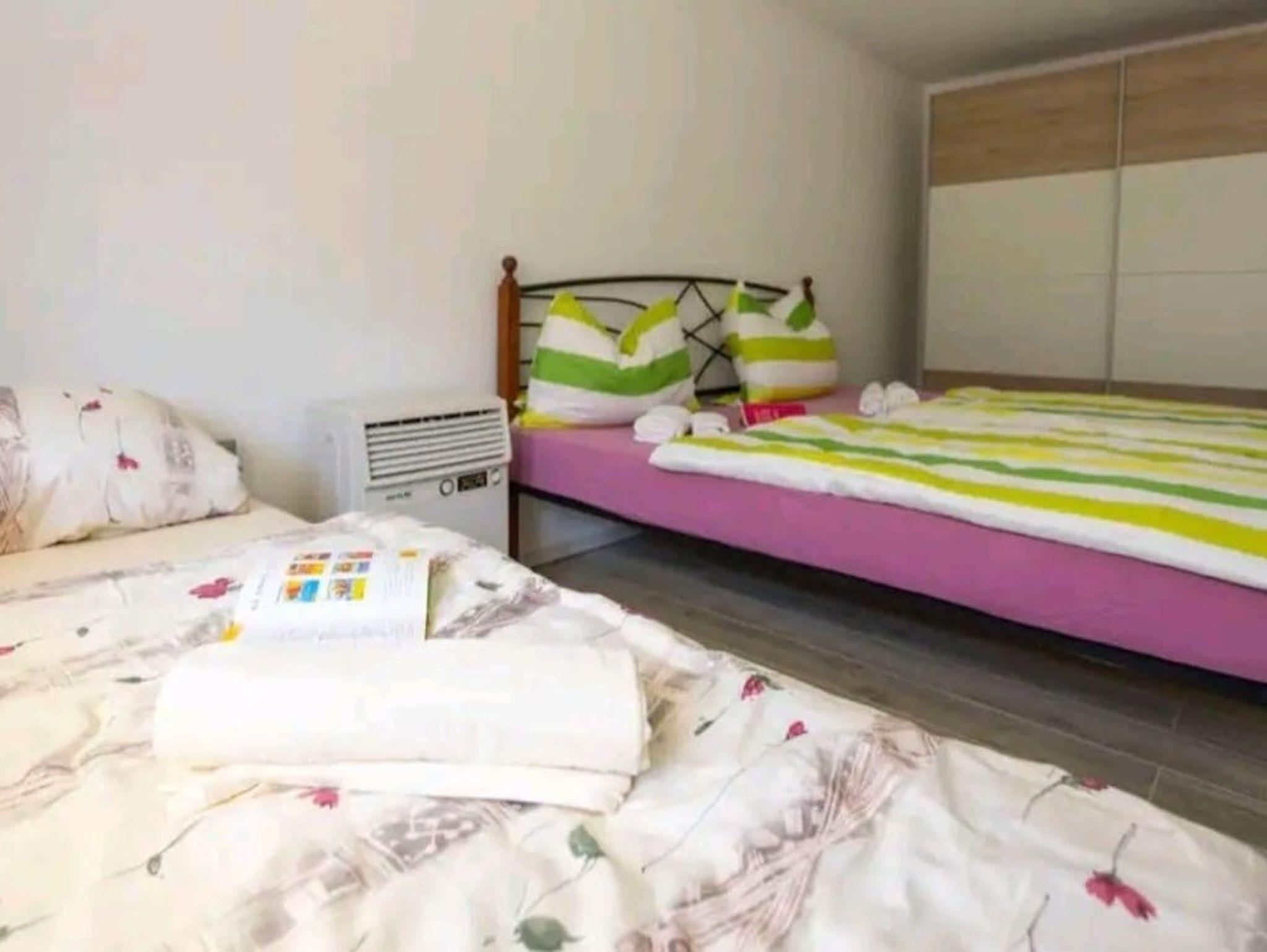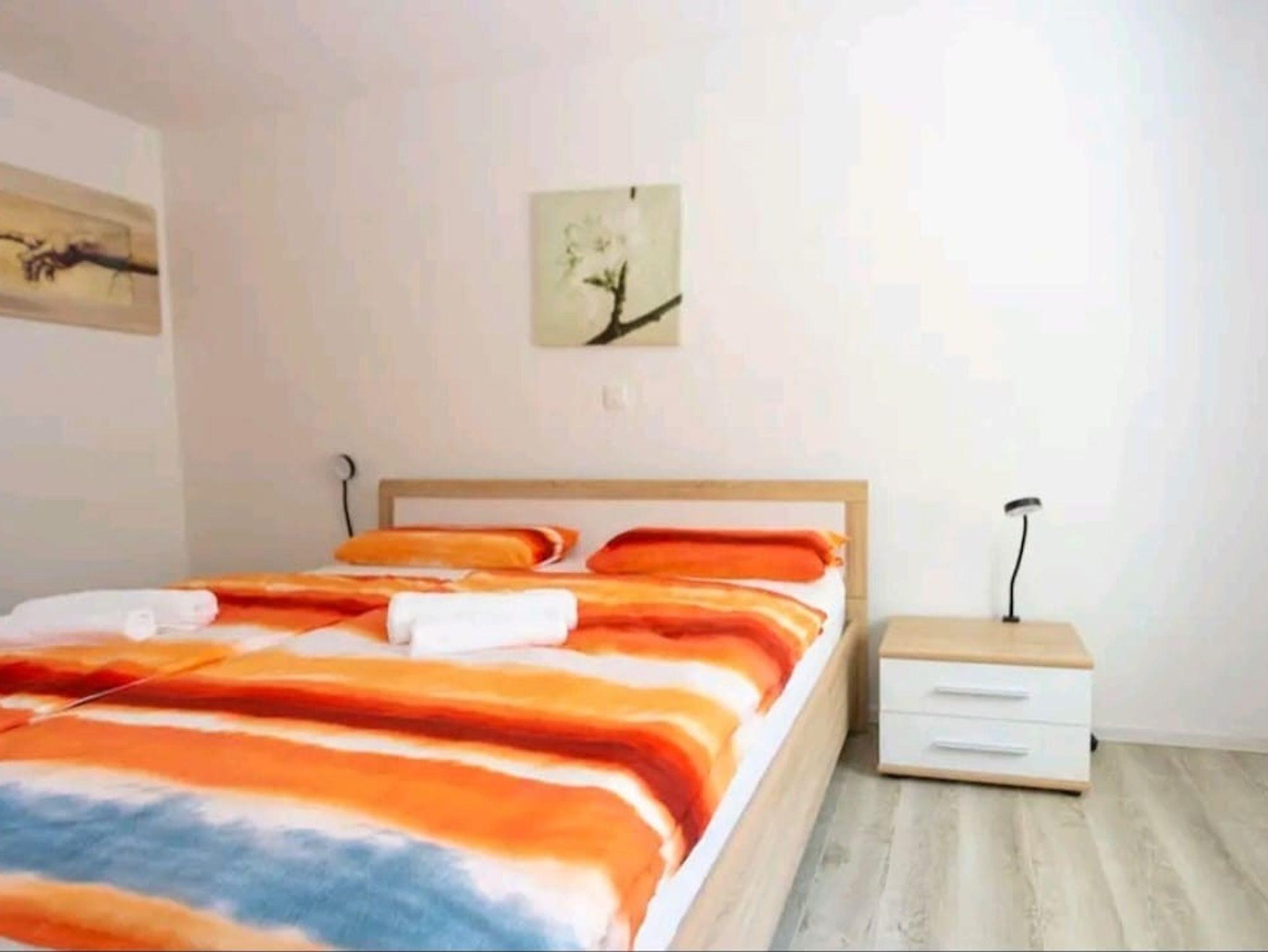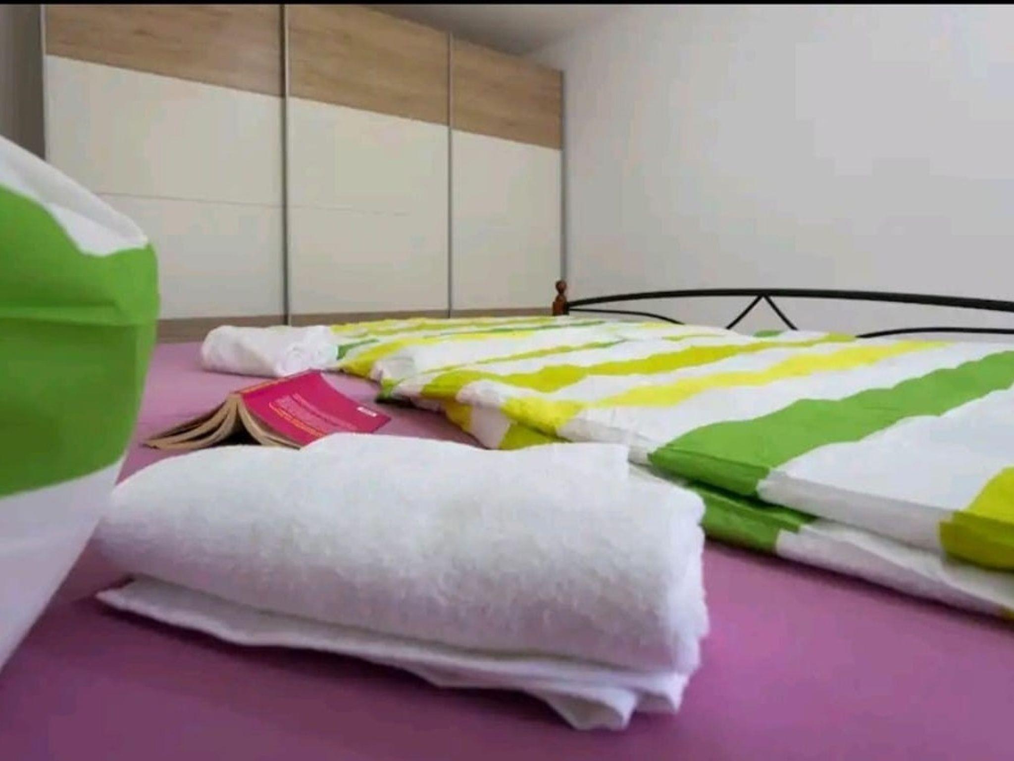 Ferienwohnung bietet Platz für 8 Gäste. Die Betten sind in Schlafzimmern, die es 3 gibt, innerhalb einer Gesamtfläche von 84m2, angeordnet. Die Gäste haben eine eigene Terrasse zur Verfügung, auf der sie in warmen Sommernächten genießen können. Für vollen Genuss und Entspannung gibt es einen privaten Grill für Gäste dieser Unterkunft. IM PREIS INBEGRIFFEN: Kurtaxe, Endreinigung, Klimatisierung, Parkplatz, Internet, Wäschewaschen, Föhn. Die Verfügbarkeit zusätzlicher Dienstleistungen in Ihrem reservierten Termin und die Preise derselben (falls nicht aufgeführt) müssen im Voraus überprüft werden. Zusätzliche Dienstleistungen die in der Zahlungsaufforderung nicht aufgeführt sind werden direkt beim Vermieter bezahlt, angenommen der Gast nutzt auch diese.