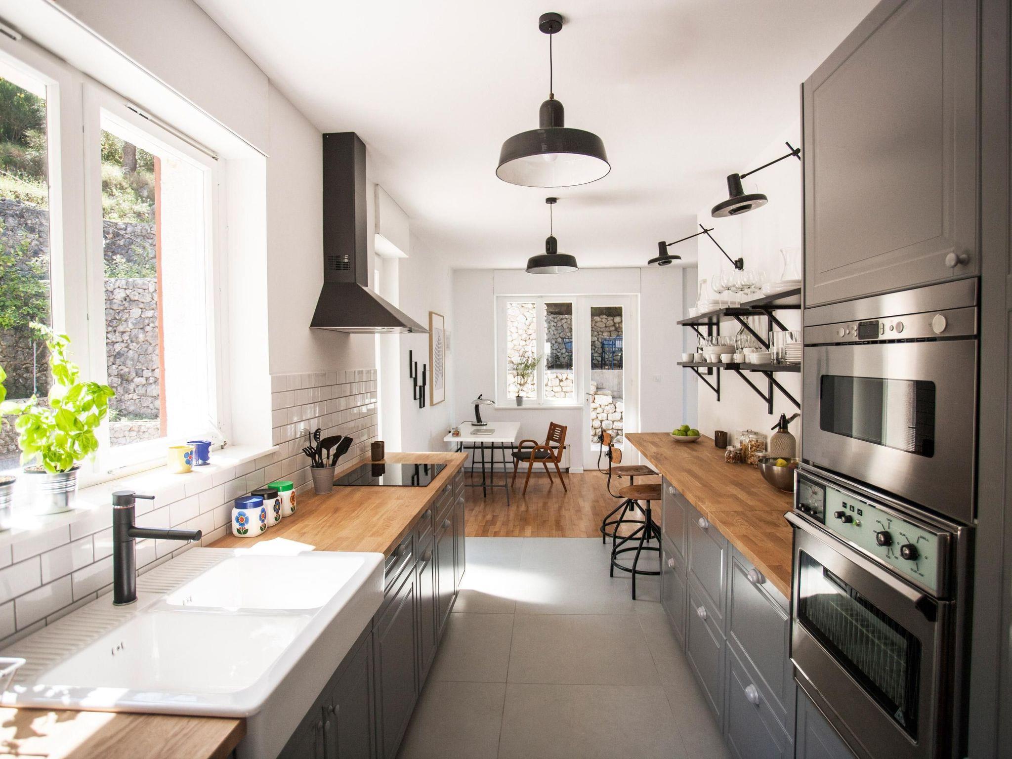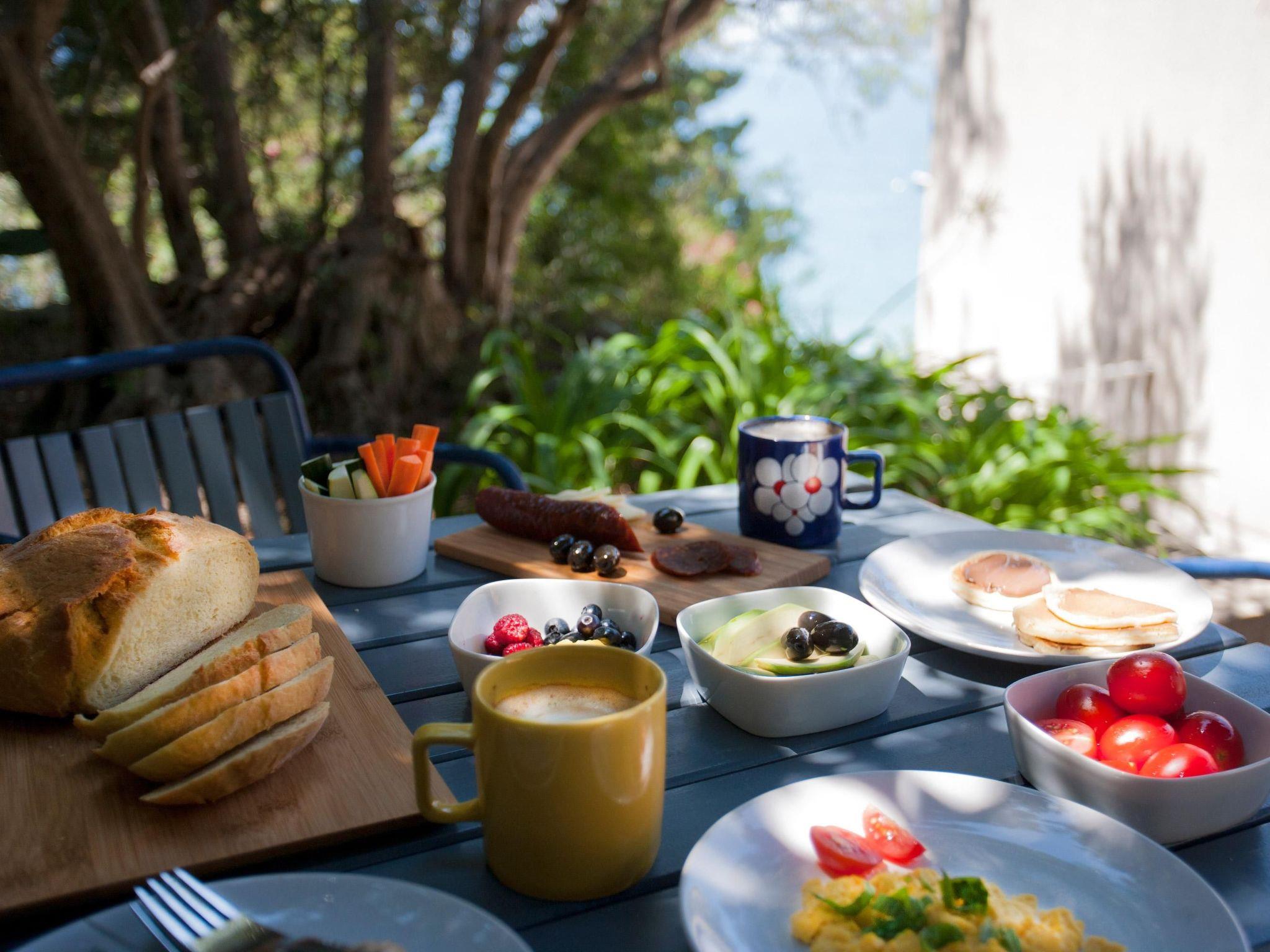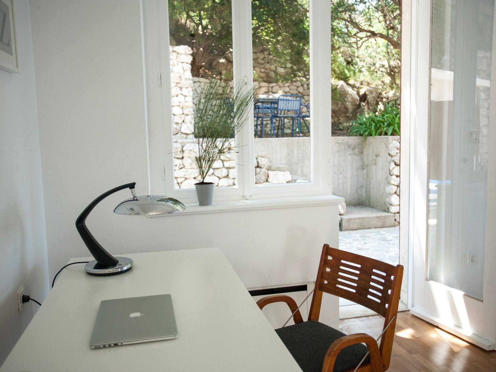 The house is surrounded by terrace gardens on different levels, suitable for dining outdoors and for relaxing. The terraces are surrounded by lavender and oleander bushes, mandarins, citrus fruits, almond and olive trees, as well as Mediterranean herbs such as rosemary, thyme, mint, sage and other plants. There is a separate grill house to the rear with an open fireplace and another private dining space. The whole site is fenced and child-friendly. There is a natural fountain with drinking water from the mountain right next to the site, a minute’s walk away. You access the property through the gate from the pretty coastal path adjoining the private interior courtyard. There is a private garage here for one car, as well as four other parking spaces, free of charge. You can use two bicycles free of charge.