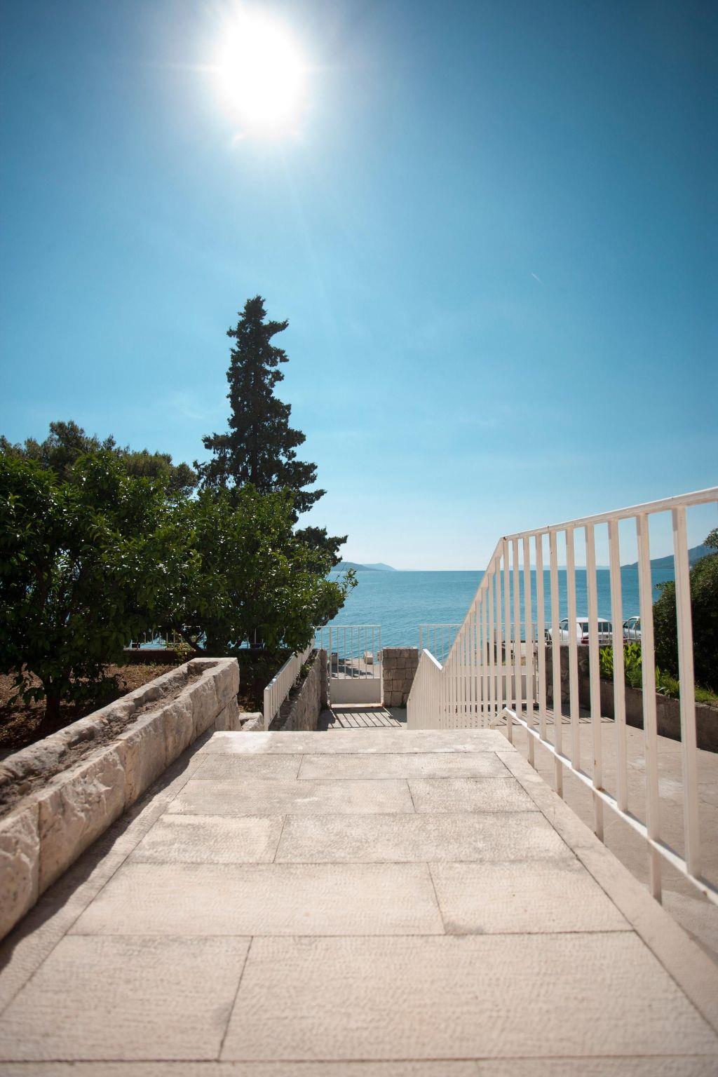 This exclusive holiday villa promises a stay in an elegant and relaxed atmosphere. It is right by the beach and is in a private, Mediterranean garden spanning more than 1000m². The holiday house is at the end of one of the most beautiful beaches, on the mainland in central Dalmatia, in the quiet and charming coastal village of Zaostrog on the Makarska Riviera, halfway between Split and Dubrovnik. The unique location by the thousand-metre-long pebbled beach that runs right pas the villa offers guests a spectacular panoramic view of the Biokovo mountains and a distant view of the Peljesac peninsula and the well-known Croatian islands of Korcula, Hvar and Brac.Exclusive holiday villa with a quality interior, with terrace gardens and a grill house in a Mediterranean garden, right by the long pebbled beach at Zaostrog with a panoramic view of islands and the Biokovo mountains