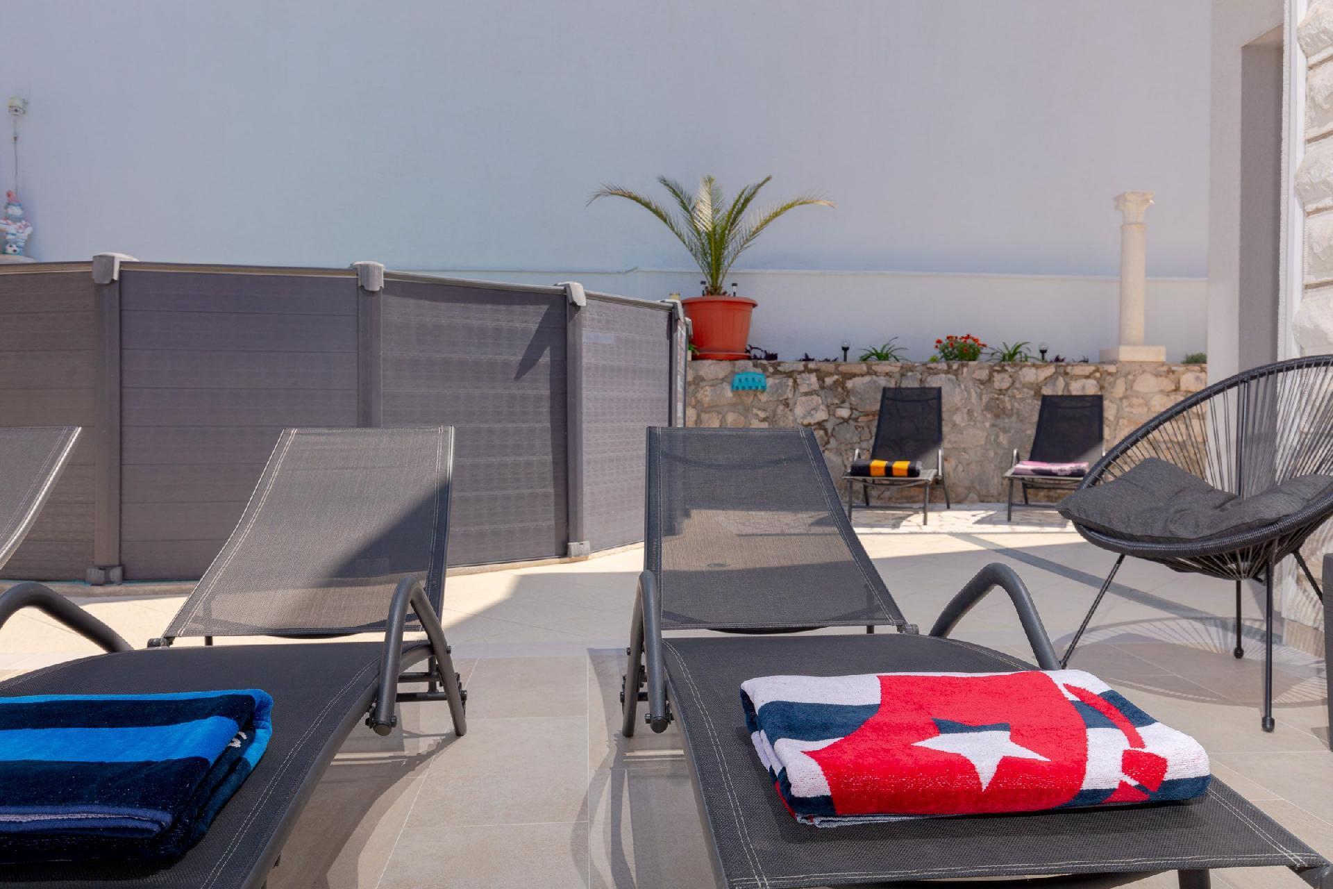 The holiday apartment is in the beautiful Zaton-Stikovica bay on the Dubrovnik Riviera. The old town centre of Dubrovnik is 8km away and its main airport (Cilipi) is 27km away. The balcony with a view of the Elaphiti Islands has enough space for a little dining table. Private parking spaces are provided. The accommodation has a new and modern interior and provides 70m² of living space. It can accommodate four to six people. There are two bedrooms with double beds and a sofa bed for two people in the living room. Satellite TV, free wireless Internet access and air conditioning are available. The kitchen is fully equipped and the bathroom has a shower and a washing machine. Various trips and a shuttle service can be arranged. The owners would like to make your holiday as pleasant as possible and you are welcome to contact them. Come to Zaton-Stikovica and enjoy a quiet and relaxing holiday in this holiday apartment. In the beautiful Stikovica bay there is a beautiful pebbled beach, just 250 metres from the house, and a couple of restaurants where you can enjoy traditional Croatian cuisine. There is a bus stop with frequent connections to Dubrovnik nearby.