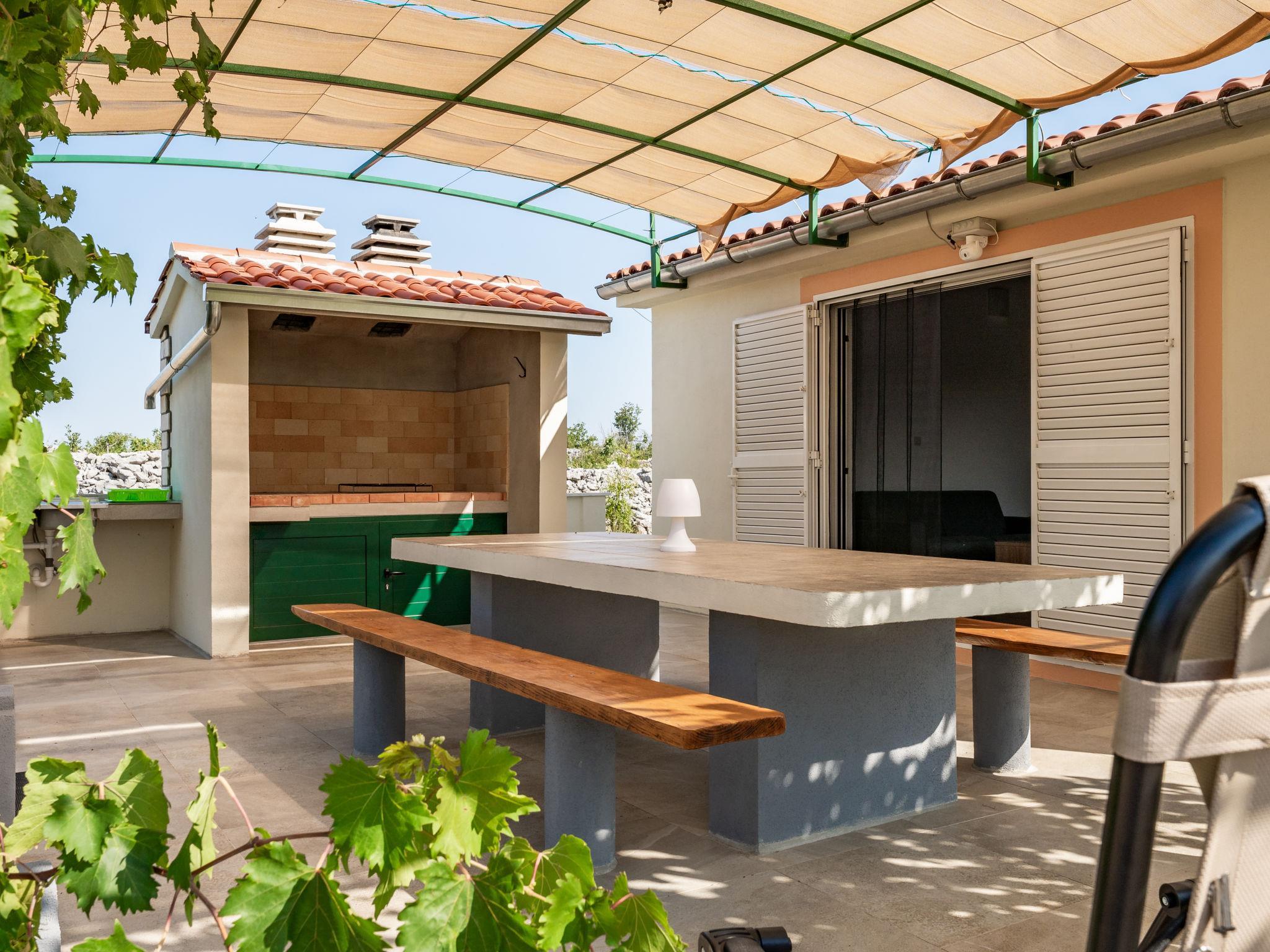Single-family house "Agis", surrounded by fields. 700 m from the centre of Zaton, in a sunny position, 780 m from the sea, 2 km from the beach. Private: property 2'000 m2. Terrace (40 m2), garden furniture, barbecue. In the house: internet access, washing machine. Parking (for 3 cars) at the house on the premises. Shop 750 m, restaurant 800 m, bus stop 600 m, pebble beach 2.5 km, concrete beach 2 km. Marina 2 km. Nearby attractions: NP Krka 20 km.