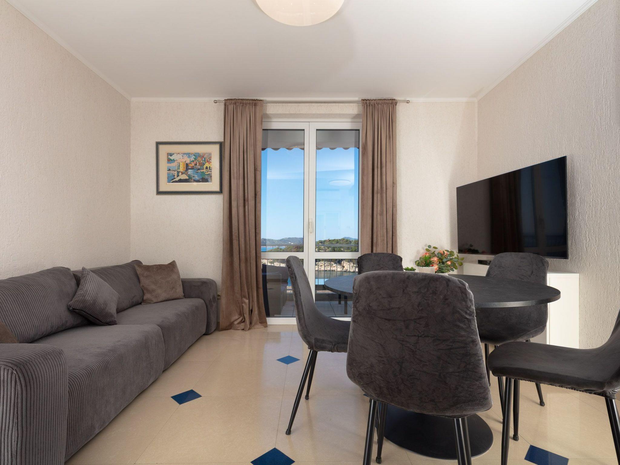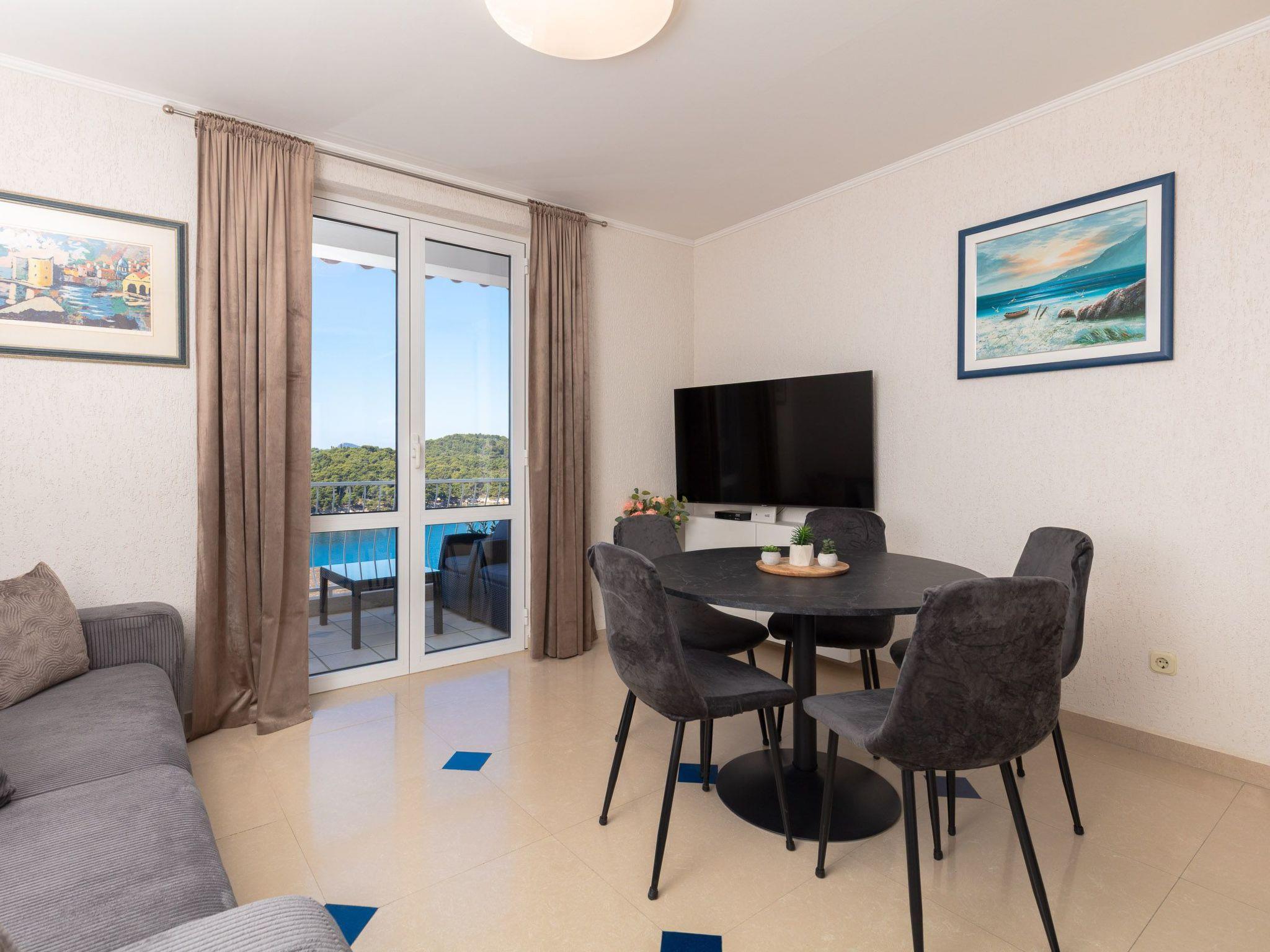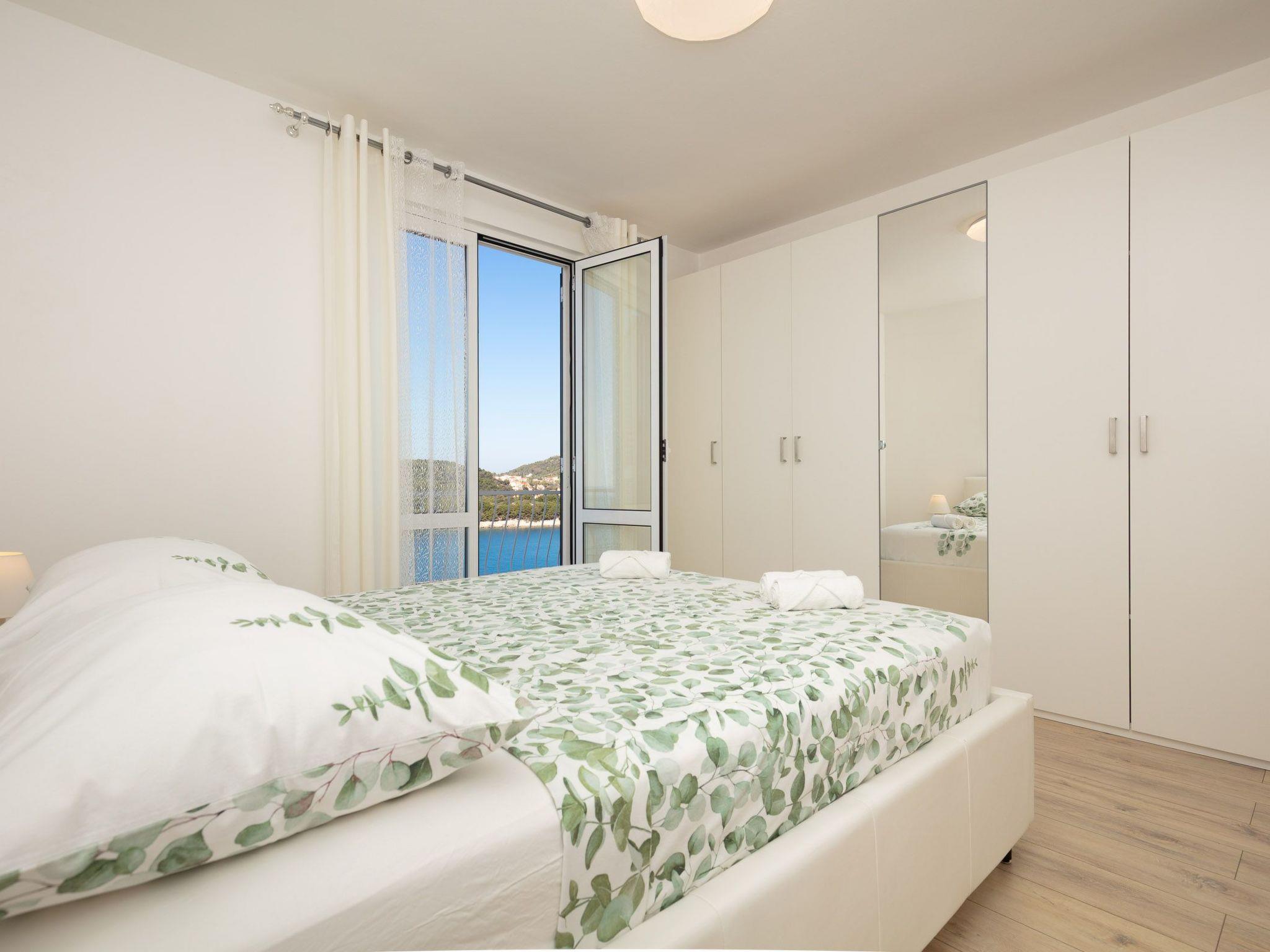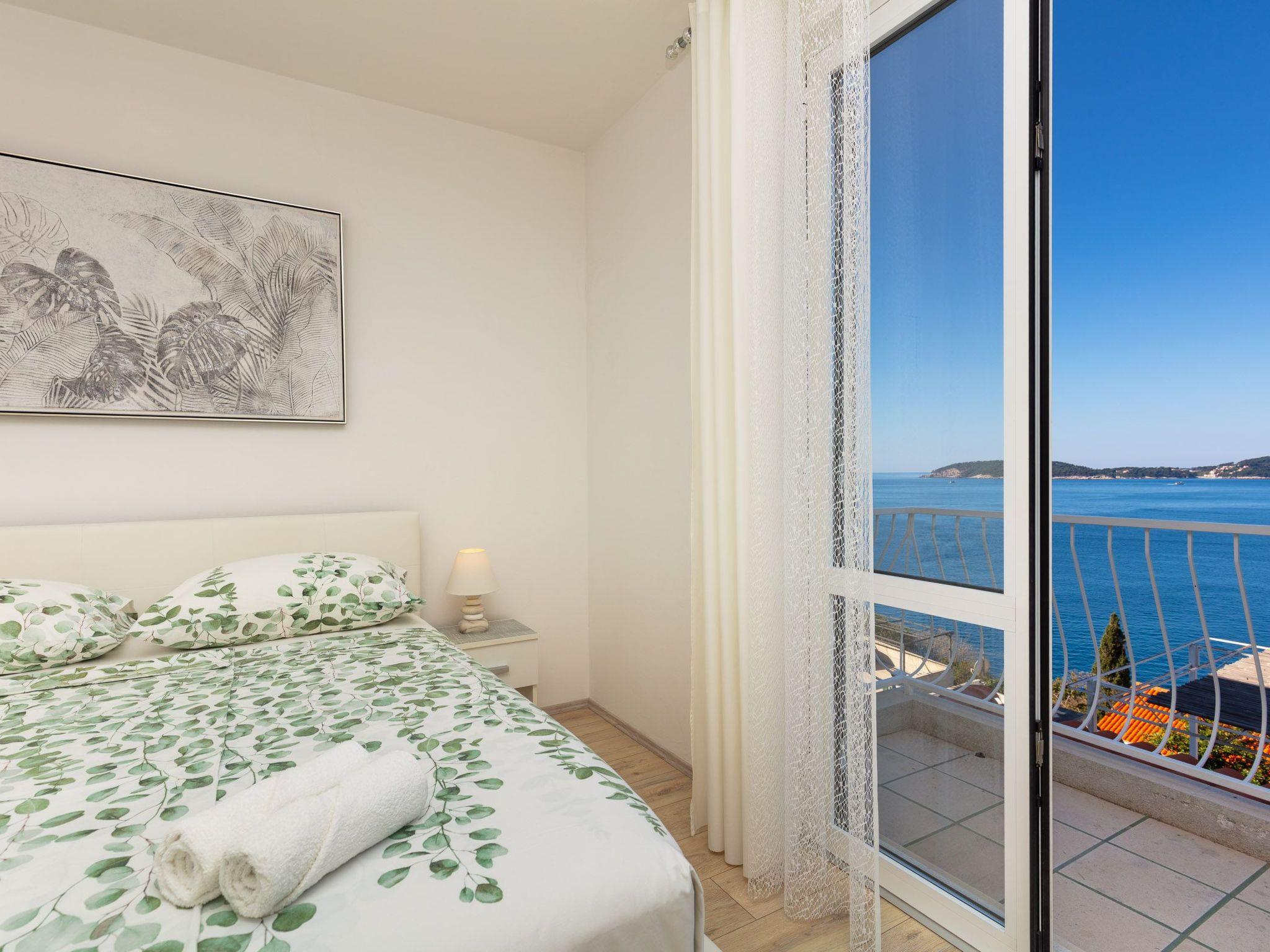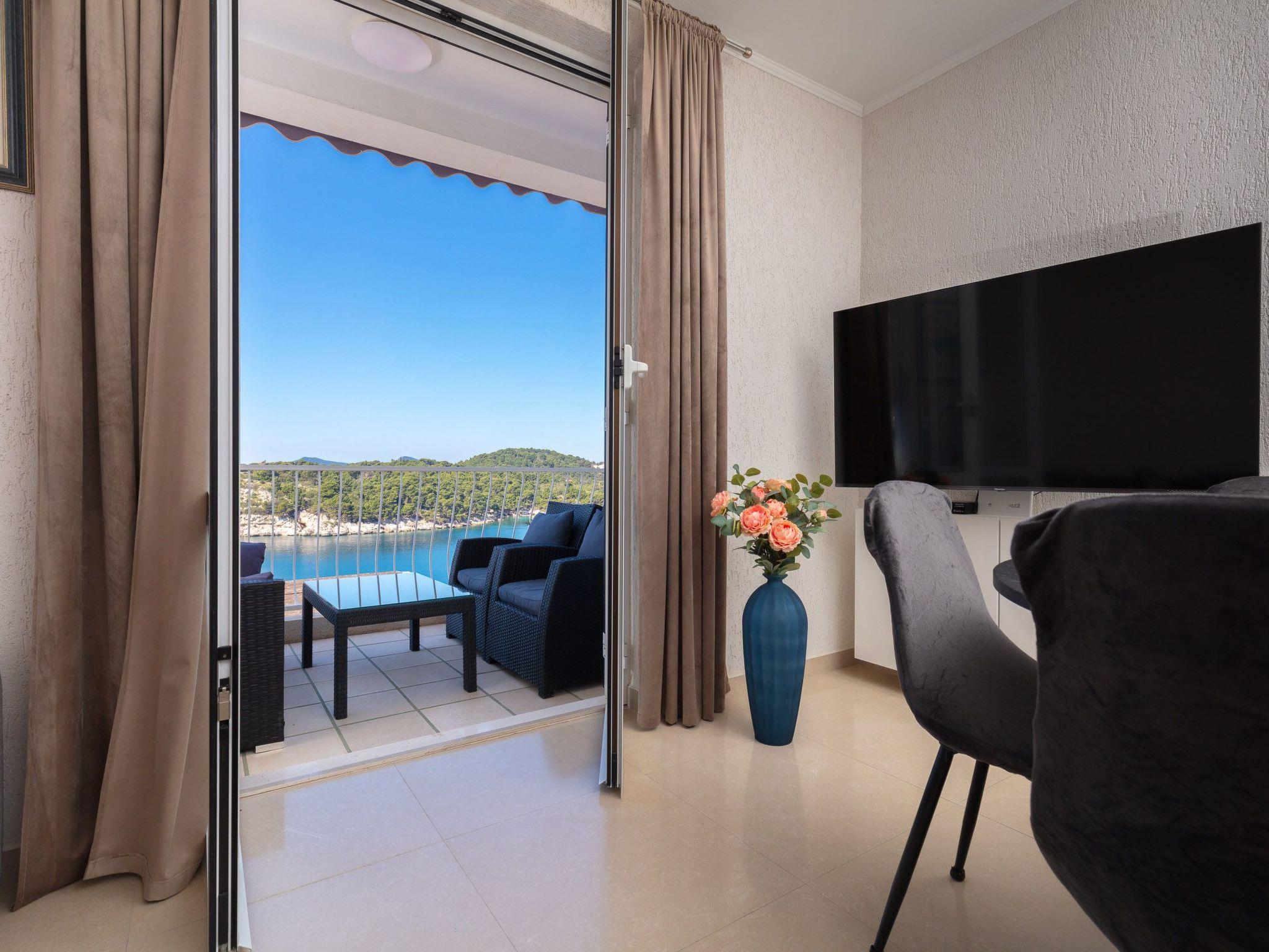 The balcony with a view of the Elaphiti Islands has enough space for a dining table. Shared swimming pool at the terrace. Private parking spaces are provided.