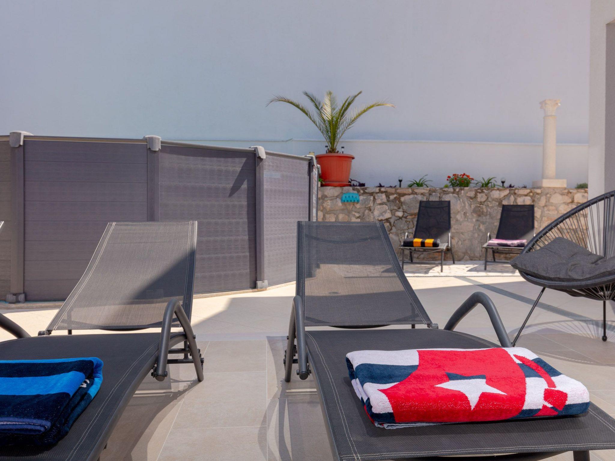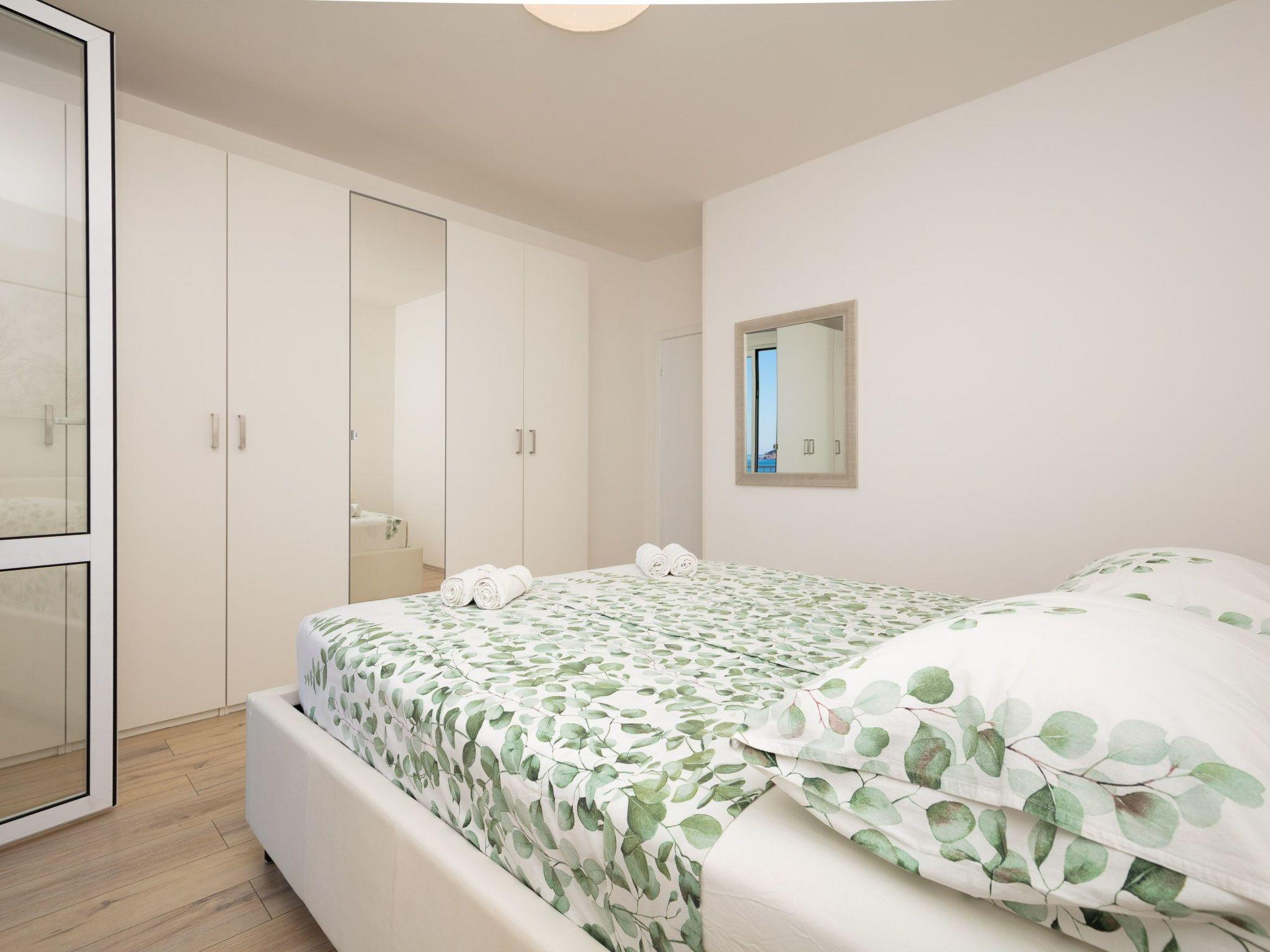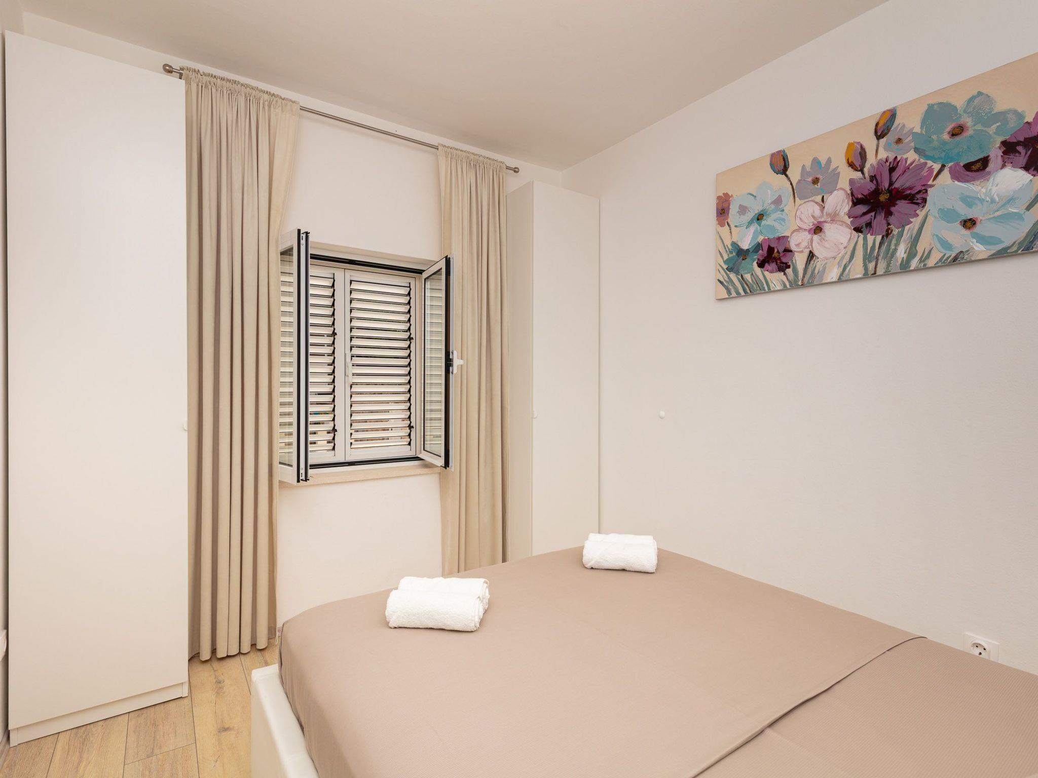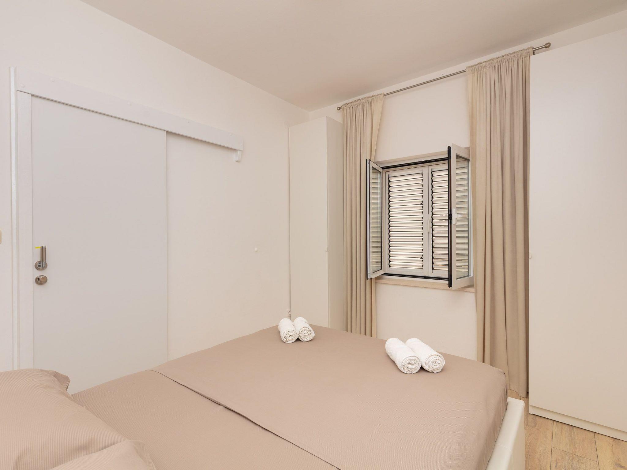 The balcony with a view of the Elaphiti Islands has enough space for a dining table. Shared swimming pool at the terrace. Private parking spaces are provided.