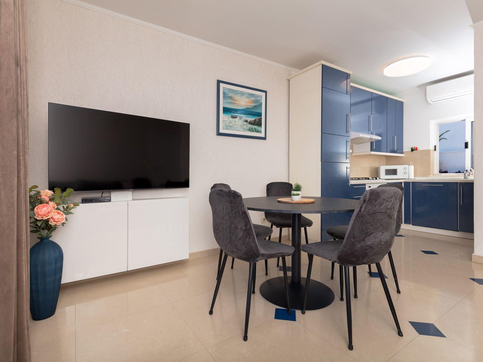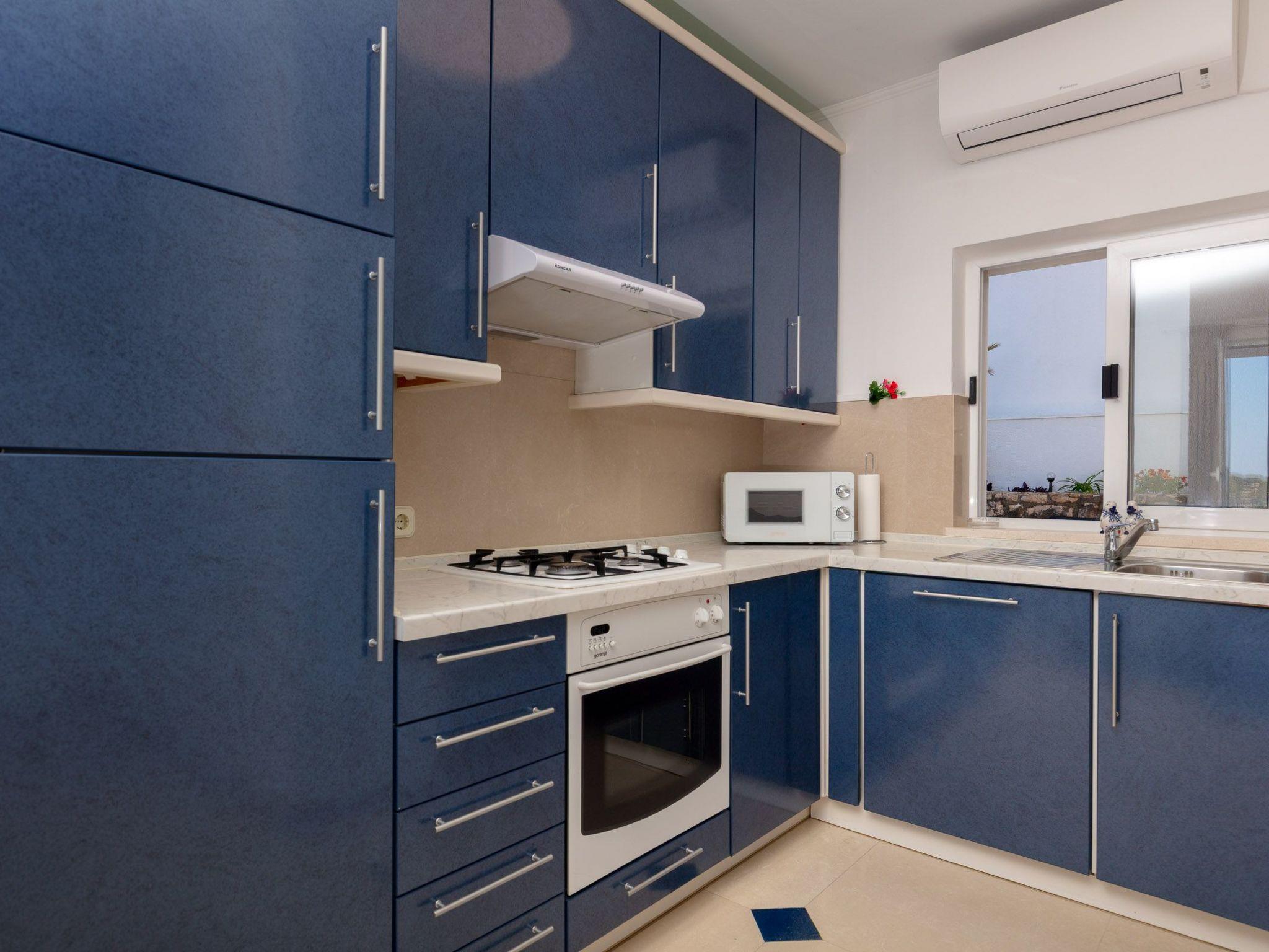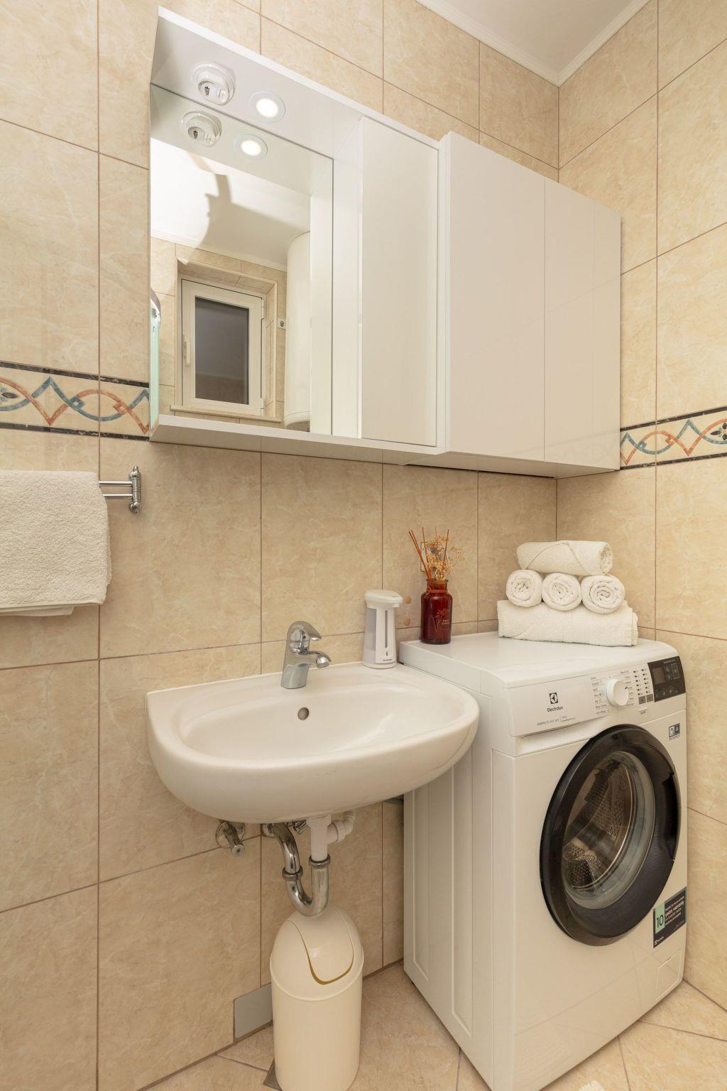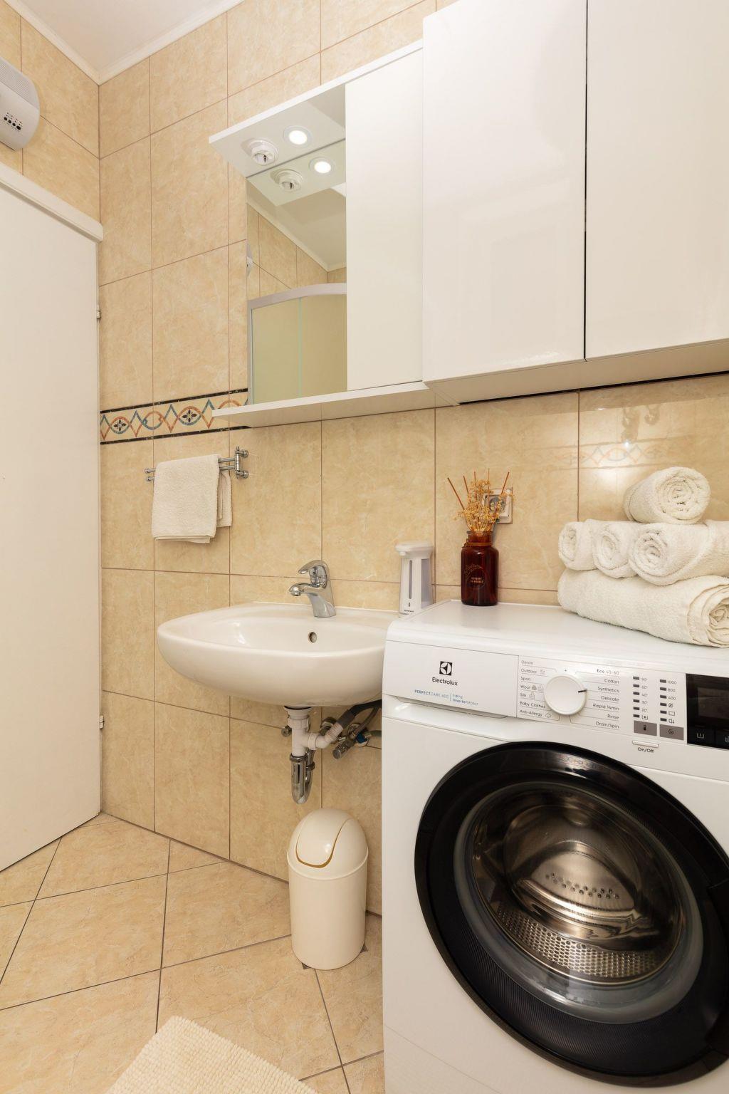 The accommodation has a new and modern interior and provides 70 m² of living space. It can accommodate four people. There are two bedrooms with two single and one double bed. There is a sofa bed in the living room. Satellite TV, free wireless Internet access and air conditioning are available. The kitchen is fully equipped and the bathroom has a shower and a washing machine.
