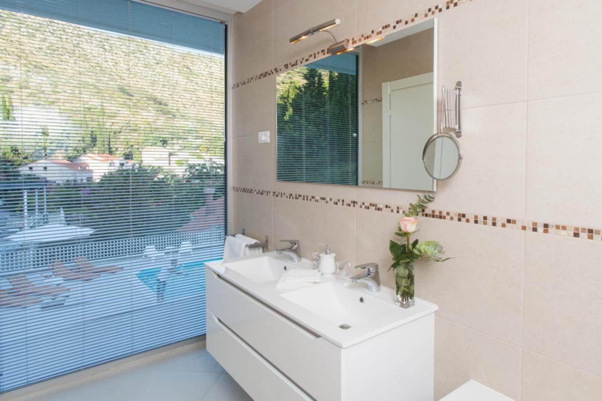 Villa Dupcic is luxurious villa located in Zaton, a quiet little place in suburbs of Dubrovnik with beautiful beaches, picturesque chafes and restaurants, just 15 minutes ride to Dubrovnik's Old Town. The luxury villa will provide you with a lovely furnished terrace with a sea view, as well as private swimming pool, private hot tub and private sauna. Gym facilities are provided. Free parking is available on site. Villa Dupcic features 5 bedrooms, each bedroom with 2 single beds and private bathroom. Two bedrooms have additional sofa bed so this villa is perfect fit for up to 12 people. Living room features flat screen cable TV, DVD player and seating area. Free WiFi and air conditioning are provided. Kitchen is equipped with oven, stove, refrigerator, microwave, kettle, toaster and dining area. Bathrooms feature bathtub or spa bath, hair dryer, toilet paper and soap. Washing machine, dryer, baby cot and ironing facilities are provided. Guests can relax and enjoy in private sauna or private hot tub. Furnished terrace with sea view, sunbeds and private heated pool will be at guest's disposal. Property also features gym facilities. Zaton is quiet little place in suburbs of Dubrovnik with beautiful beaches, picturesque chafes and restaurants. This location is perfect for guests who love to enjoy the sun and the sea, being close to the tourist center, but far enough to avoid the crowds and keep their peace and privacy. Grocery store and bakery can be reached within 200 meters. Dubrovnik main bus station and ferry port, connecting the mainland with various Dalmatian islands, are 15 km away, while Dubrovnik Airport is 34 km away.