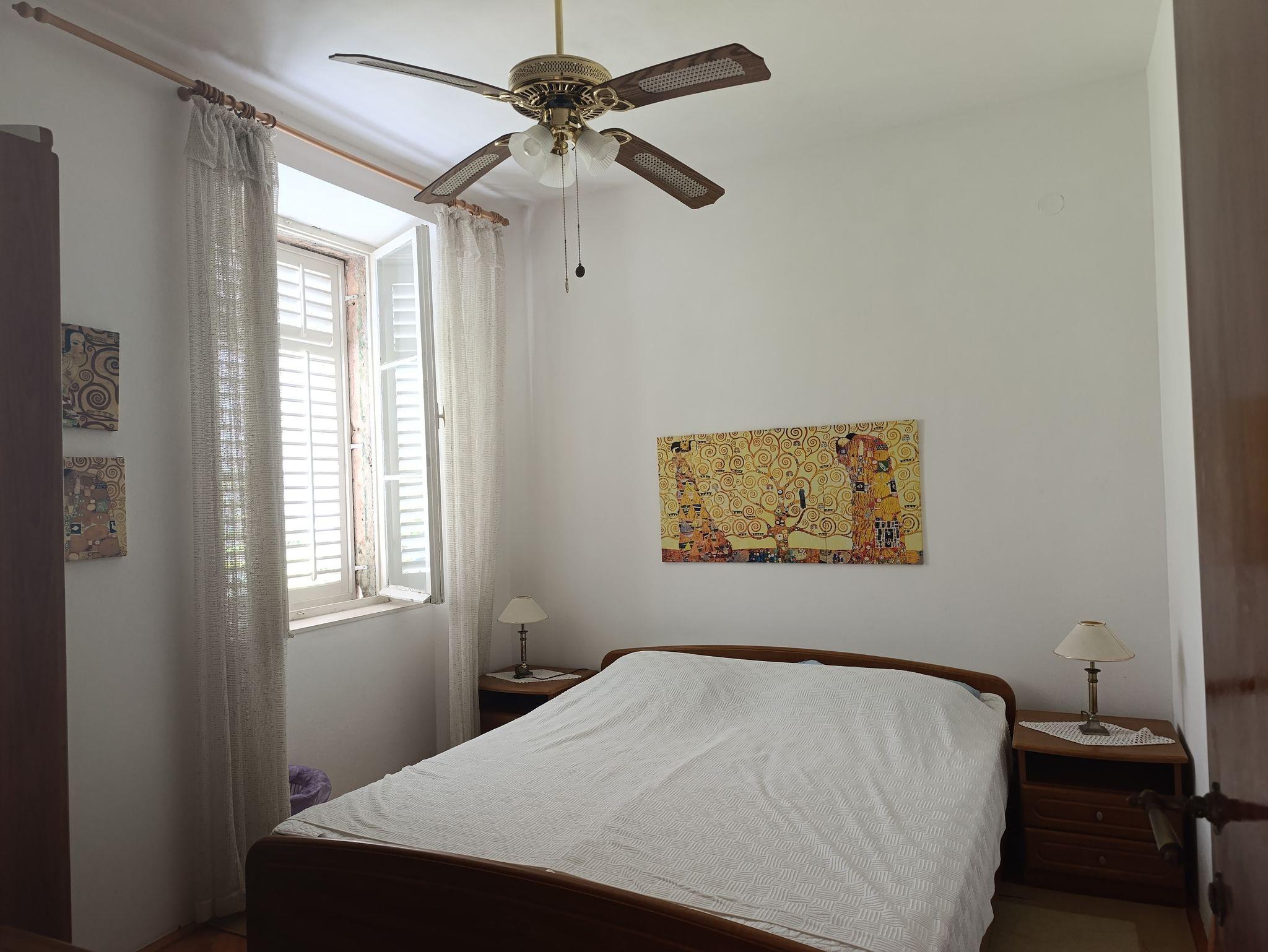 Ferienwohnung bietet Platz für 4 Gäste. Die Betten sind in Schlafzimmern, die es 2 gibt, innerhalb einer Gesamtfläche von 48m2, angeordnet. Die Gäste haben eine eigene Terrasse zur Verfügung, auf der sie in warmen Sommernächten genießen können. Das Apartment bietet Meerblick. Es ist erlaubt, Speisen auf dem Gemeinschafts-Grill vorzubereiten. IM PREIS INBEGRIFFEN: Kurtaxe, Endreinigung, Klimatisierung, Parkplatz, Internet, Wäschewaschen, Bootsanlegeplatz, Kinderbett, Bügeleisen, Bügelbrett, Föhn, Sonnenschirm, Liegestühle. VERBINDLICHE ZUSÄTZLICHE KOSTEN: Aufzahlung für Kurzaufenthalte (prozentualer Zuschlag pro Nächtigungsanzahl: 30% - 1, 20% - 2, 10% - 3). Die Verfügbarkeit zusätzlicher Dienstleistungen in Ihrem reservierten Termin und die Preise derselben (falls nicht aufgeführt) müssen im Voraus überprüft werden. Zusätzliche Dienstleistungen die in der Zahlungsaufforderung nicht aufgeführt sind werden direkt beim Vermieter bezahlt, angenommen der Gast nutzt auch diese.