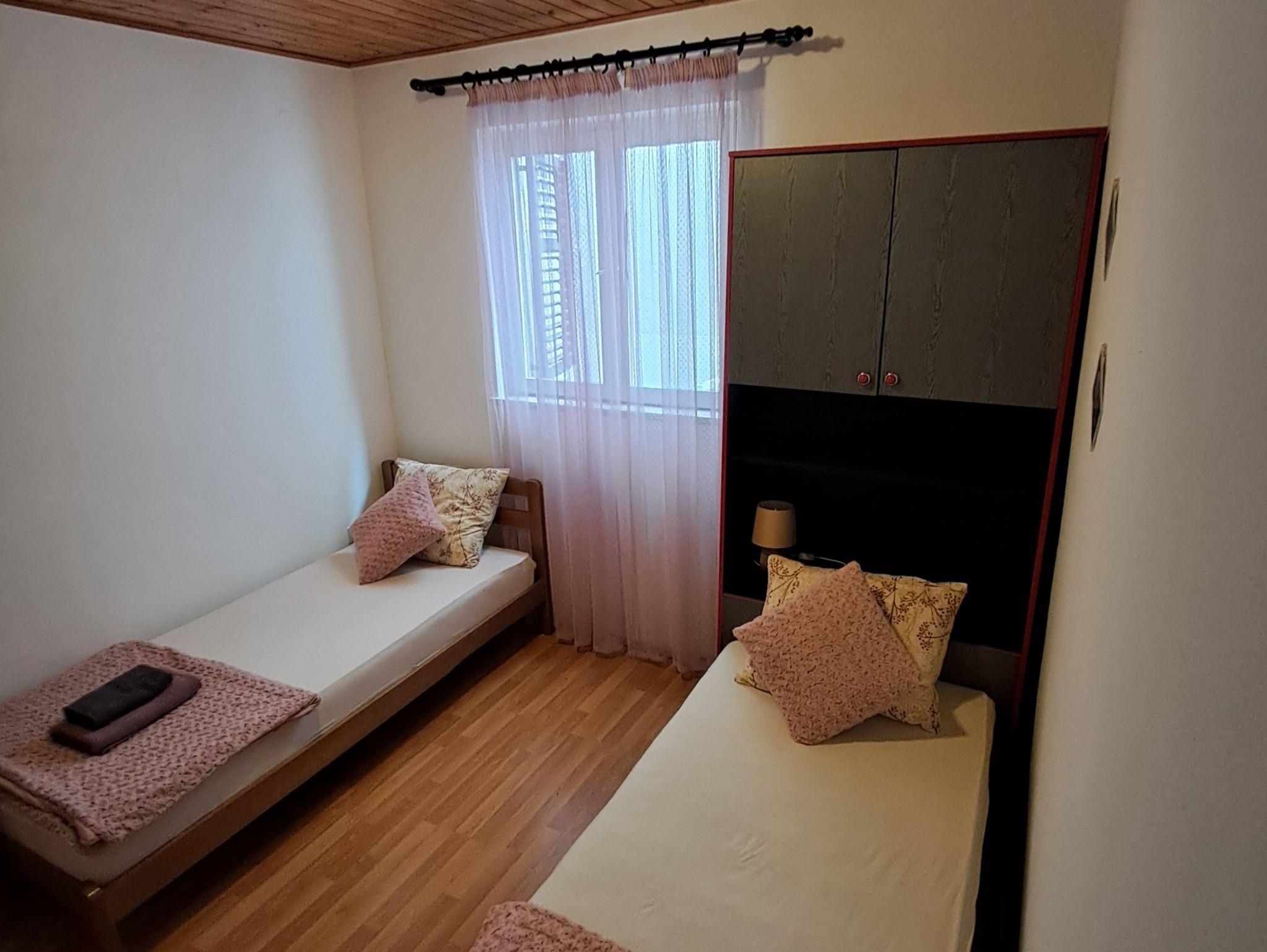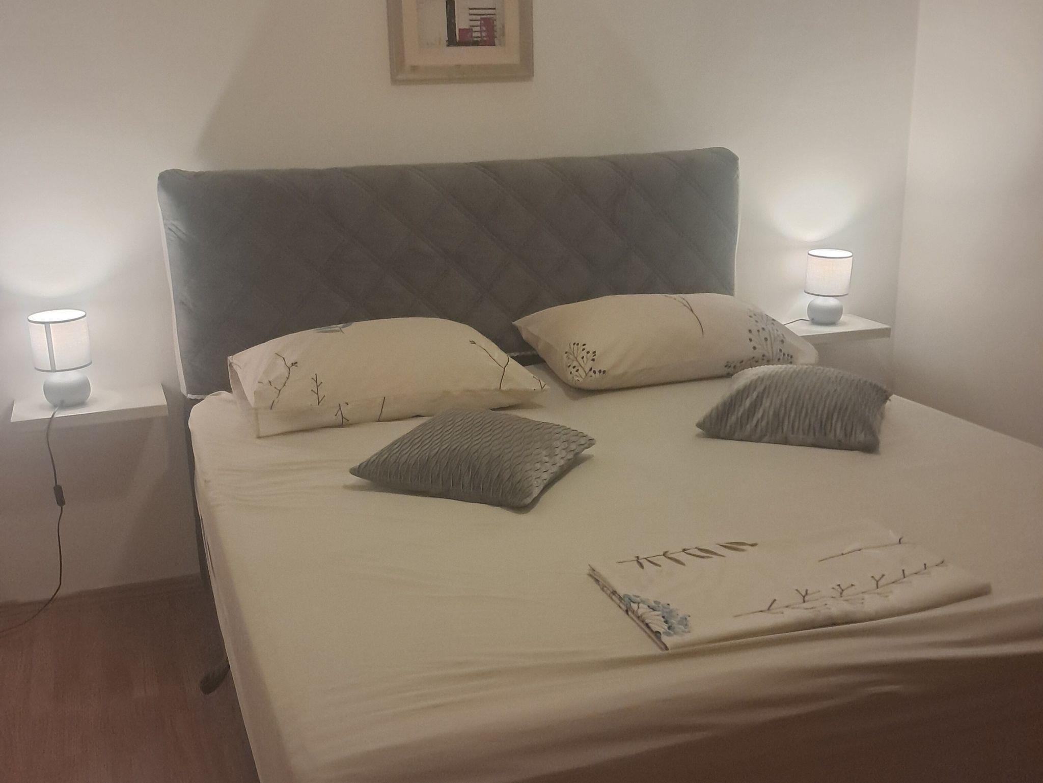 Ferienwohnung bietet Platz für 6 Gäste. Die Betten sind in Schlafzimmern, die es 3 gibt, innerhalb einer Gesamtfläche von 74m2, angeordnet. Die Gäste haben eine eigene Terrasse zur Verfügung, auf der sie in warmen Sommernächten genießen können. Es ist erlaubt, Speisen auf dem Gemeinschafts-Grill vorzubereiten. In der Unterkunftseinheit besteht die Möglichkeit des Mitbringens von Haustieren, und die Dienstleistung ist im Preis der Unterkunft enthalten. IM PREIS INBEGRIFFEN: Kurtaxe, Endreinigung, Klimatisierung, Parkplatz, Internet, Haustiere, Kinderbett, Bügeleisen, Bügelbrett, Föhn. VERBINDLICHE ZUSÄTZLICHE KOSTEN: Aufzahlung für Kurzaufenthalte (prozentualer Zuschlag pro Nächtigungsanzahl: 30% - 1, 20% - 2, 10% - 3). Die Verfügbarkeit zusätzlicher Dienstleistungen in Ihrem reservierten Termin und die Preise derselben (falls nicht aufgeführt) müssen im Voraus überprüft werden. Zusätzliche Dienstleistungen die in der Zahlungsaufforderung nicht aufgeführt sind werden direkt beim Vermieter bezahlt, angenommen der Gast nutzt auch diese.