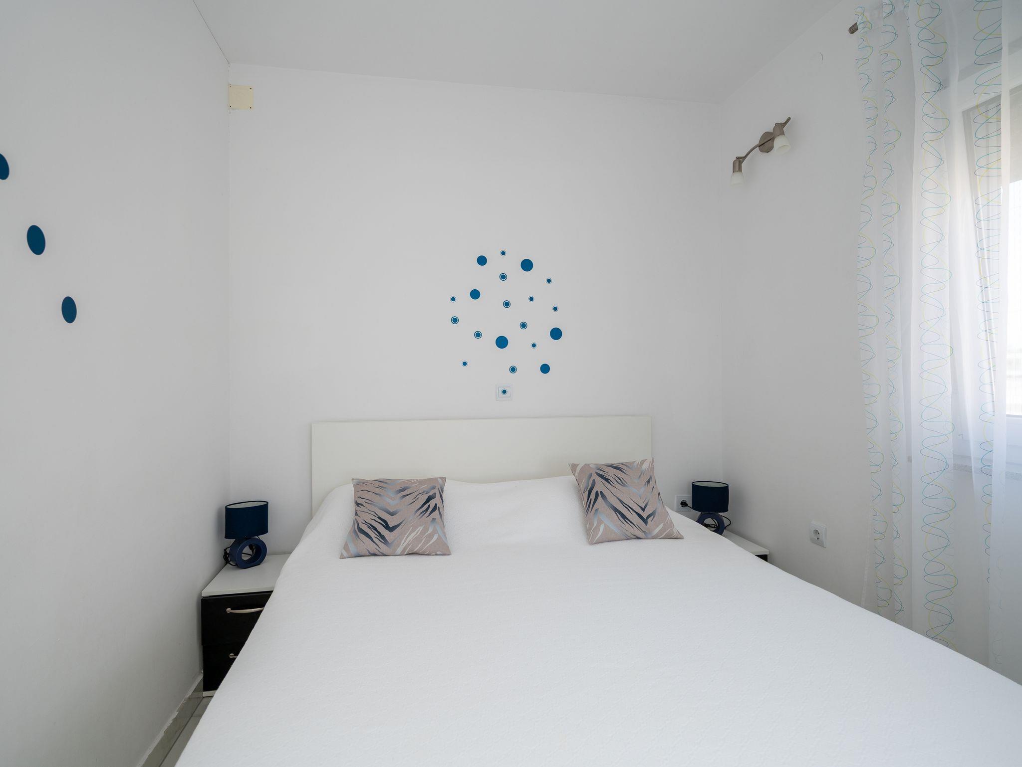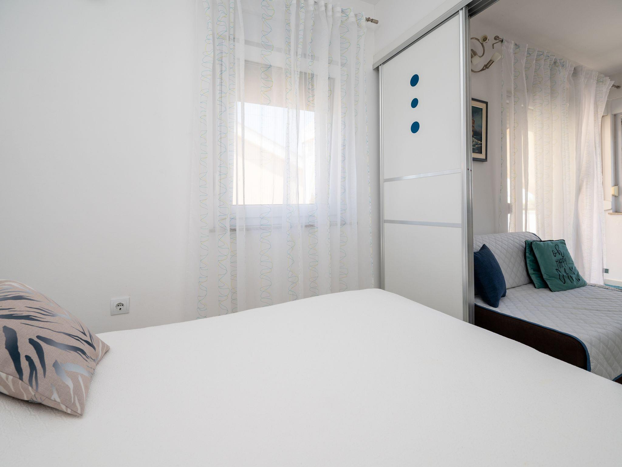 Ferienwohnung bietet Platz für 4 Gäste. Die Betten sind in Schlafzimmern, die es 2 gibt, und in Wohnzimmer, innerhalb einer Gesamtfläche von 37m2, angeordnet. Die Gäste haben eine eigene Terrasse zur Verfügung, auf der sie in warmen Sommernächten genießen können. Es ist erlaubt, Speisen auf dem Gemeinschafts-Grill vorzubereiten. IM PREIS INBEGRIFFEN: Kurtaxe, Endreinigung, Klimatisierung, Parkplatz, Internet, Kinderbett, Bügeleisen, Bügelbrett, Föhn. Die Verfügbarkeit zusätzlicher Dienstleistungen in Ihrem reservierten Termin und die Preise derselben (falls nicht aufgeführt) müssen im Voraus überprüft werden. Zusätzliche Dienstleistungen die in der Zahlungsaufforderung nicht aufgeführt sind werden direkt beim Vermieter bezahlt, angenommen der Gast nutzt auch diese.