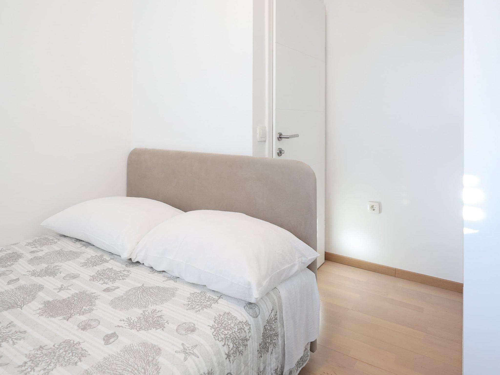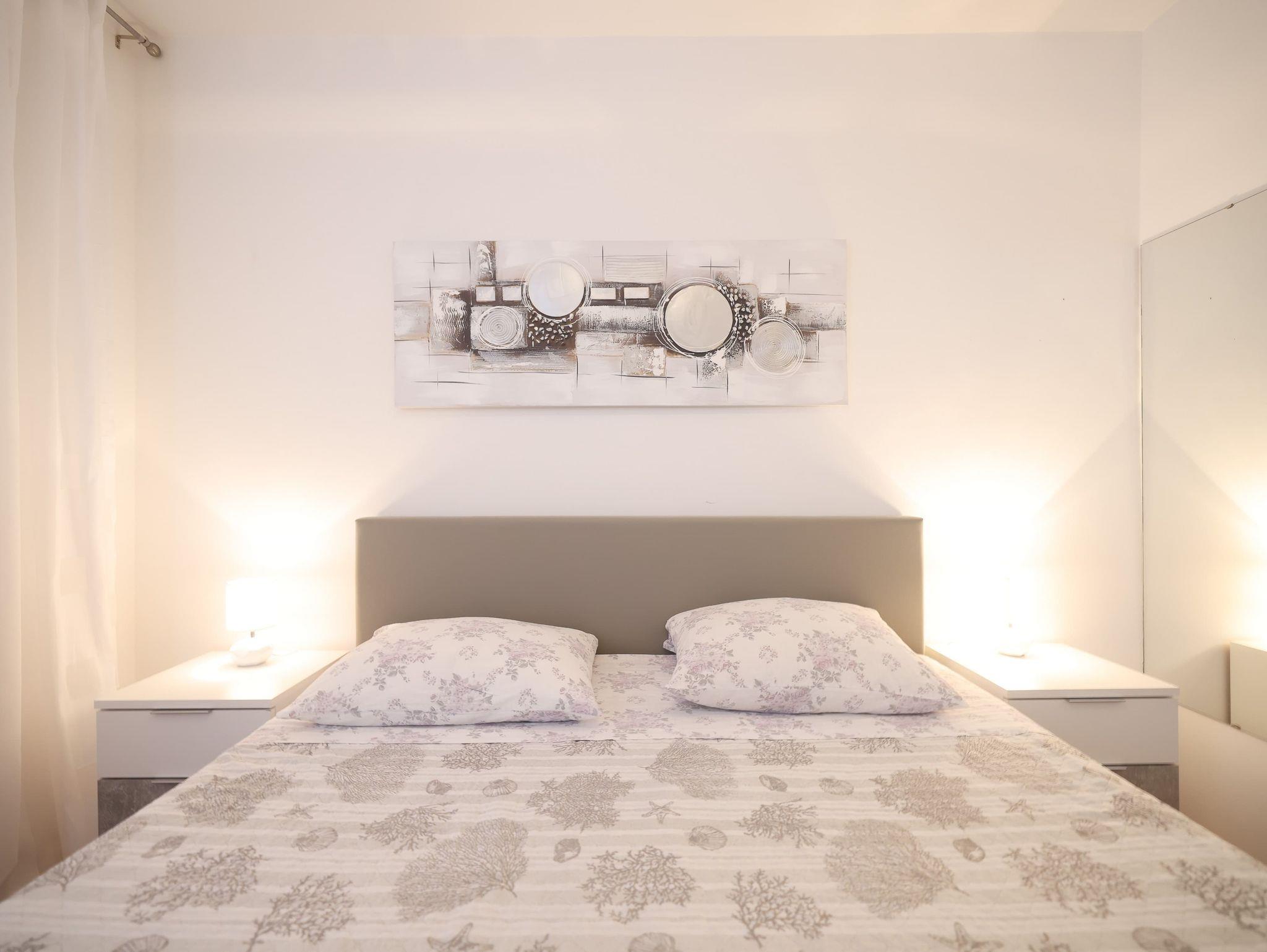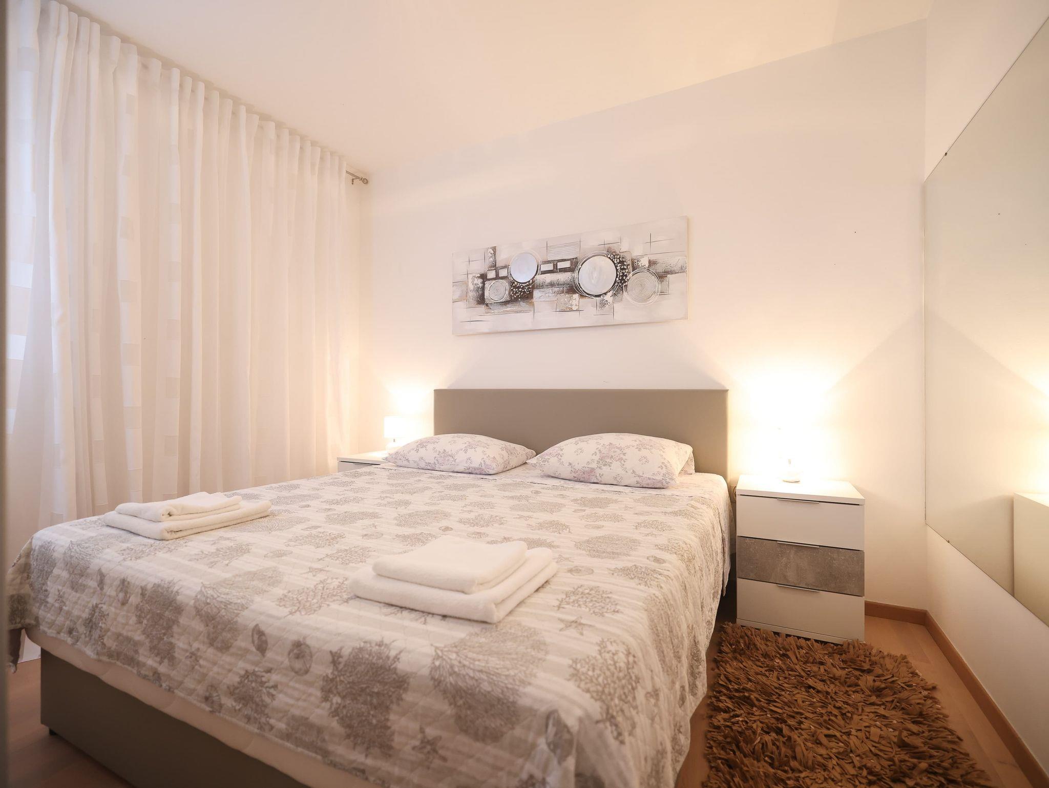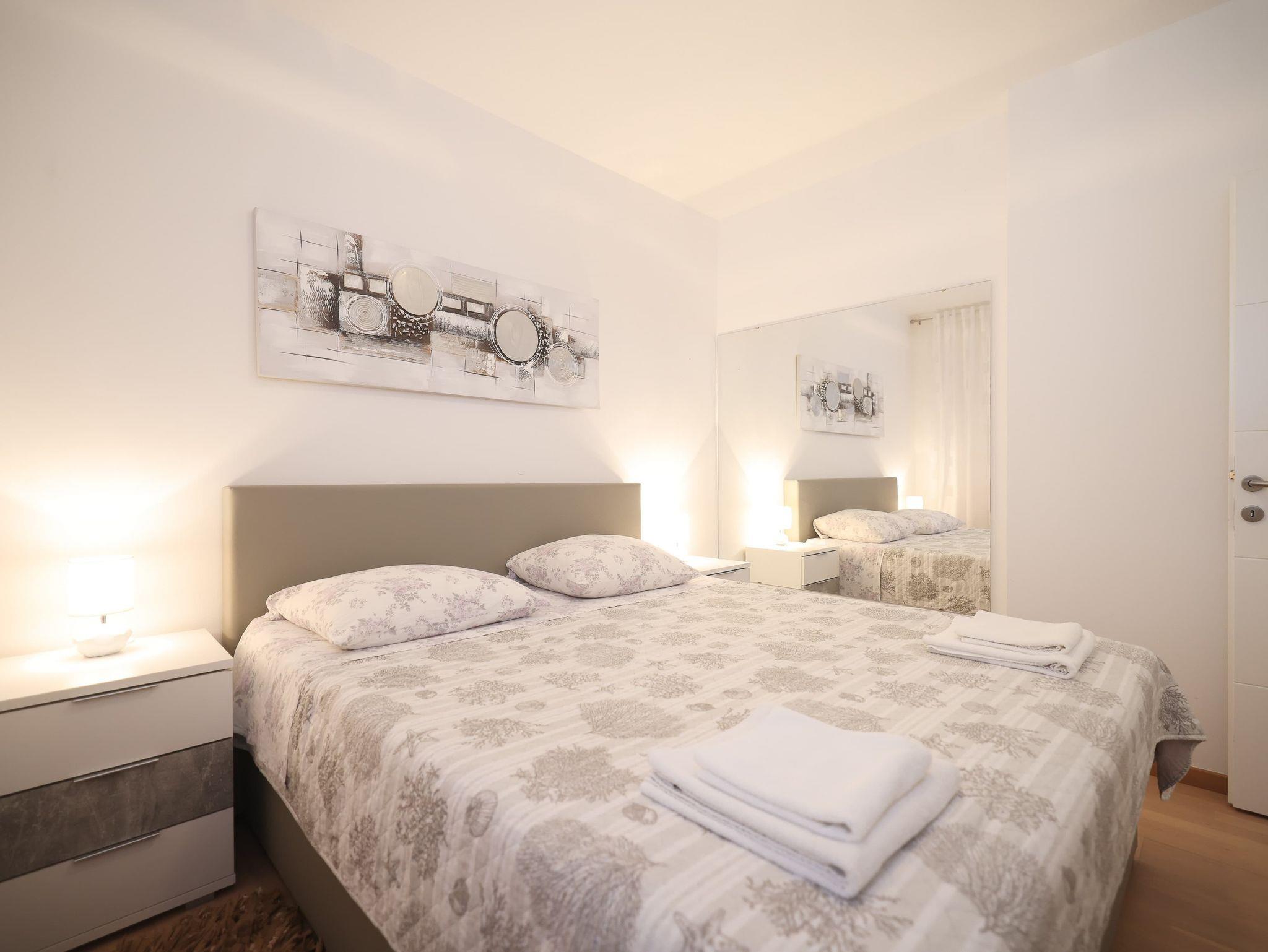 Ferienwohnung bietet Platz für 5 Gäste. Die Betten sind in Schlafzimmern, die es 3 gibt, innerhalb einer Gesamtfläche von 105m2, angeordnet. Die Gäste haben eine eigene Terrasse zur Verfügung, auf der sie in warmen Sommernächten genießen können. Für vollen Genuss und Entspannung gibt es einen privaten Grill für Gäste dieser Unterkunft. IM PREIS INBEGRIFFEN: Kurtaxe, Endreinigung, Klimatisierung, Parkplatz, Internet, Kinderbett, Bügeleisen, Bügelbrett, Föhn. VERBINDLICHE ZUSÄTZLICHE KOSTEN: Aufzahlung für Kurzaufenthalte (prozentualer Zuschlag pro Nächtigungsanzahl: 30% - 1, 20% - 2, 10% - 3). Die Verfügbarkeit zusätzlicher Dienstleistungen in Ihrem reservierten Termin und die Preise derselben (falls nicht aufgeführt) müssen im Voraus überprüft werden. Zusätzliche Dienstleistungen die in der Zahlungsaufforderung nicht aufgeführt sind werden direkt beim Vermieter bezahlt, angenommen der Gast nutzt auch diese.