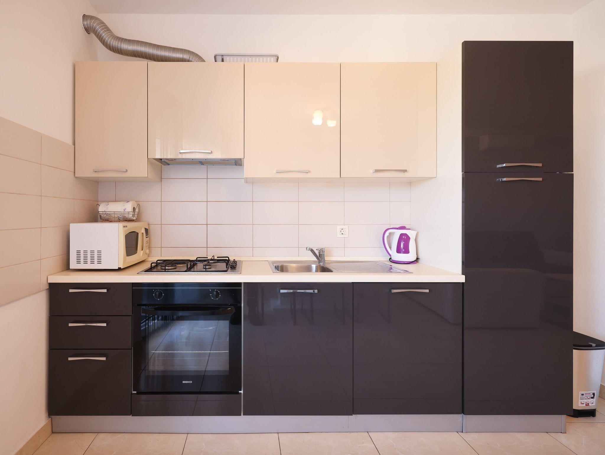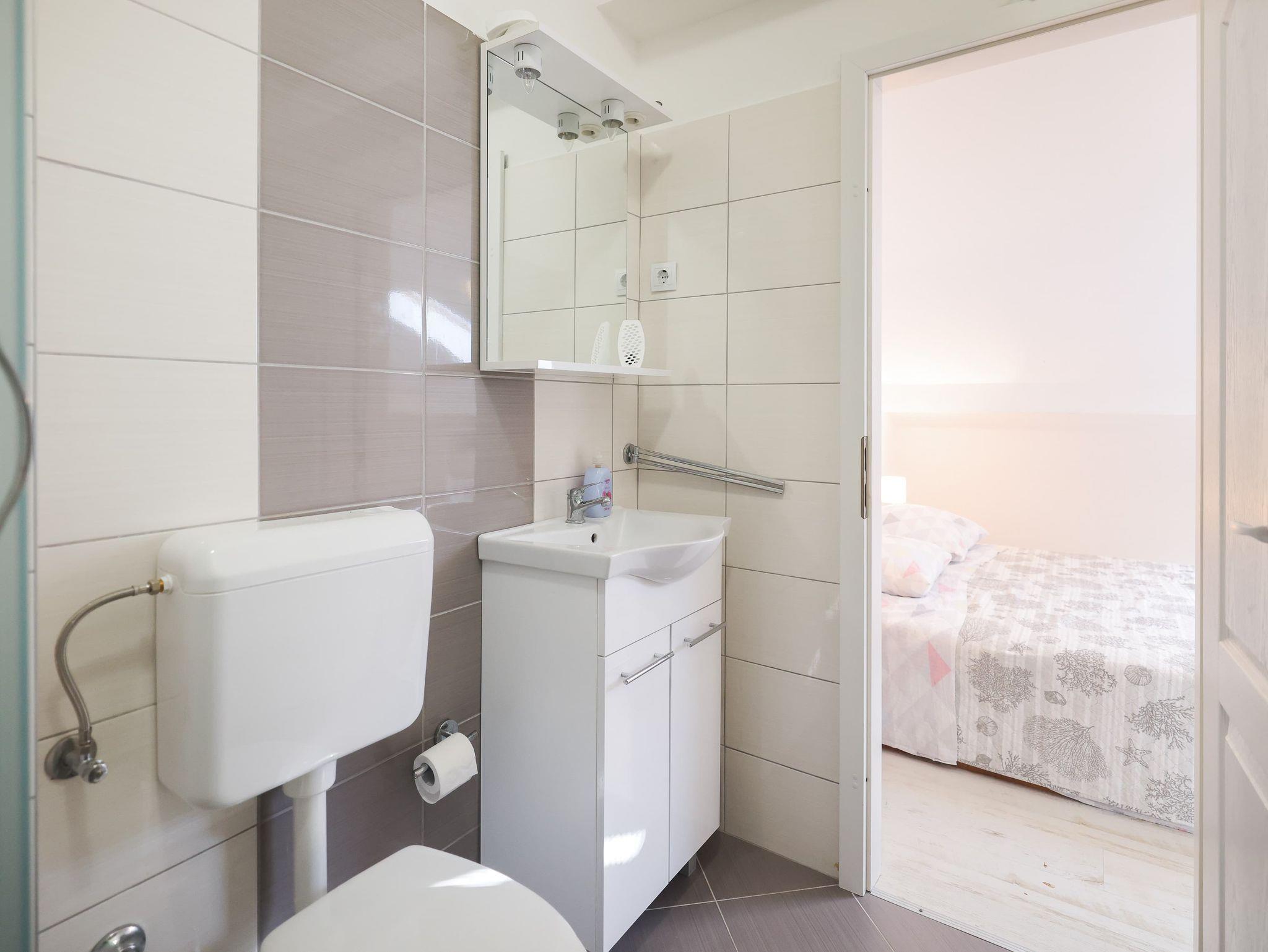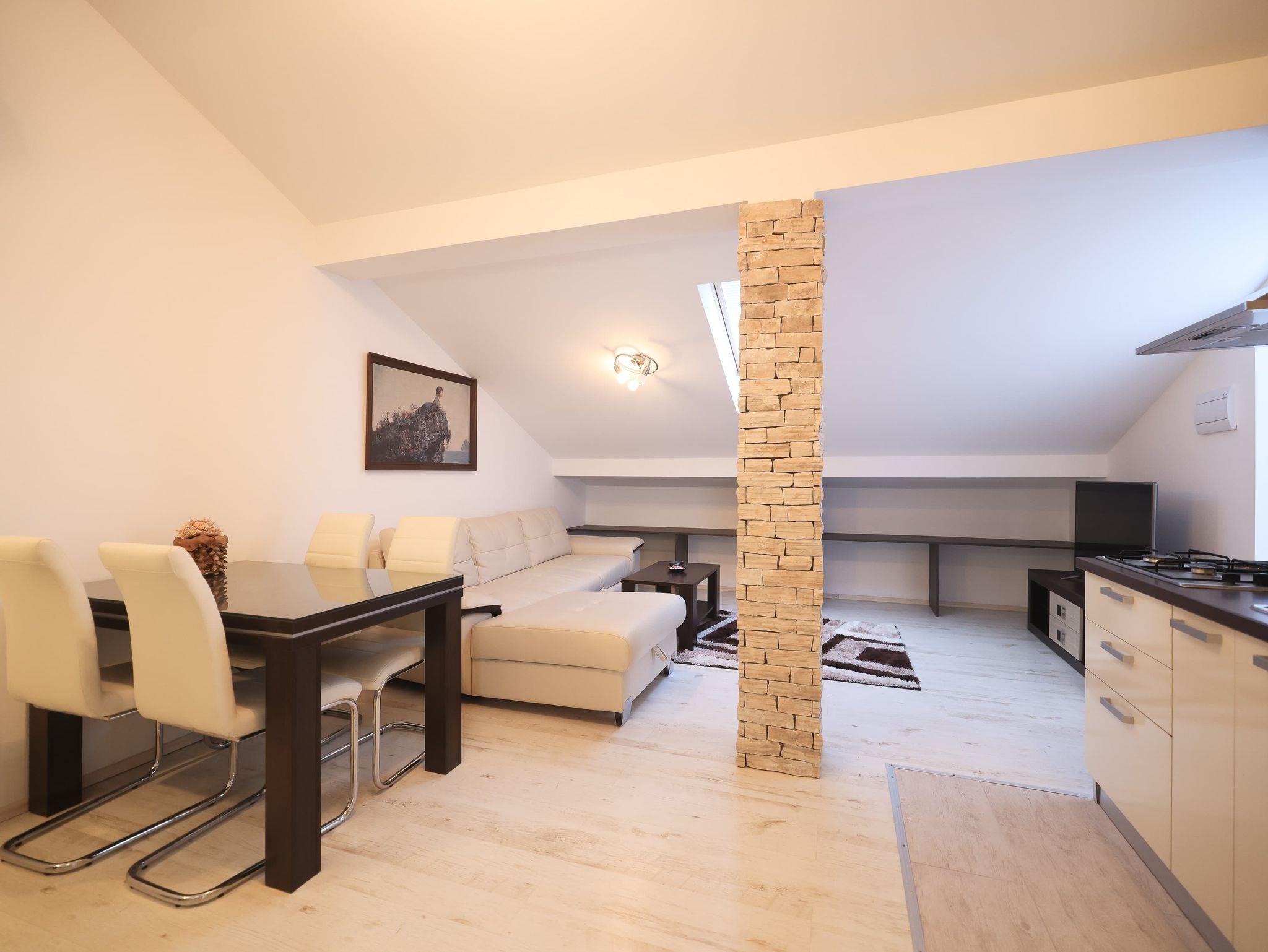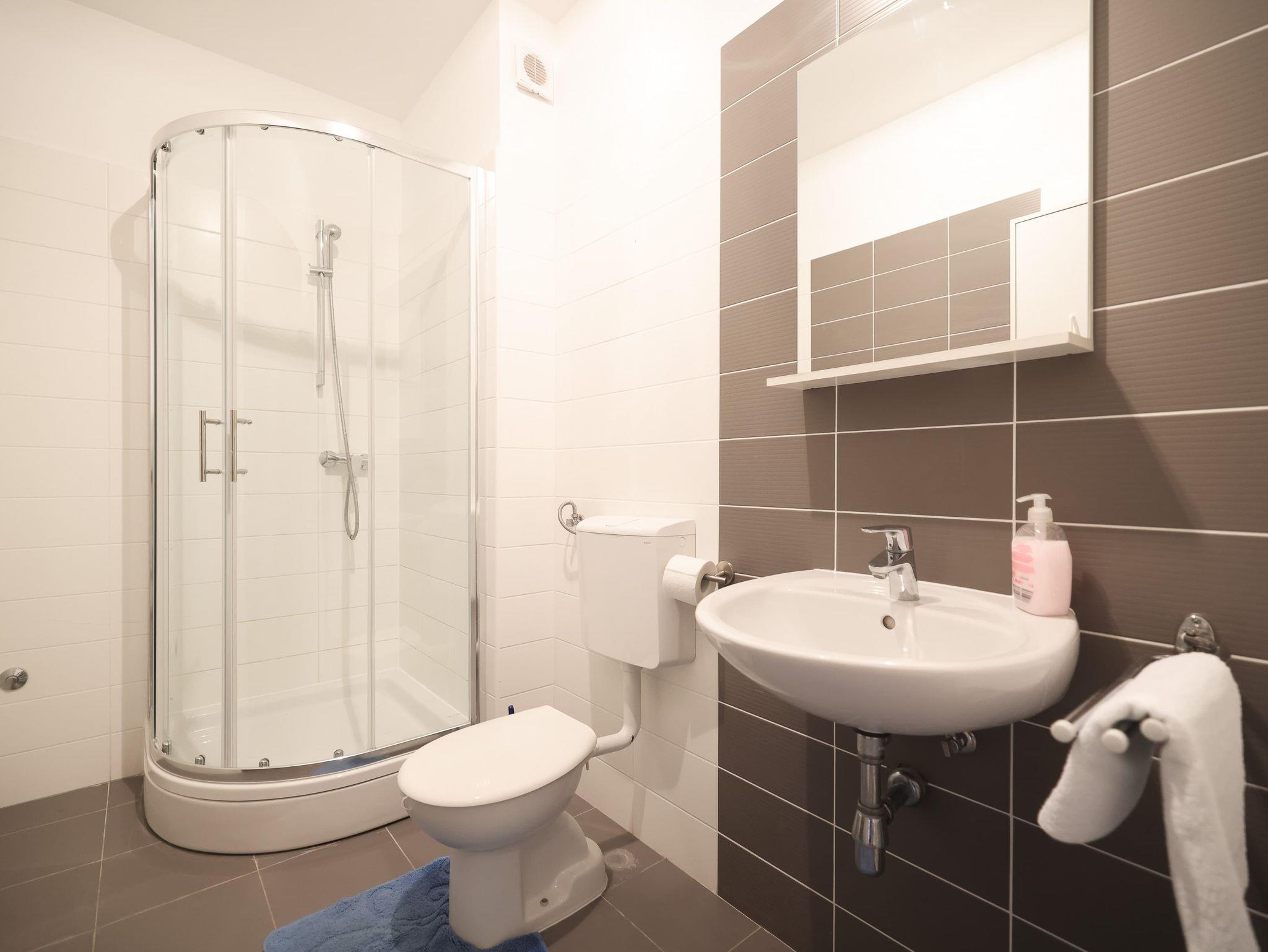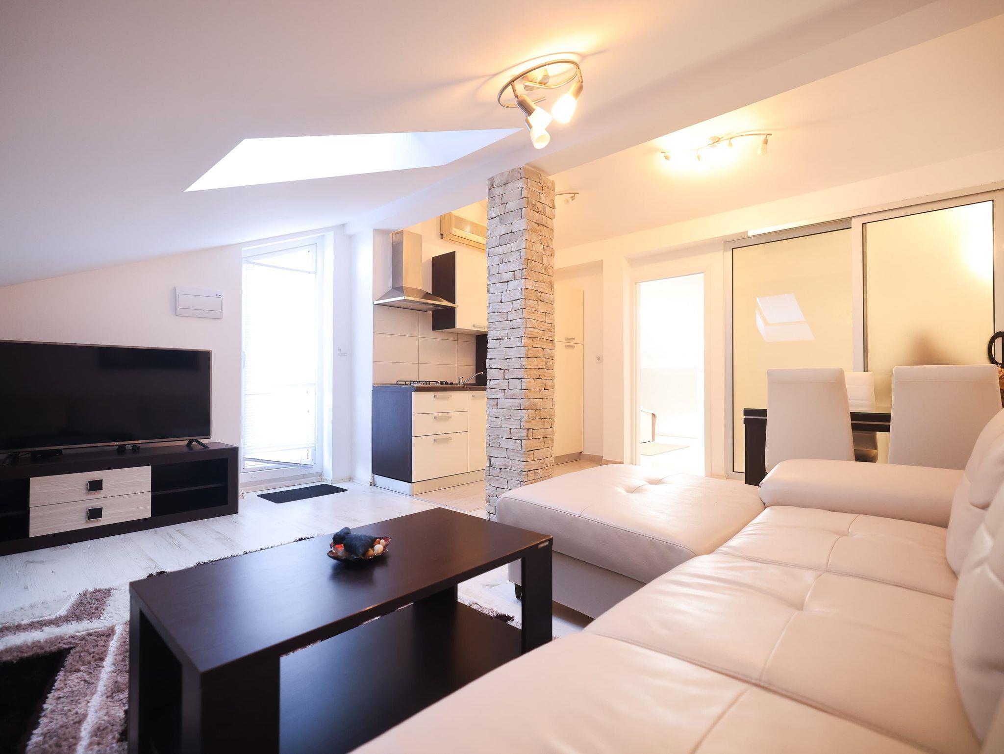 Ferienwohnung bietet Platz für 5 Gäste. Die Betten sind in Schlafzimmern, die es 3 gibt, innerhalb einer Gesamtfläche von 105m2, angeordnet. Die Gäste haben eine eigene Terrasse zur Verfügung, auf der sie in warmen Sommernächten genießen können. Für vollen Genuss und Entspannung gibt es einen privaten Grill für Gäste dieser Unterkunft. IM PREIS INBEGRIFFEN: Kurtaxe, Endreinigung, Klimatisierung, Parkplatz, Internet, Kinderbett, Bügeleisen, Bügelbrett, Föhn. VERBINDLICHE ZUSÄTZLICHE KOSTEN: Aufzahlung für Kurzaufenthalte (prozentualer Zuschlag pro Nächtigungsanzahl: 30% - 1, 20% - 2, 10% - 3). Die Verfügbarkeit zusätzlicher Dienstleistungen in Ihrem reservierten Termin und die Preise derselben (falls nicht aufgeführt) müssen im Voraus überprüft werden. Zusätzliche Dienstleistungen die in der Zahlungsaufforderung nicht aufgeführt sind werden direkt beim Vermieter bezahlt, angenommen der Gast nutzt auch diese.