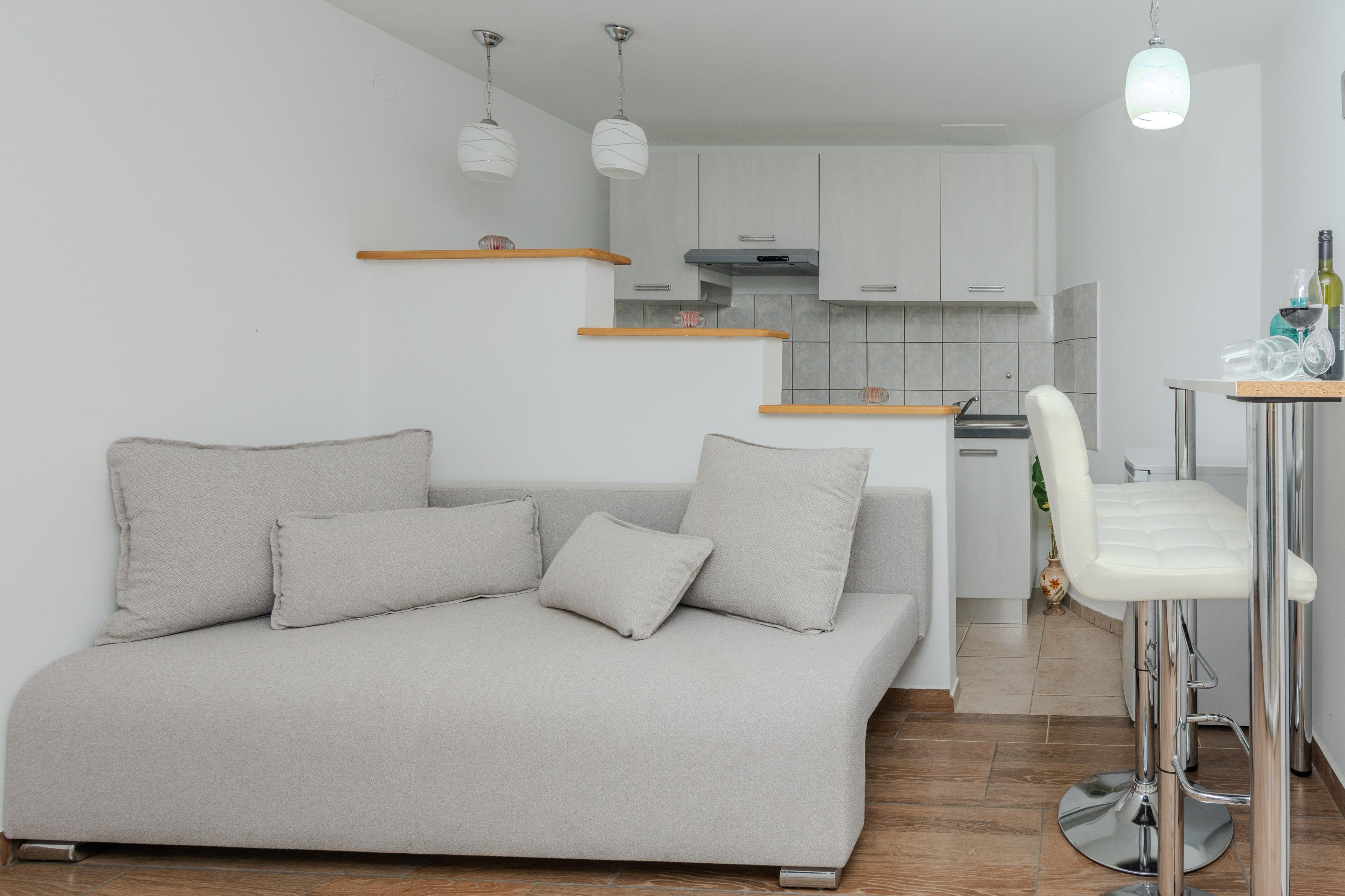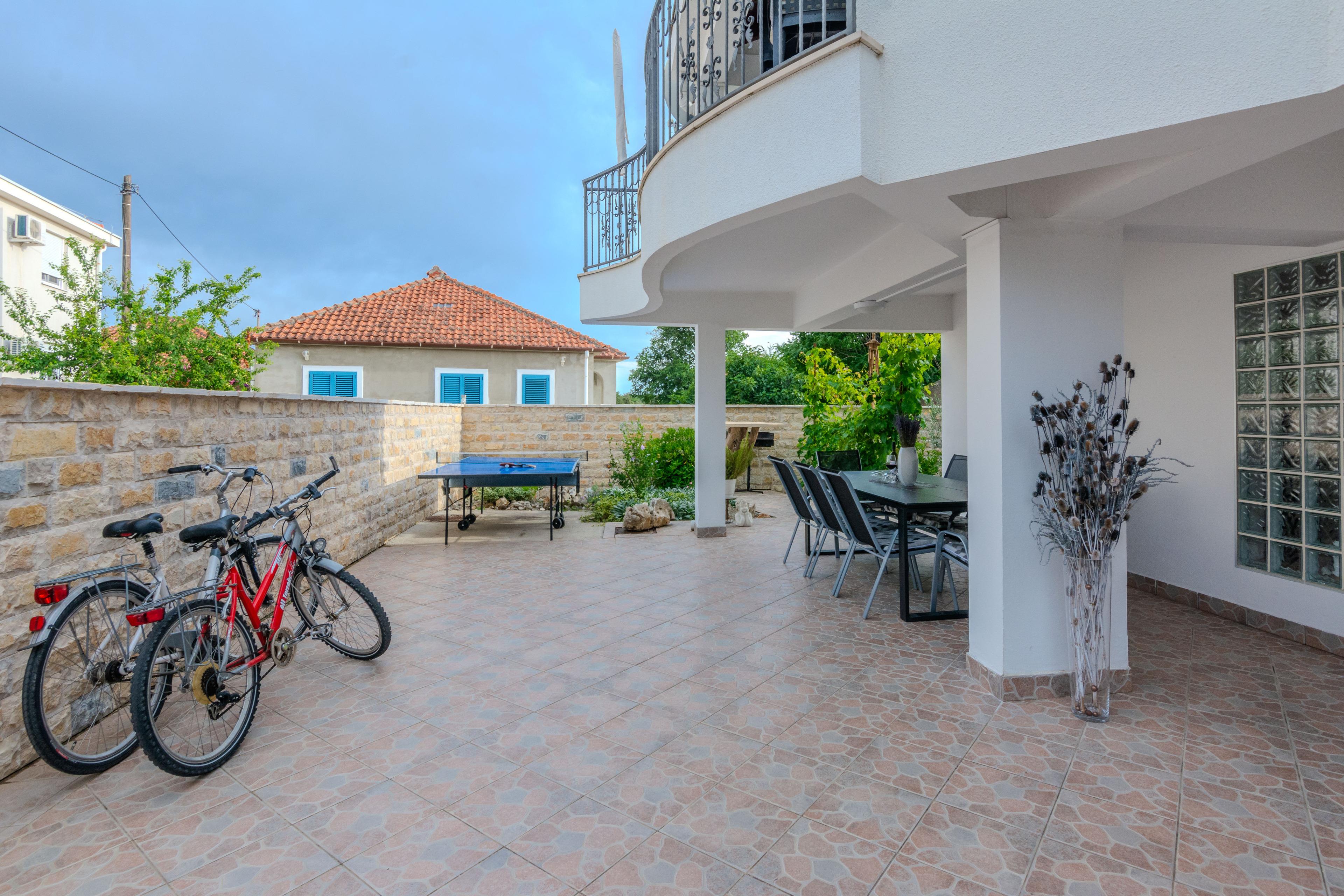 Dieses geräumige Ferienhaus befindet sich auf einem 200 m² großen Anwesen in einer ruhigen Ortsteil Zaton. Die 120 m² Ferienhaus erstreckt sich über zwei Etagen, besteht aus 2 Wohnungen und ist ideal 6-8 Personen.