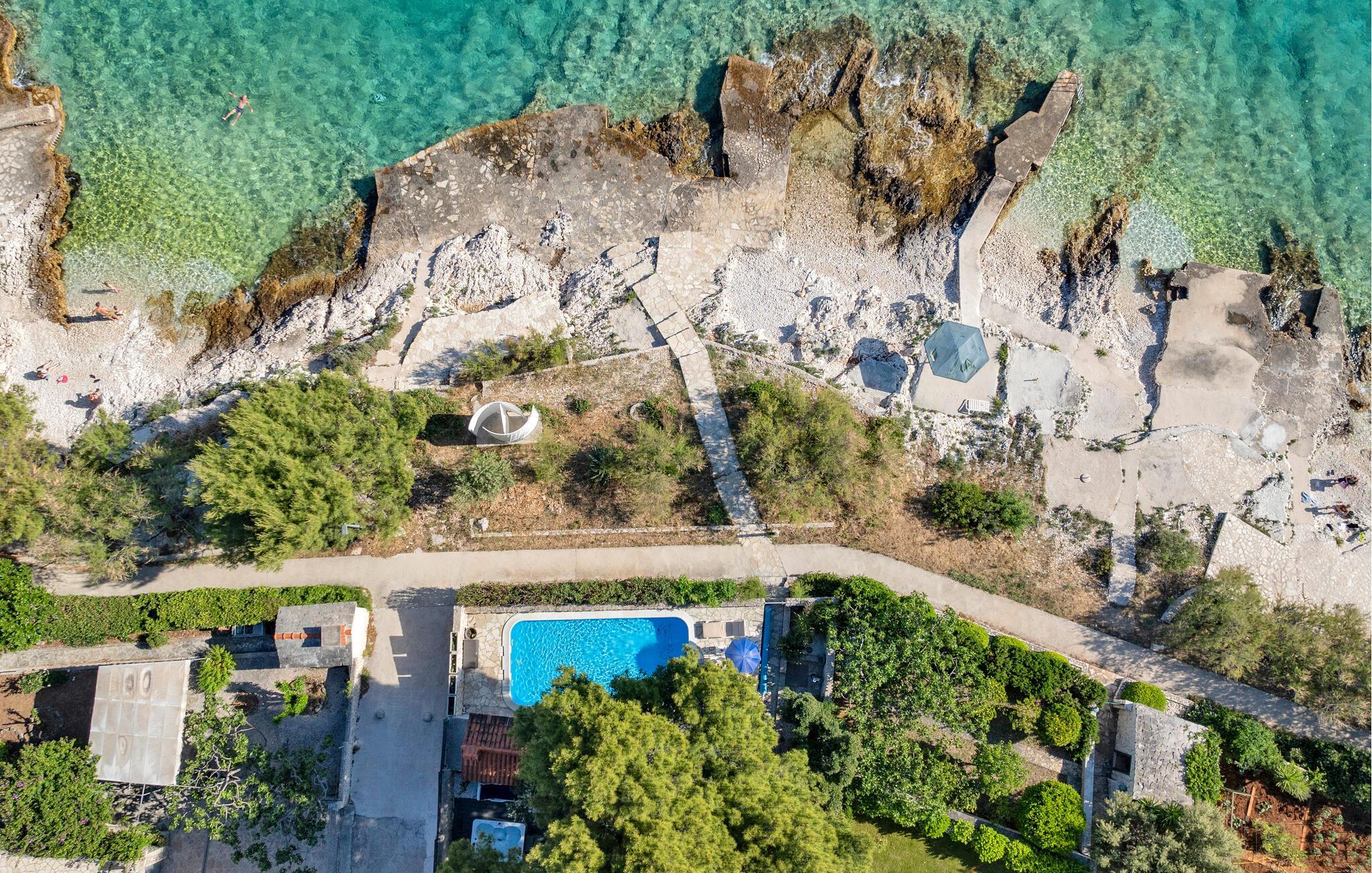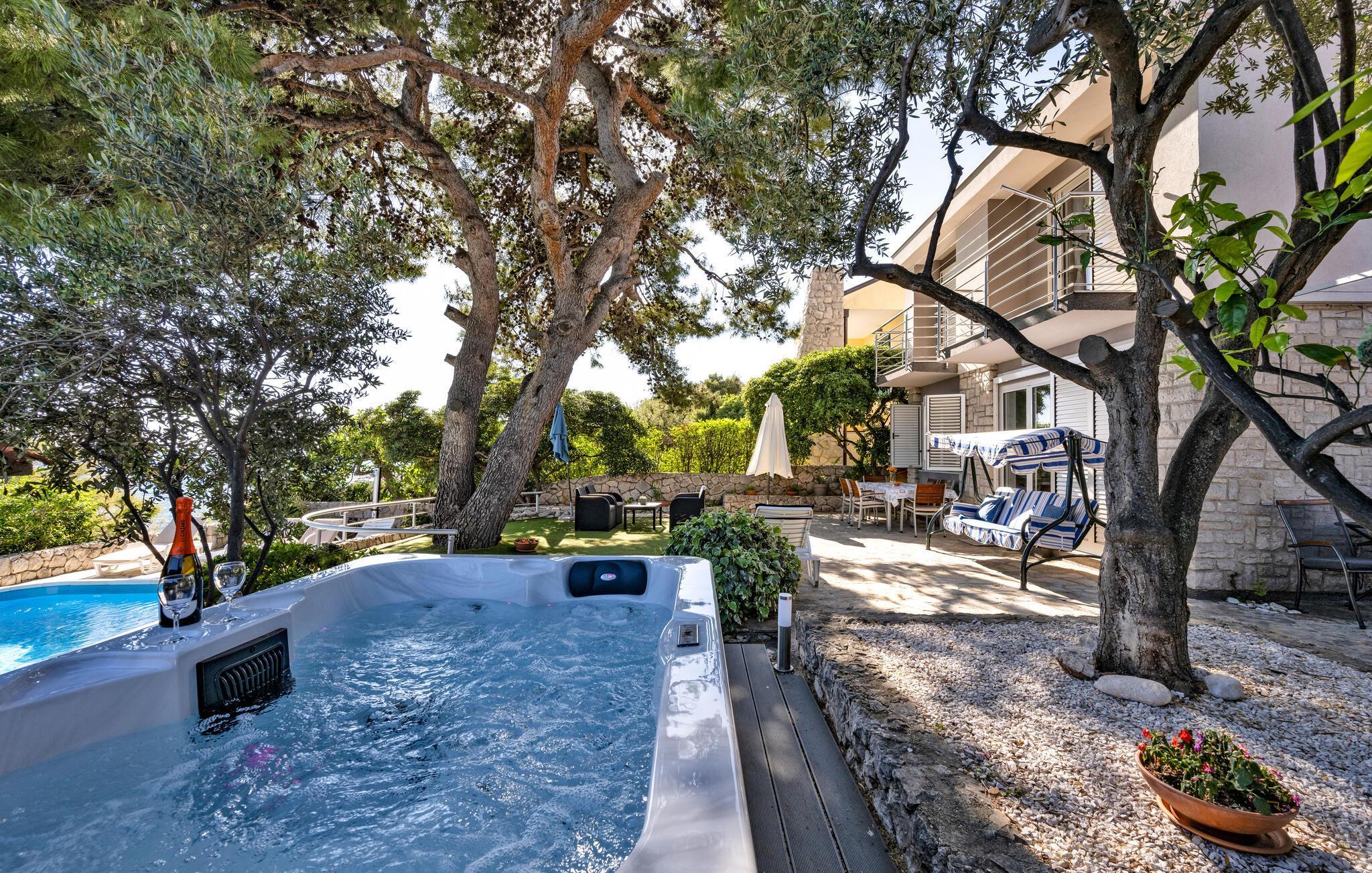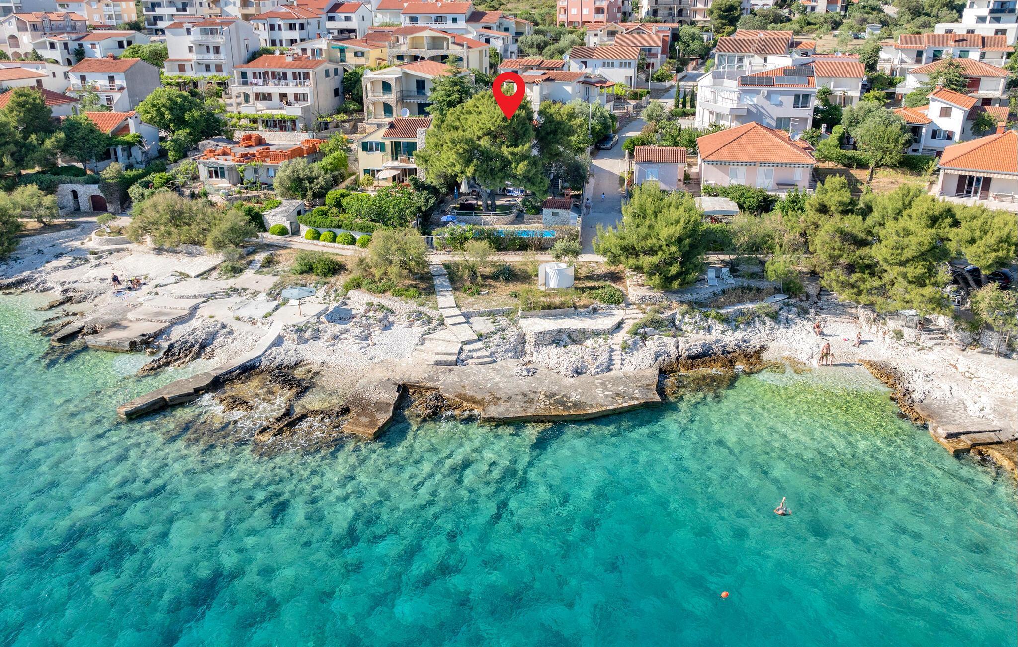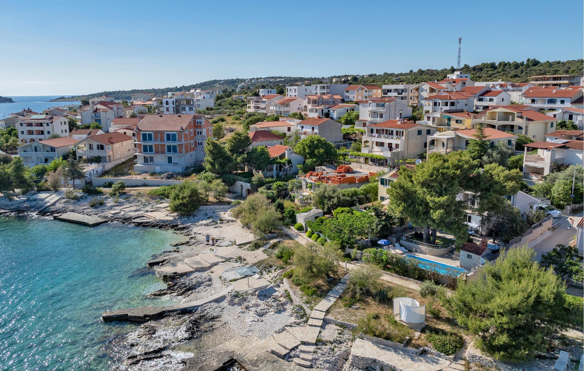 Tauchen Sie ein in die mediterrane Wohnatmosphäre und entspannen Sie während Ihres Urlaubes in diesem schönen Ferienhaus mit Pool, welches aus zwei Etagen besteht und fast direkt am Meer liegt. Der attraktive Außenpool bietet die ideale Erfrischung an heißen Sommertagen und am Strand vor dem Haus können Sie die Sonne und das Meer in vollen Zügen genießen. Entspannen Sie im Garten mit Blick auf das Meer und genießen Sie gesellige Stunden beim Grillen im kleinen Grillhäuschen auf dem Grundstück befindet. Besuchen Sie die Stadt Rogoznica, die bei Surfern speziell beliebt ist und über viele Sehenswürdigkeiten und interessante Sommerveranstaltungen verfügt. Ergänzen Sie Ihren Urlaub mit köstlichen Speisen in den vielen Restaurants und Tavernen, während Sie nebenbei den Klängen der dalmatinischen Musik lauschen. Besichtigen Sie den Salzsee, der als besondere Attraktion bekannt ist.