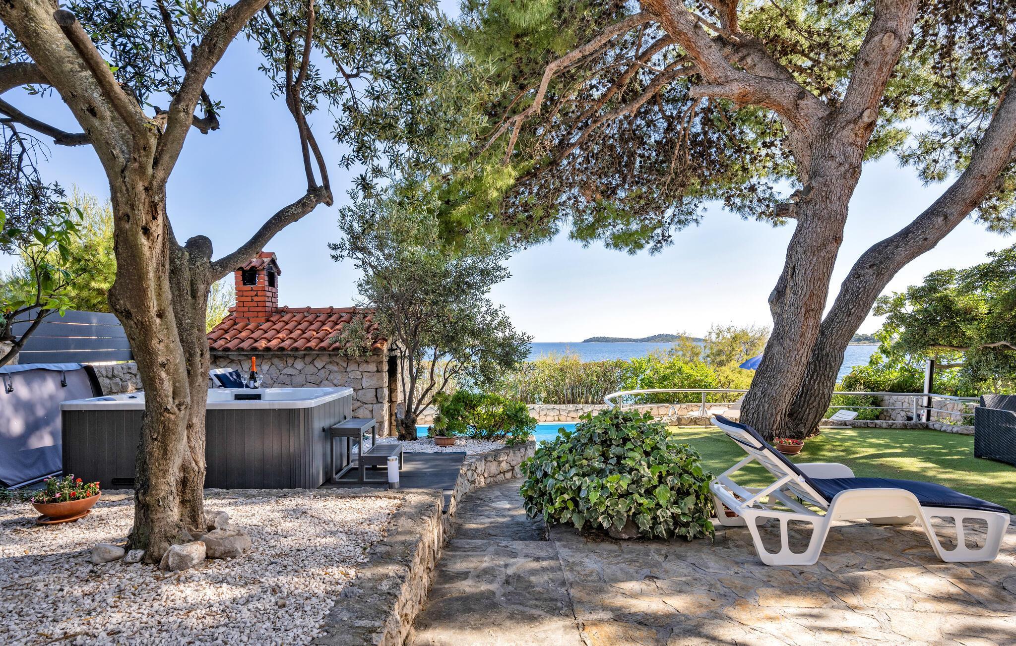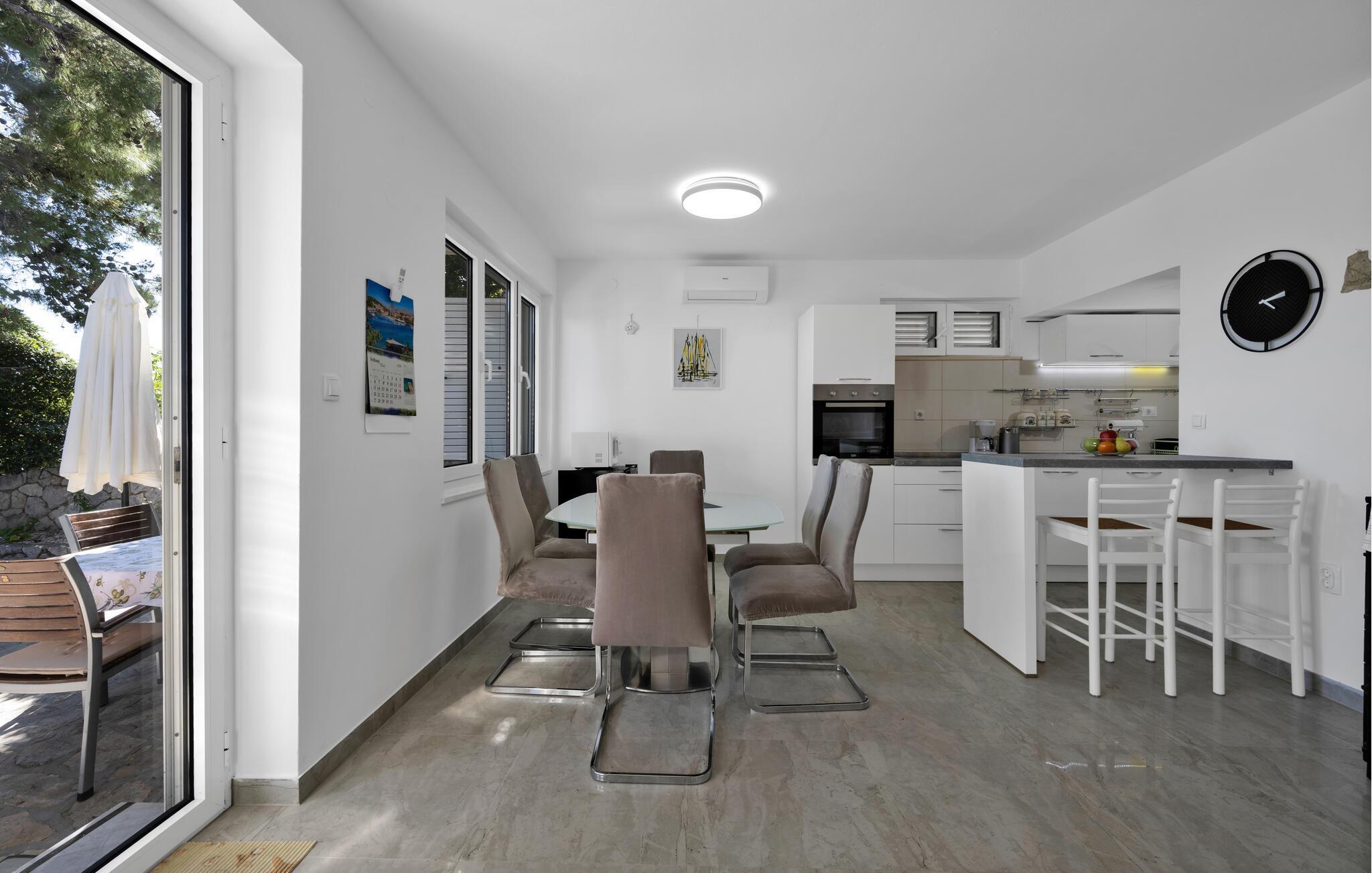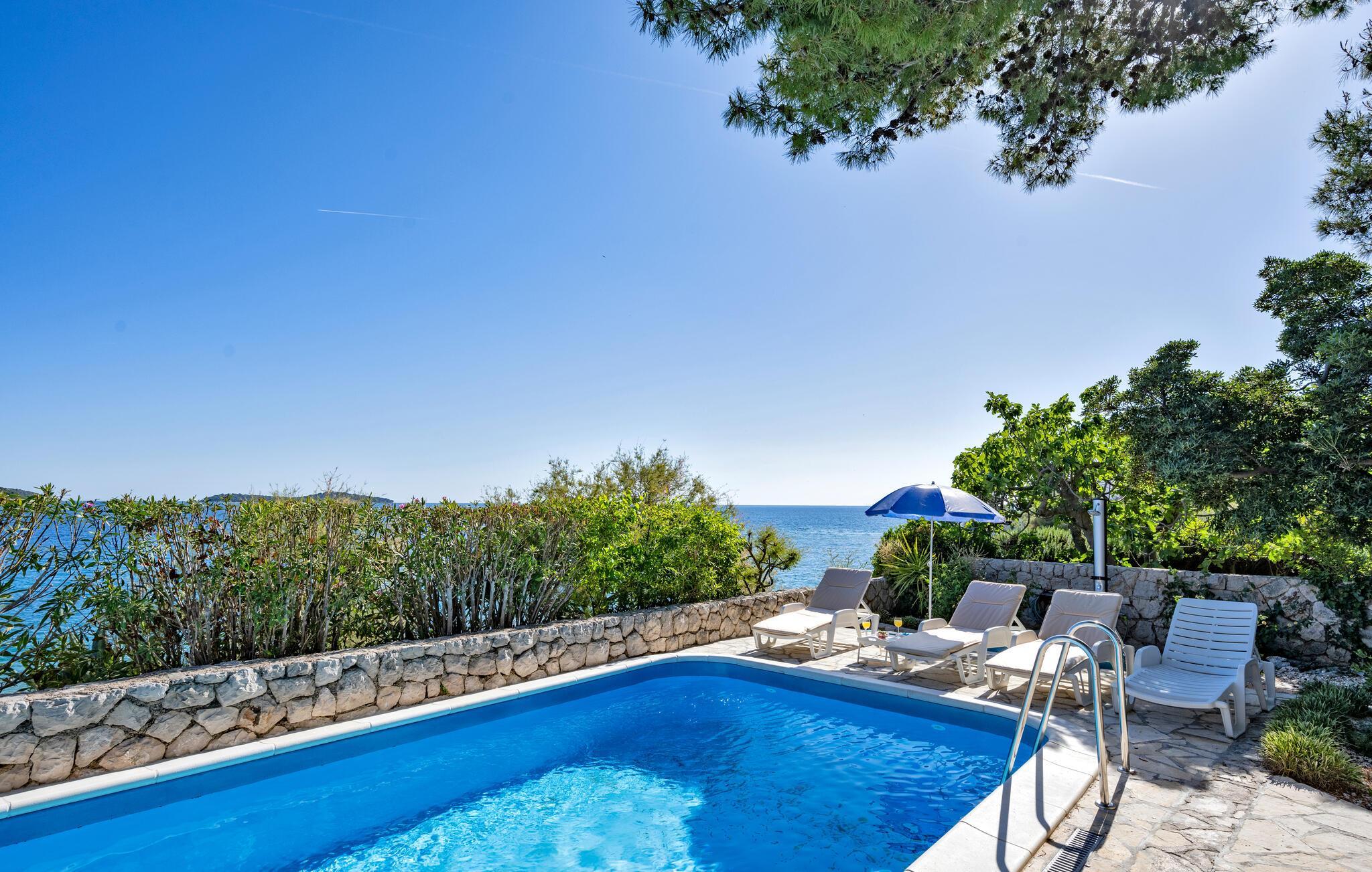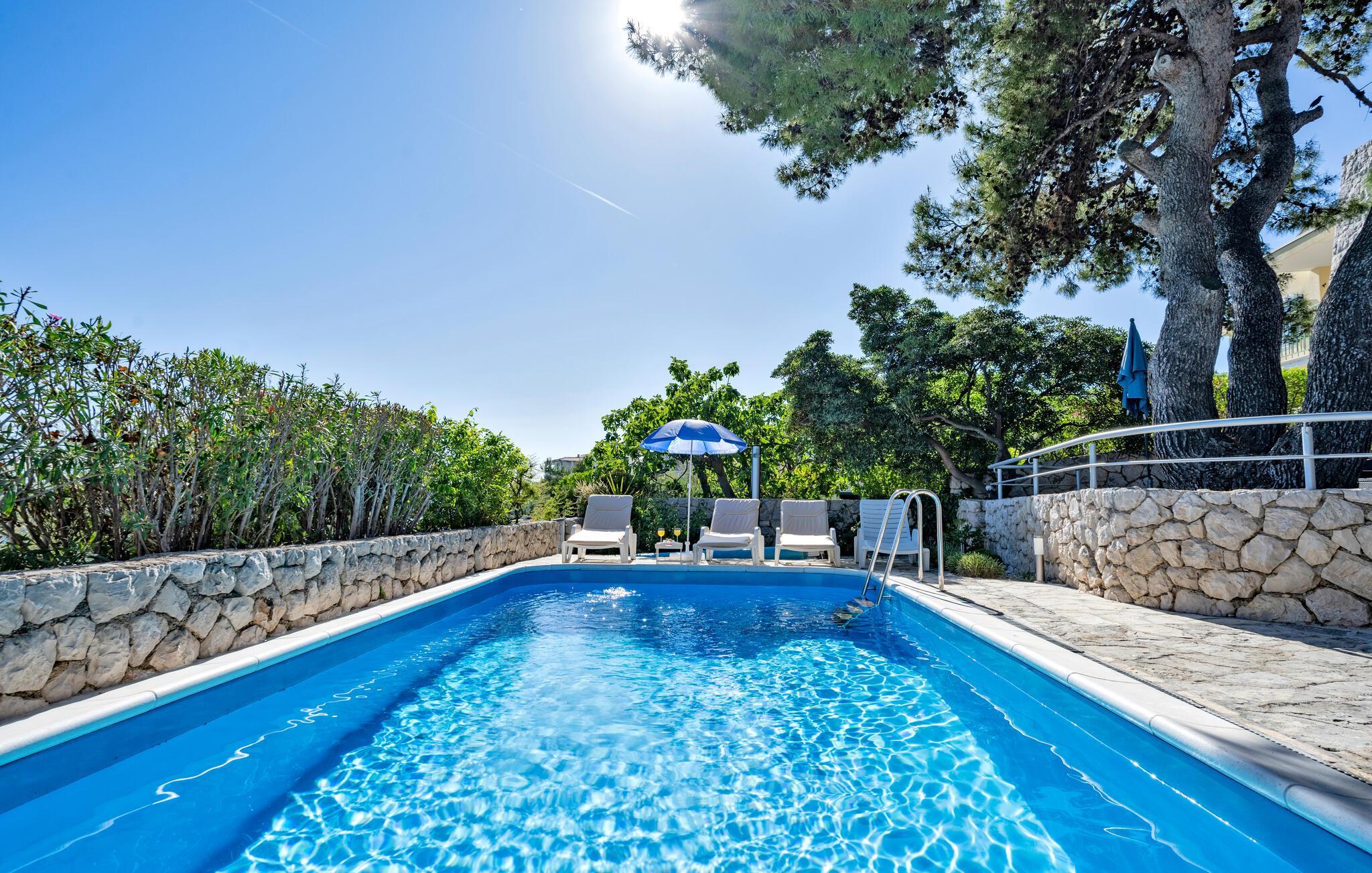 Tauchen Sie ein in die mediterrane Wohnatmosphäre und entspannen Sie während Ihres Urlaubes in diesem schönen Ferienhaus mit Pool, welches aus zwei Etagen besteht und fast direkt am Meer liegt. Der attraktive Außenpool bietet die ideale Erfrischung an heißen Sommertagen und am Strand vor dem Haus können Sie die Sonne und das Meer in vollen Zügen genießen. Entspannen Sie im Garten mit Blick auf das Meer und genießen Sie gesellige Stunden beim Grillen im kleinen Grillhäuschen auf dem Grundstück befindet. Besuchen Sie die Stadt Rogoznica, die bei Surfern speziell beliebt ist und über viele Sehenswürdigkeiten und interessante Sommerveranstaltungen verfügt. Ergänzen Sie Ihren Urlaub mit köstlichen Speisen in den vielen Restaurants und Tavernen, während Sie nebenbei den Klängen der dalmatinischen Musik lauschen. Besichtigen Sie den Salzsee, der als besondere Attraktion bekannt ist.