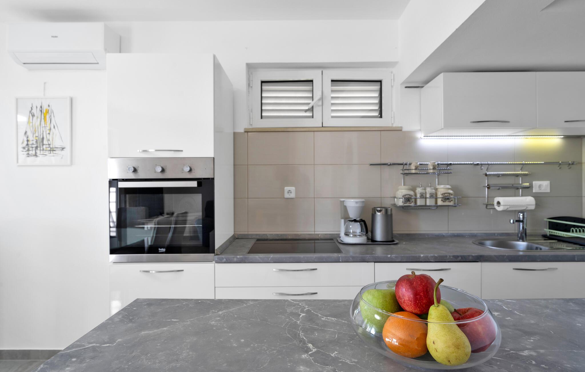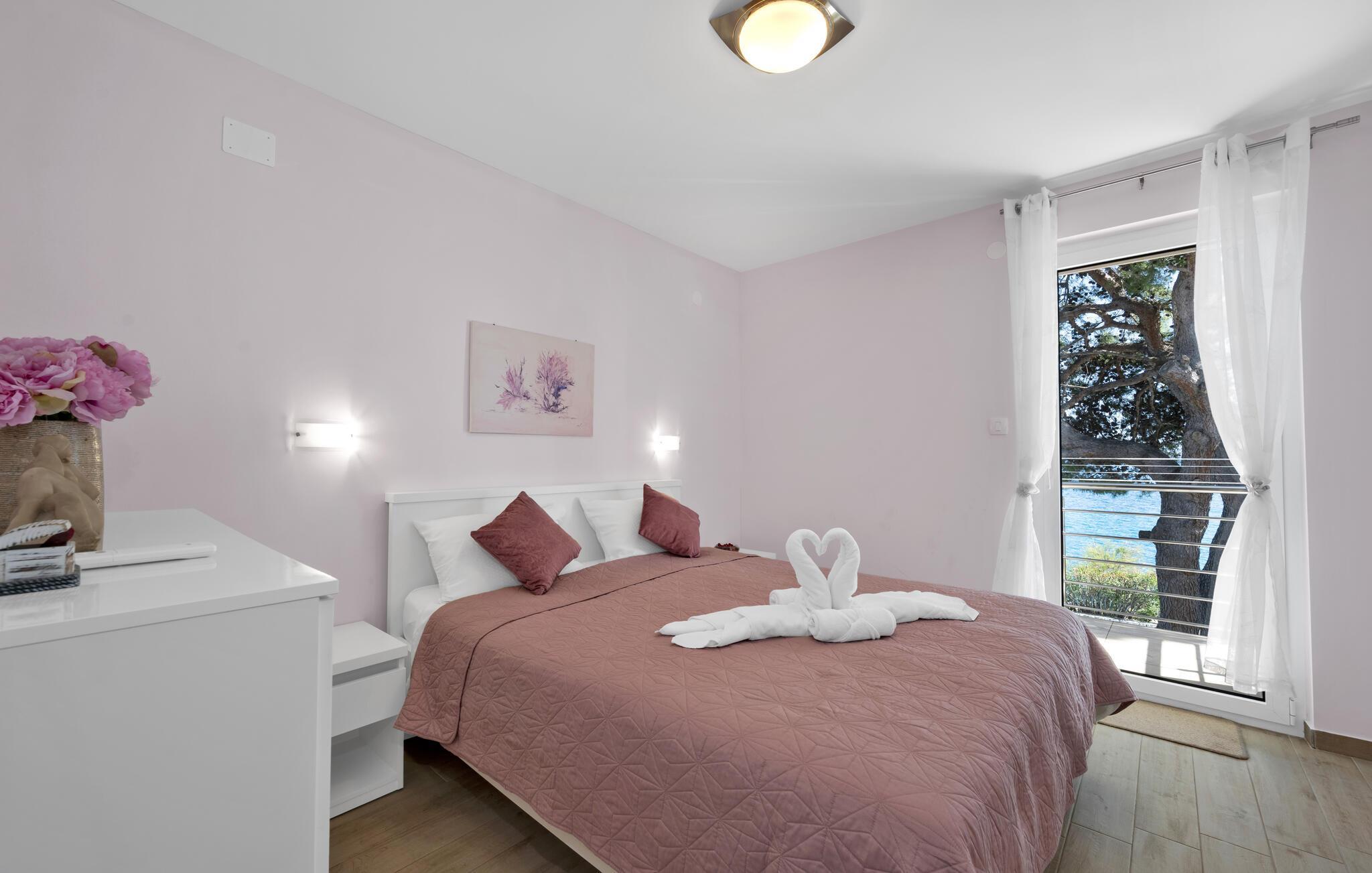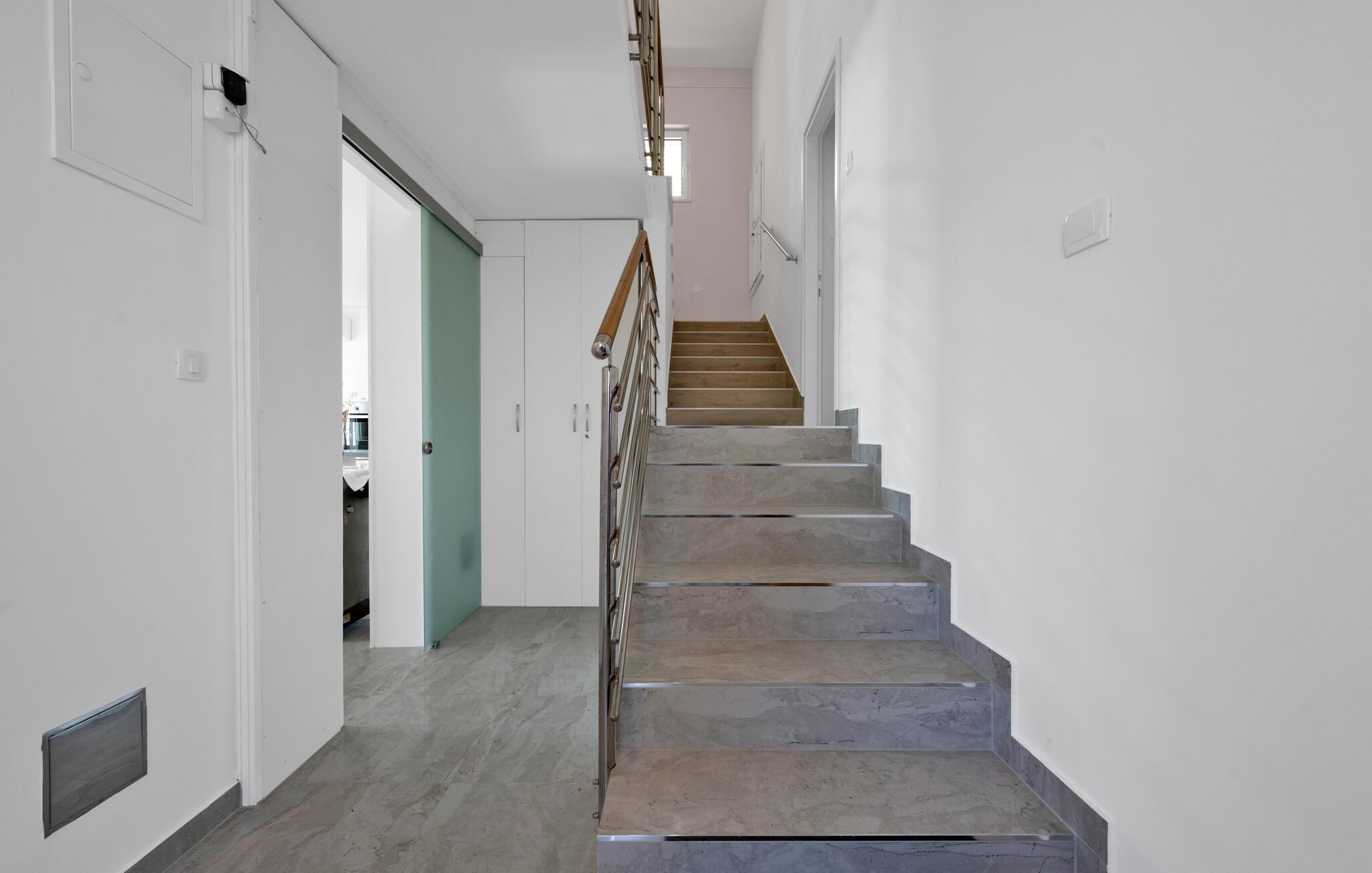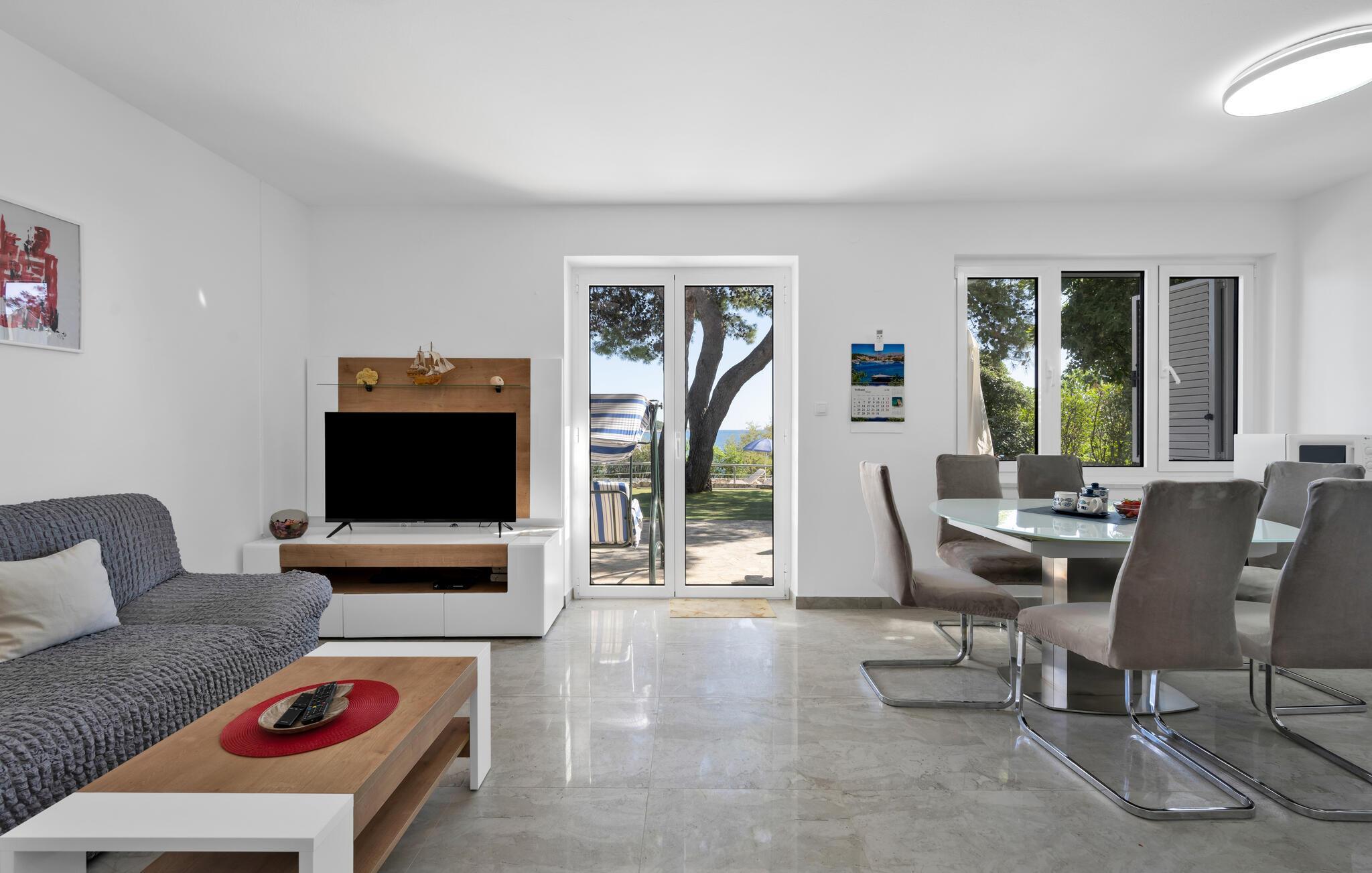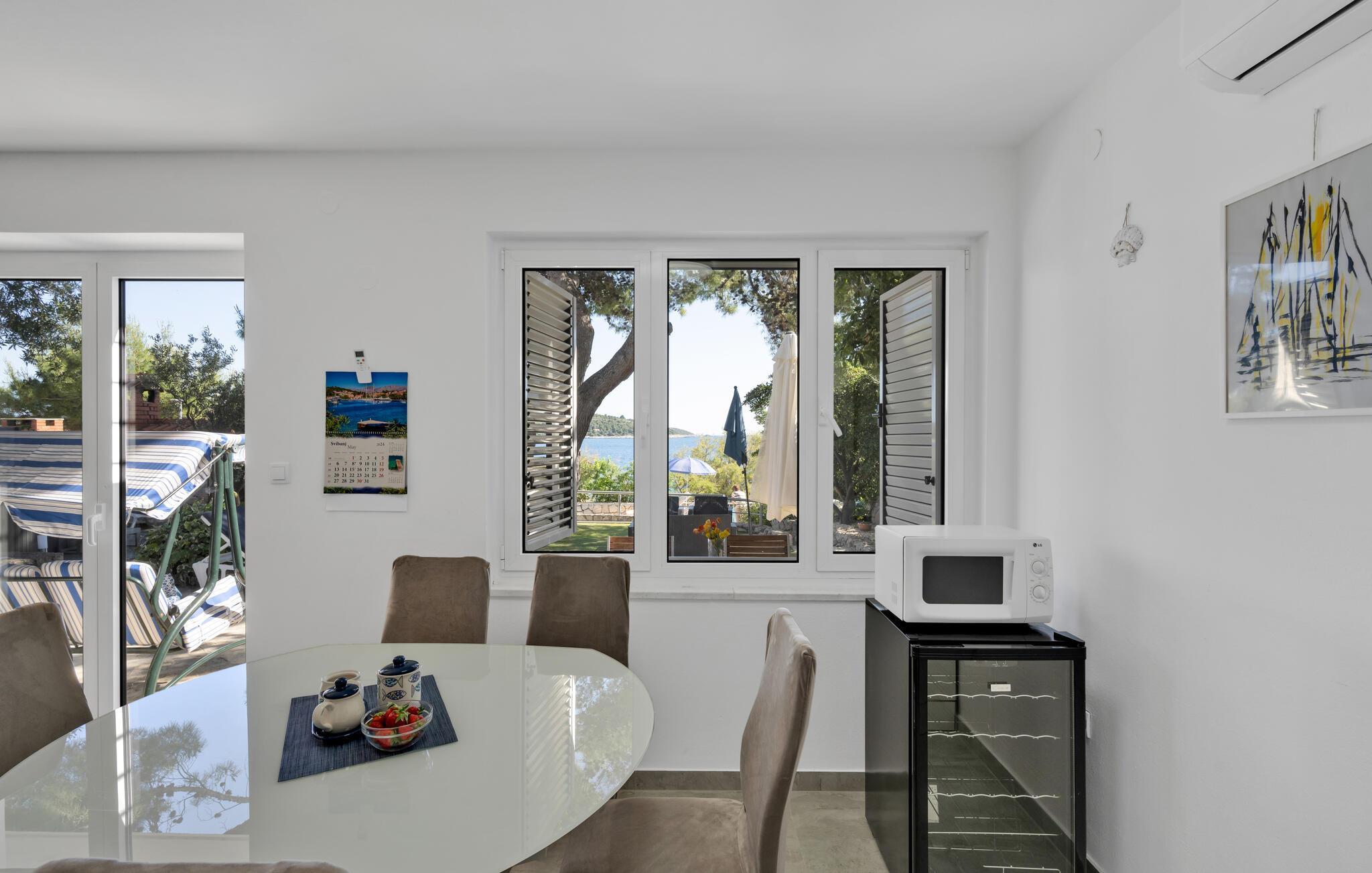 Tauchen Sie ein in die mediterrane Wohnatmosphäre und entspannen Sie während Ihres Urlaubes in diesem schönen Ferienhaus mit Pool, welches aus zwei Etagen besteht und fast direkt am Meer liegt. Der attraktive Außenpool bietet die ideale Erfrischung an heißen Sommertagen und am Strand vor dem Haus können Sie die Sonne und das Meer in vollen Zügen genießen. Entspannen Sie im Garten mit Blick auf das Meer und genießen Sie gesellige Stunden beim Grillen im kleinen Grillhäuschen auf dem Grundstück befindet. Besuchen Sie die Stadt Rogoznica, die bei Surfern speziell beliebt ist und über viele Sehenswürdigkeiten und interessante Sommerveranstaltungen verfügt. Ergänzen Sie Ihren Urlaub mit köstlichen Speisen in den vielen Restaurants und Tavernen, während Sie nebenbei den Klängen der dalmatinischen Musik lauschen. Besichtigen Sie den Salzsee, der als besondere Attraktion bekannt ist.