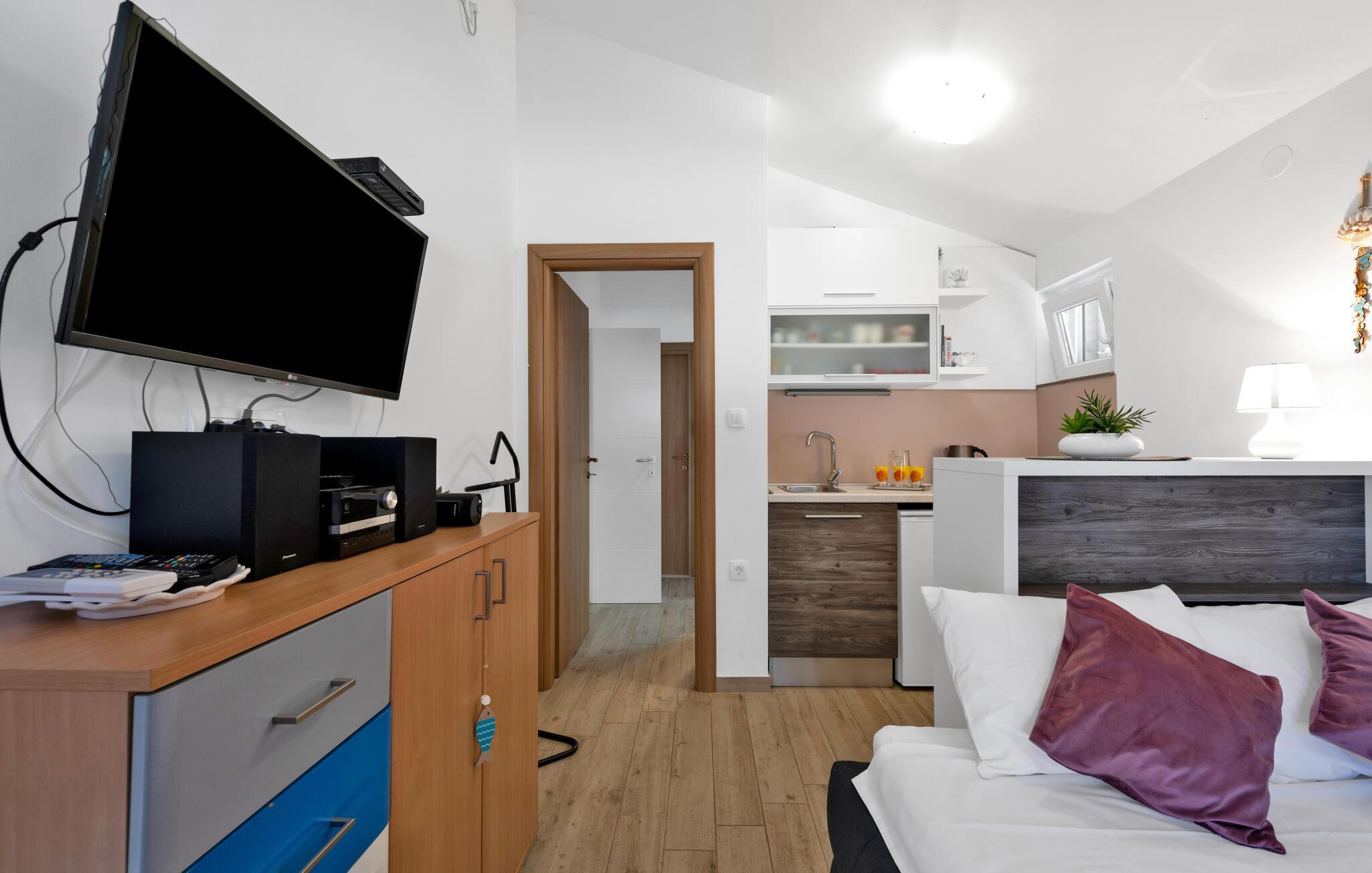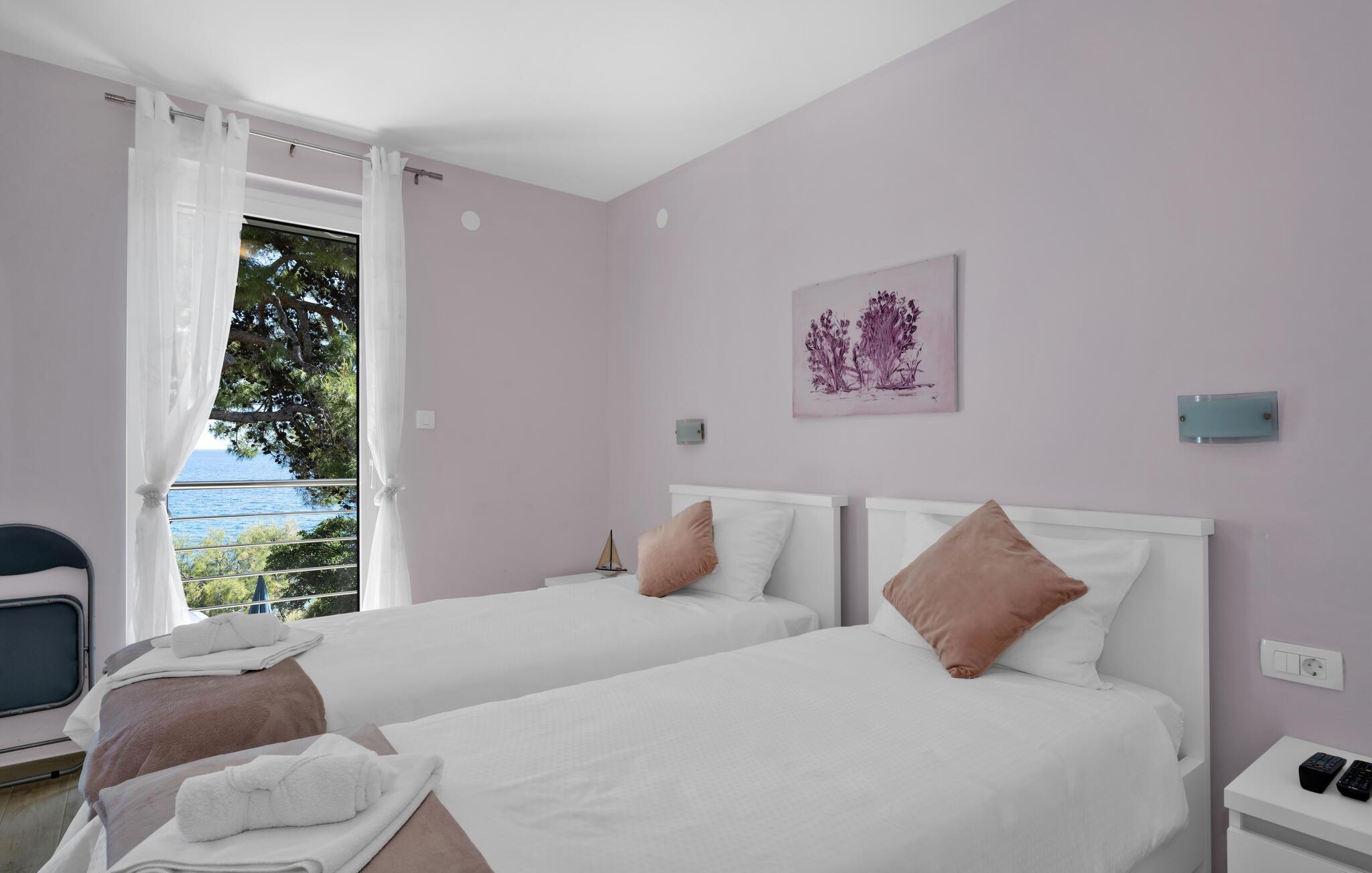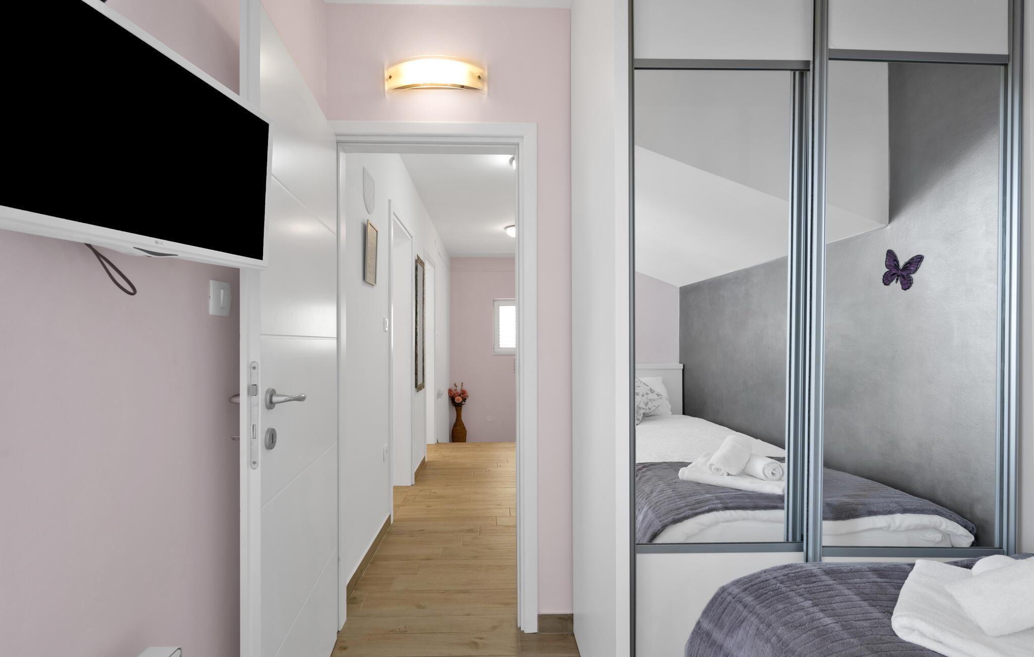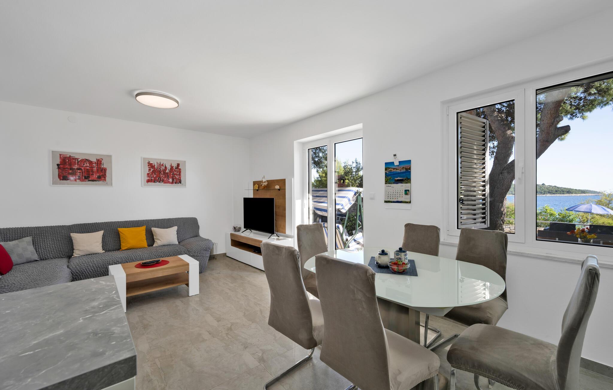 Tauchen Sie ein in die mediterrane Wohnatmosphäre und entspannen Sie während Ihres Urlaubes in diesem schönen Ferienhaus mit Pool, welches aus zwei Etagen besteht und fast direkt am Meer liegt. Der attraktive Außenpool bietet die ideale Erfrischung an heißen Sommertagen und am Strand vor dem Haus können Sie die Sonne und das Meer in vollen Zügen genießen. Entspannen Sie im Garten mit Blick auf das Meer und genießen Sie gesellige Stunden beim Grillen im kleinen Grillhäuschen auf dem Grundstück befindet. Besuchen Sie die Stadt Rogoznica, die bei Surfern speziell beliebt ist und über viele Sehenswürdigkeiten und interessante Sommerveranstaltungen verfügt. Ergänzen Sie Ihren Urlaub mit köstlichen Speisen in den vielen Restaurants und Tavernen, während Sie nebenbei den Klängen der dalmatinischen Musik lauschen. Besichtigen Sie den Salzsee, der als besondere Attraktion bekannt ist.