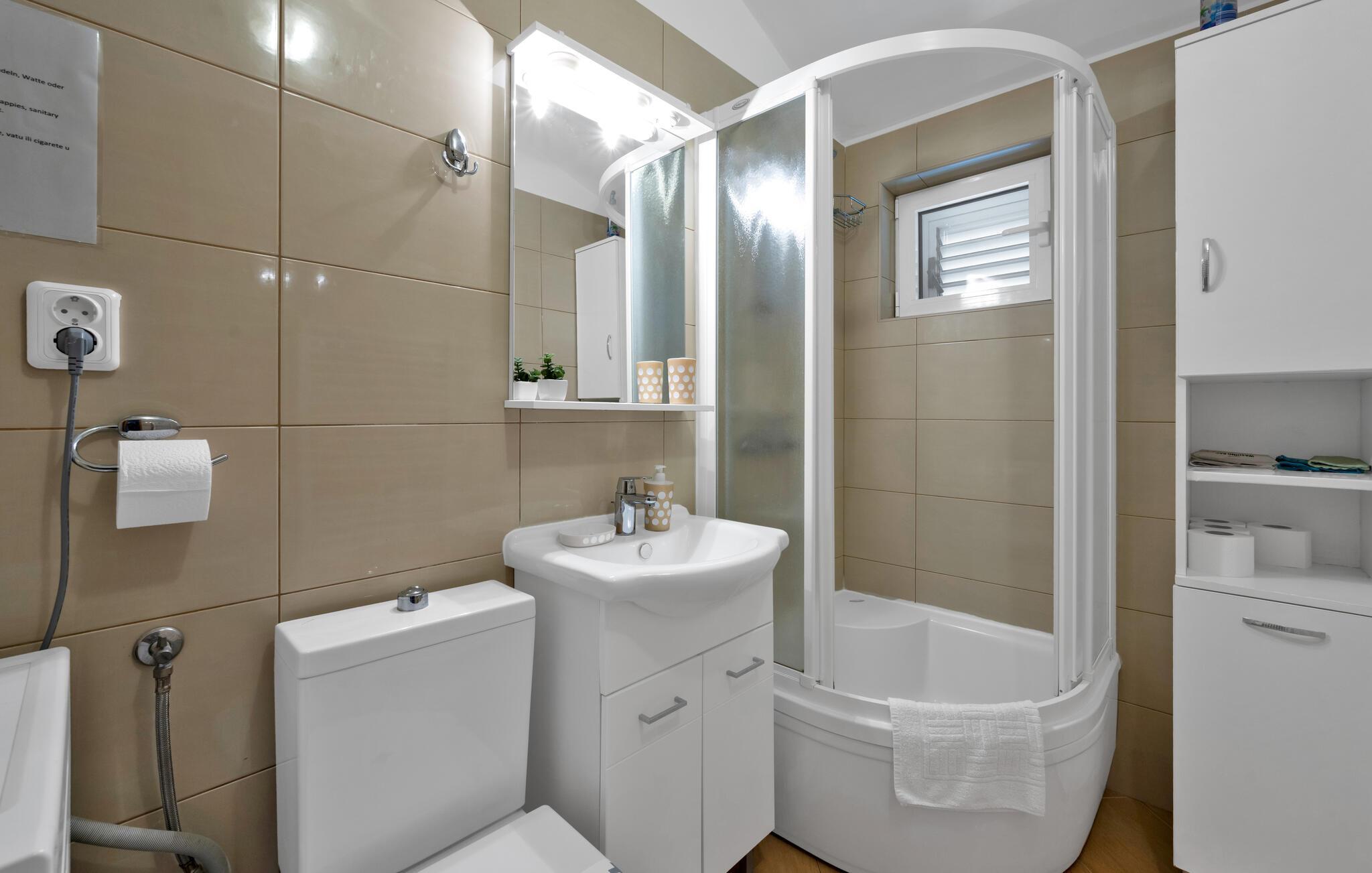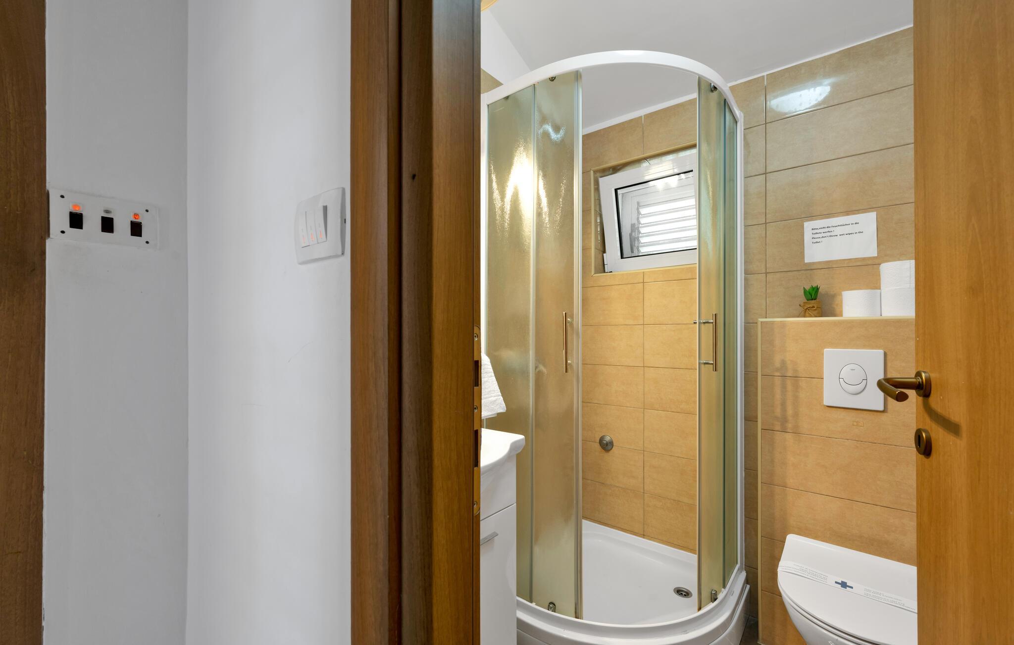 Badezimmer (nr. 2) - WC. Warmes und kaltes Wasser. Dusche