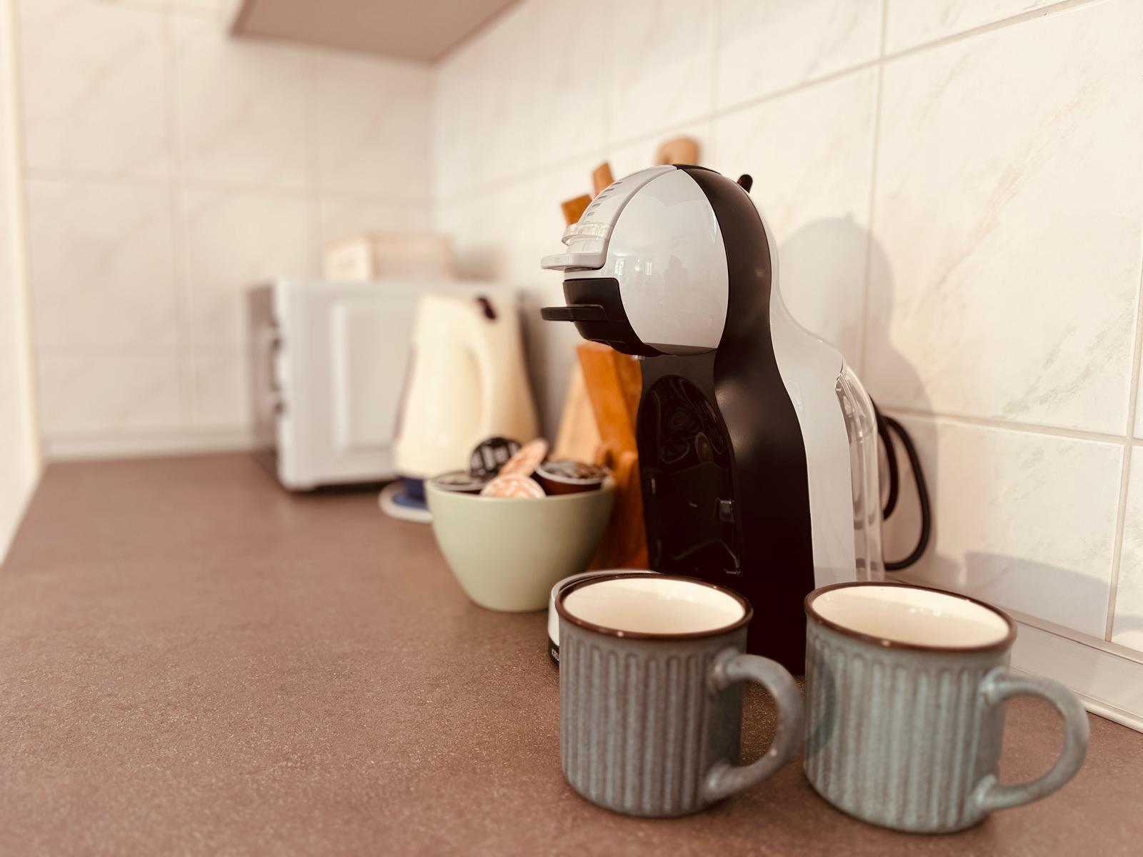 Kitchen (3 m2): Standard equipment: Refrigerator, Stove, Sink, Additional equipment: Dishwasher, On request: Microwave oven, Water kettle, Coffee machine, Toaster