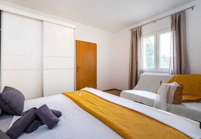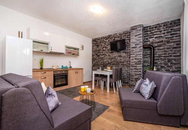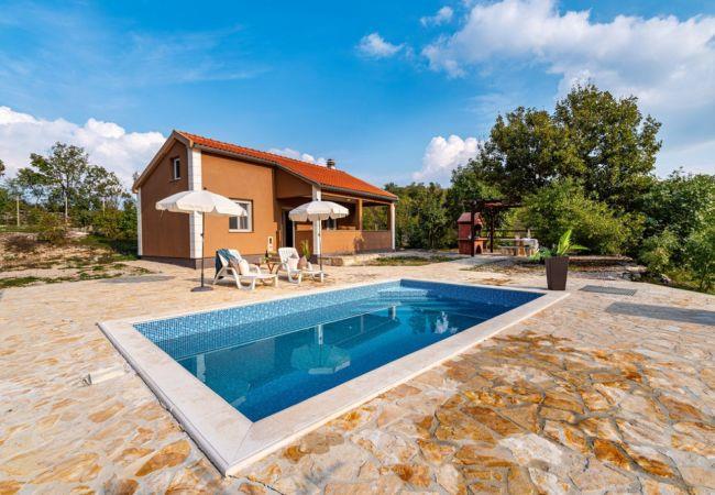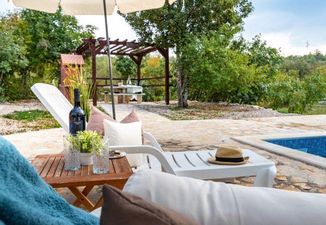 This charming holiday home is located in the quiet village of Zelengrad, in the hinterland of Zadar, and is perfect for families or small groups of friends. The house can accommodate up to 4 people, with one bedroom that features a double bed and a sofa bed for two additional guests.