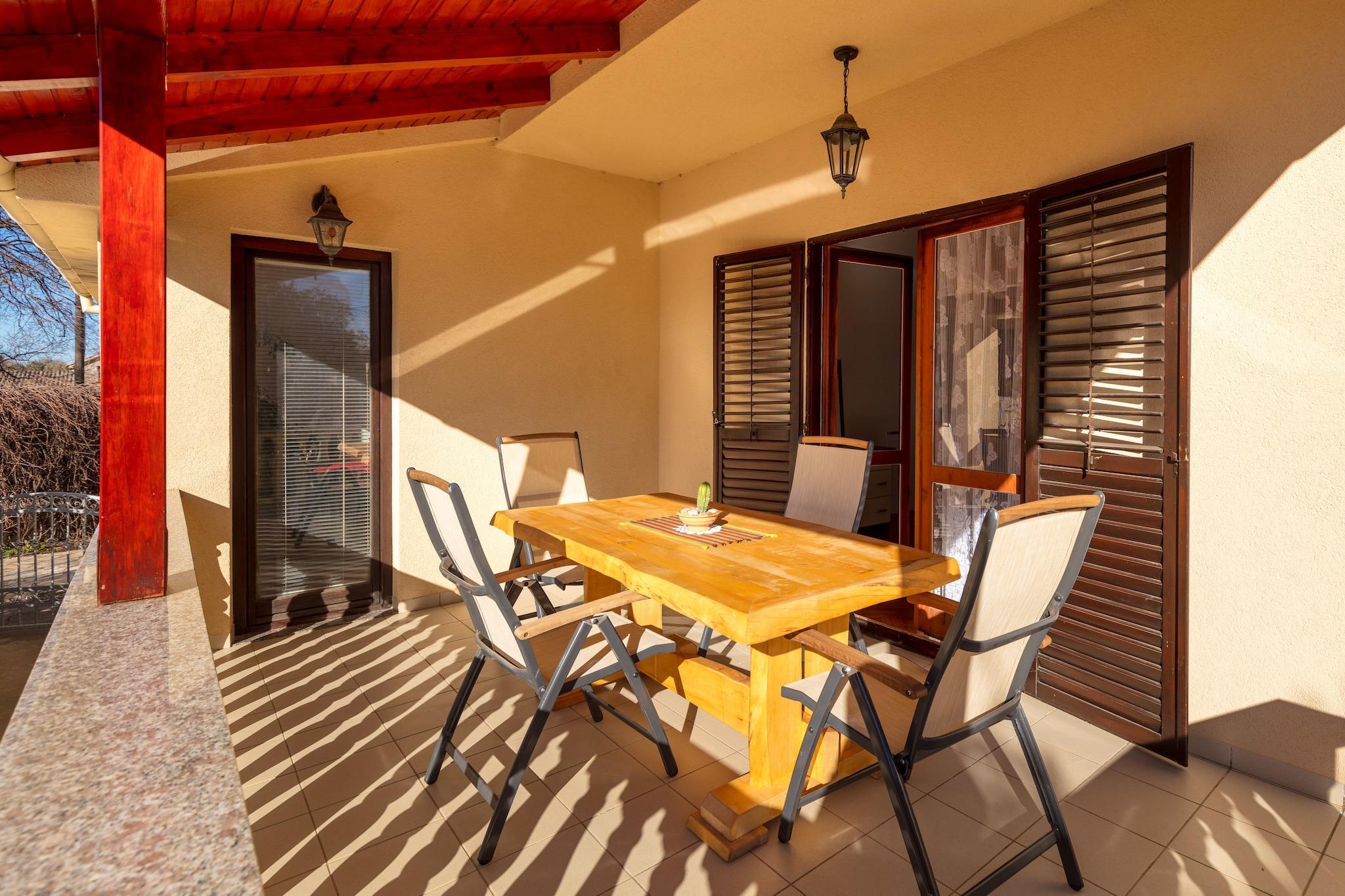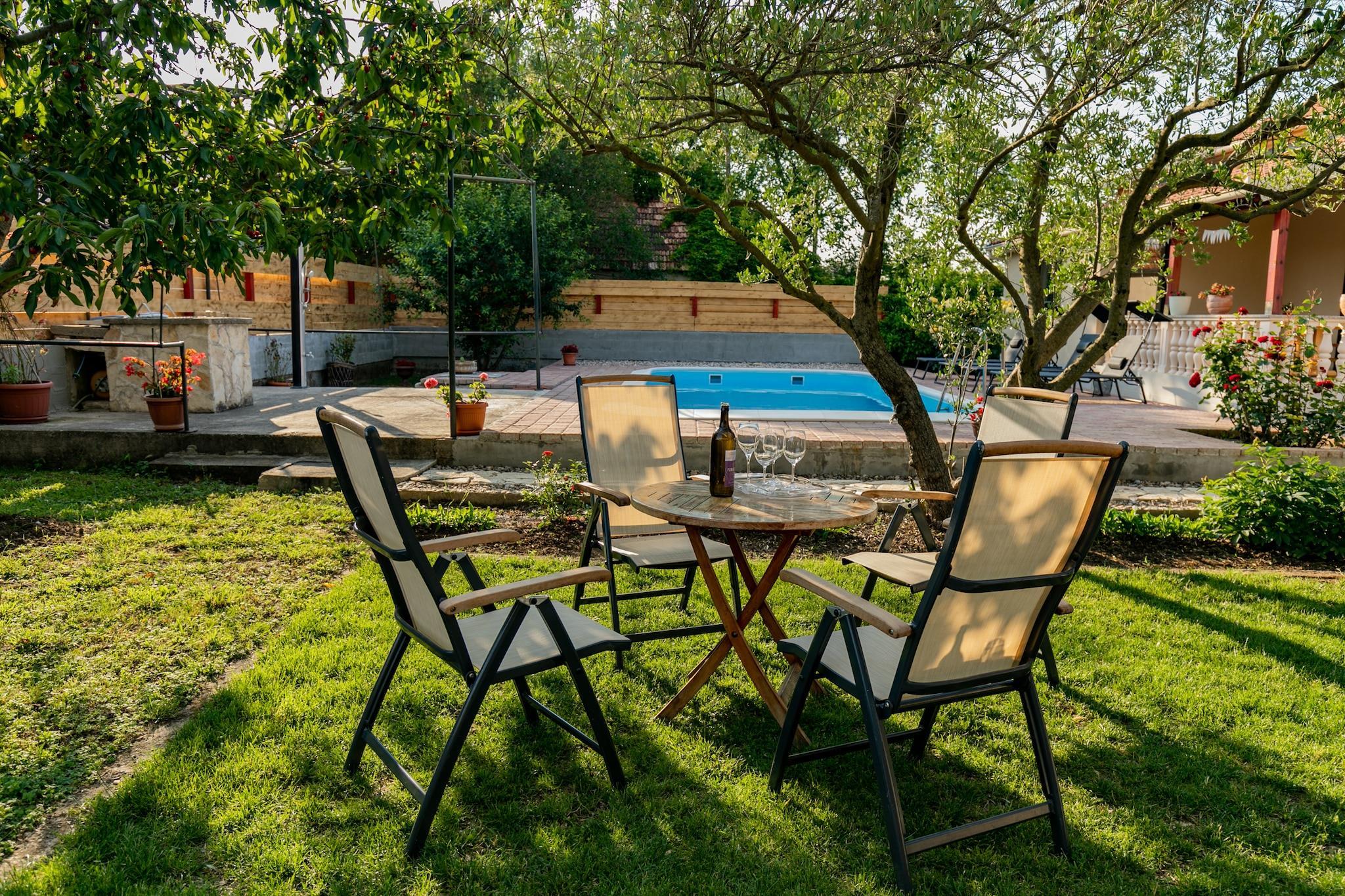 Tranquil Stay Near Sea & City Nestled in the quiet village of Zemunik Donji, this charming holiday home accommodates six guests just 8 km from the sparkling Adriatic Sea and 14 km from the historic town of Zadar. With free WiFi, a private fenced garden, and a sunny terrace, it's the ideal balance of serenity and accessibility. Essentials are close by, just 500 meters to shops and 8 km to restaurants. Comfortable Living with Modern Touches The interior offers a warm, welcoming atmosphere featuring a cozy living room with a flatscreen satellite TV and DVD player. The fully equipped kitchen includes contemporary appliances for easy meal prep. Two spacious, air-conditioned bedrooms with double beds ensure restful nights for all guests. Relax Outdoors in Private Luxury Enjoy leisurely days under the shaded roofed terrace, fire up the barbecue for alfresco meals, or cool off in your own private fenced swimming pool. With sun loungers, a washing machine, and bicycles available, every detail is designed for a carefree holiday experience. Explore Culture & Cuisine Nearby Discover the unique Sea Organ and the magical solar art of the Greeting to the Sun in nearby Zadar. For a taste of the region, savor fresh seafood at Proto Food & More or indulge in Mediterranean delights at Ristorante Al Pacchero. Whether you're in search of adventure or peace, this holiday haven delivers both.