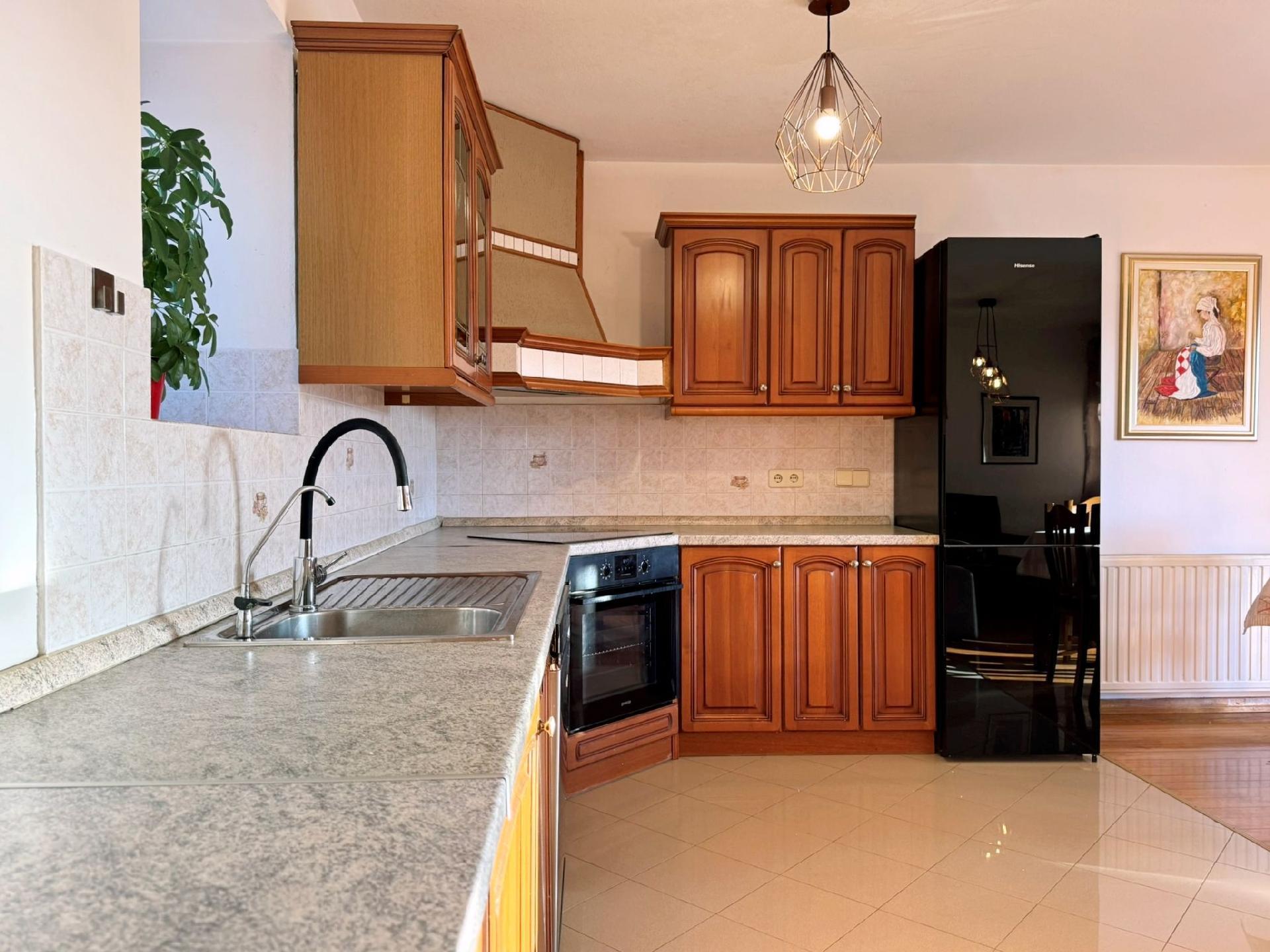 The 80 m2 holiday accommodation on the 2nd floor is 500 m from the sea and is ideal for families. The apartment has a fully equipped kitchen with a ceramic hob, oven, fridge with freezer, coffee machine, kettle, and dining table. The living room offers a sofa, WiFi, and air conditioning. There is another air conditioning in the hallway.