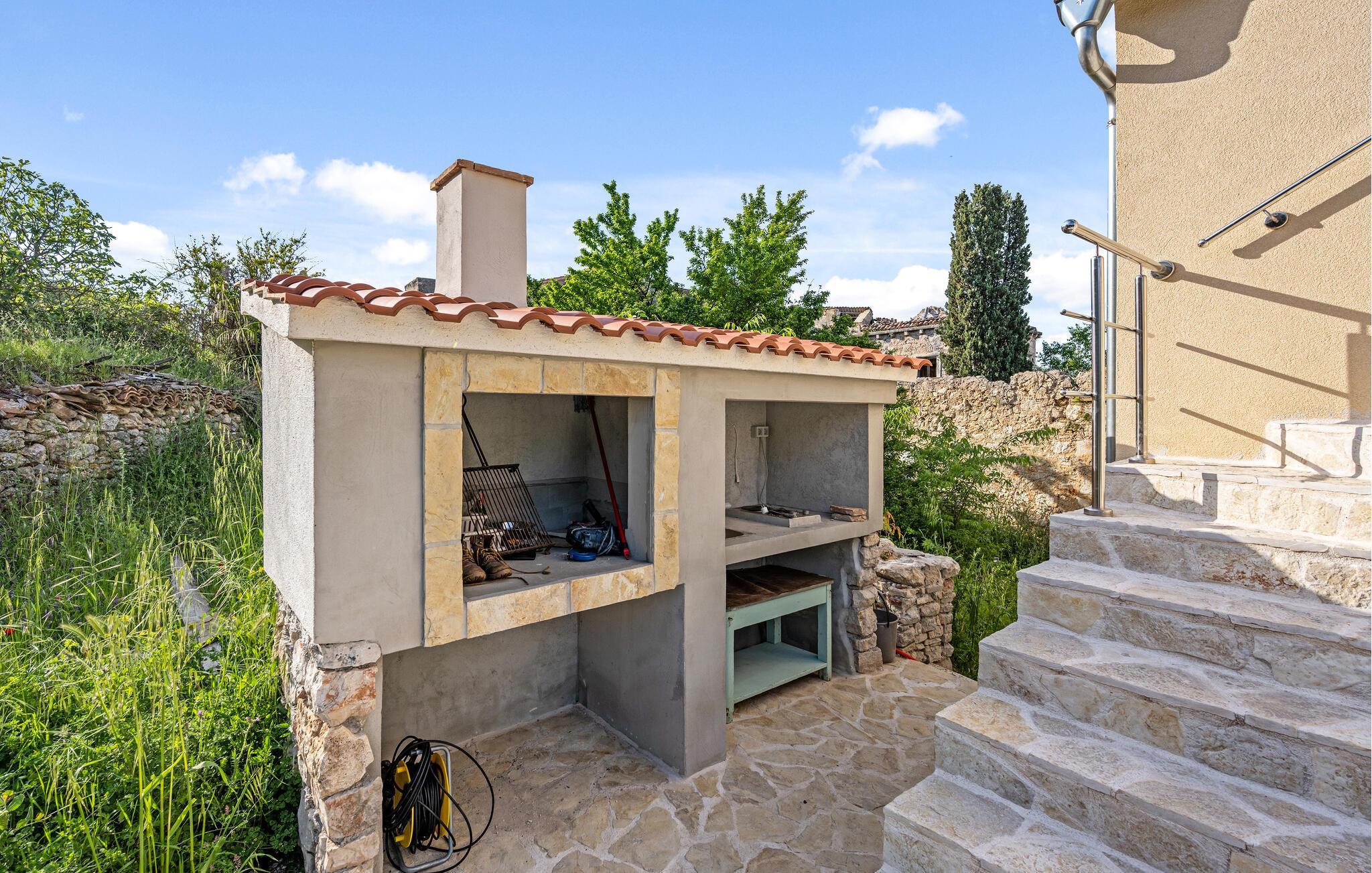Im Außenbereich steht Ihnen eine schöne Natursteinterrasse mit schattenspendendem Bambusdach und einer Grillecke zur Verfügung – ideal für stimmungsvolle Mahlzeiten im Freien. Entspannen Sie sich in einer Sonnenliege und genießen Sie die Ruhe dieser mediterranen Oase.